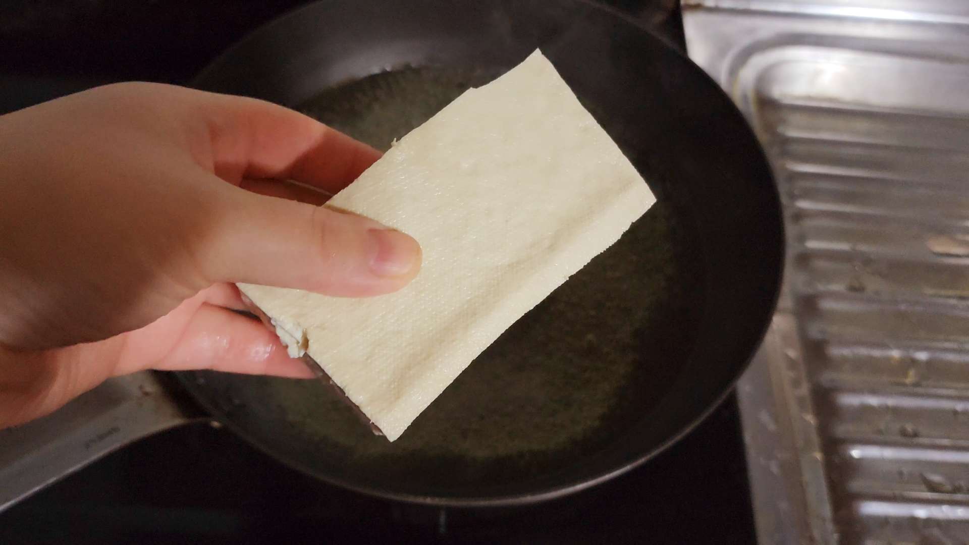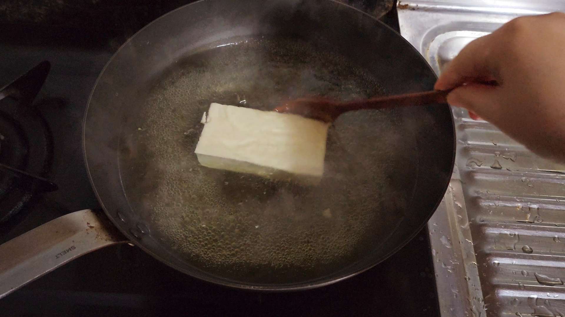끓는물에 두부 1/2모를 넣고 중불에서 3분 정도 데쳐줍니다.