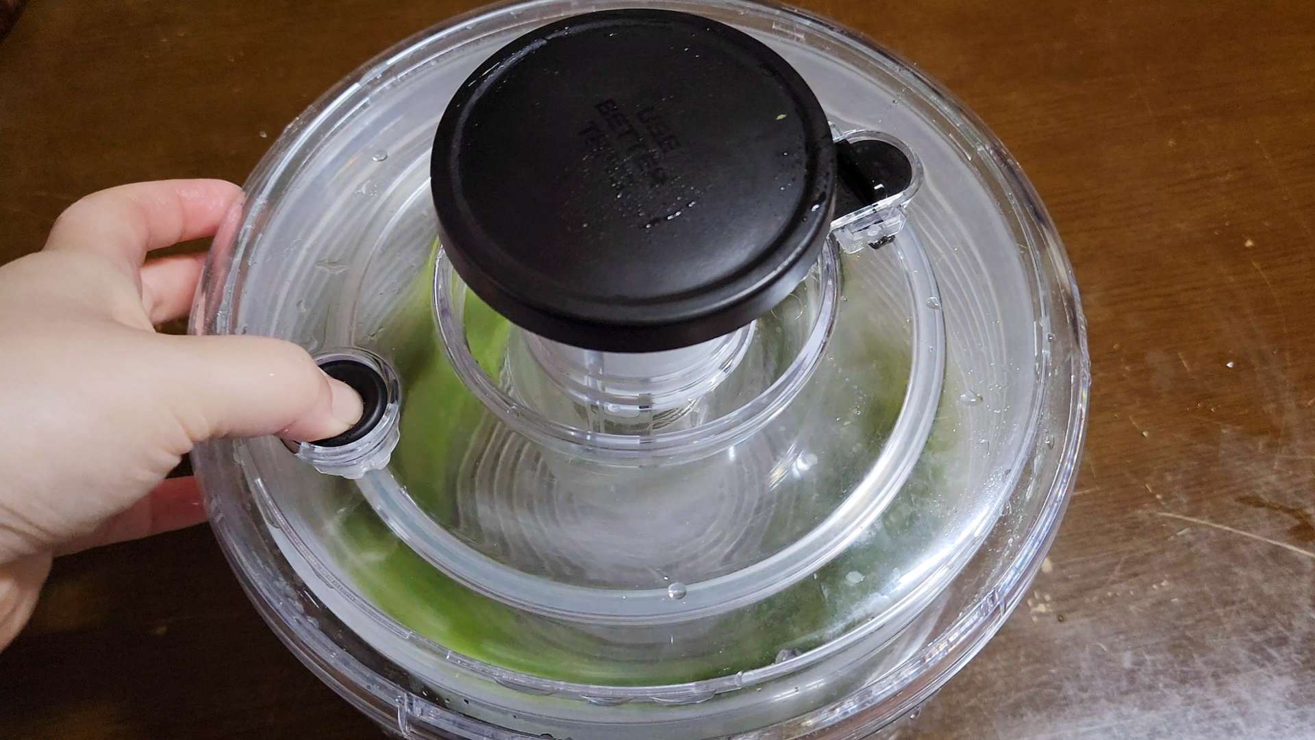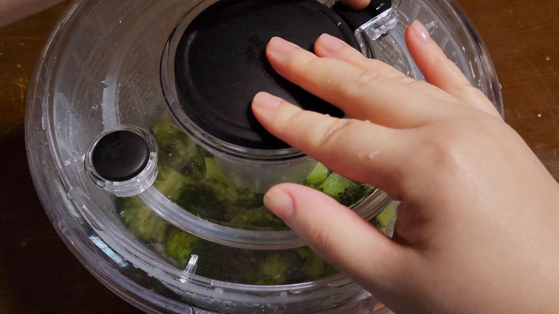 야채탈수기에 넣고 펌핑 해주면 물기를 쉽게 제거할수 있답니다.
