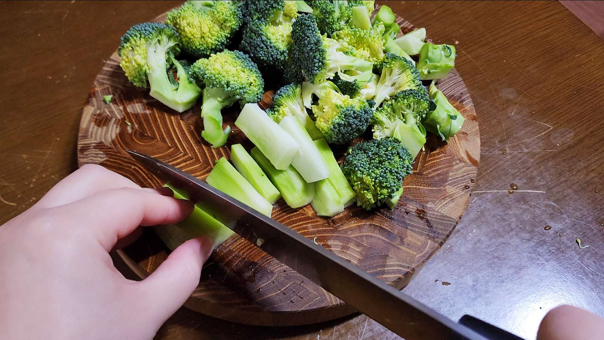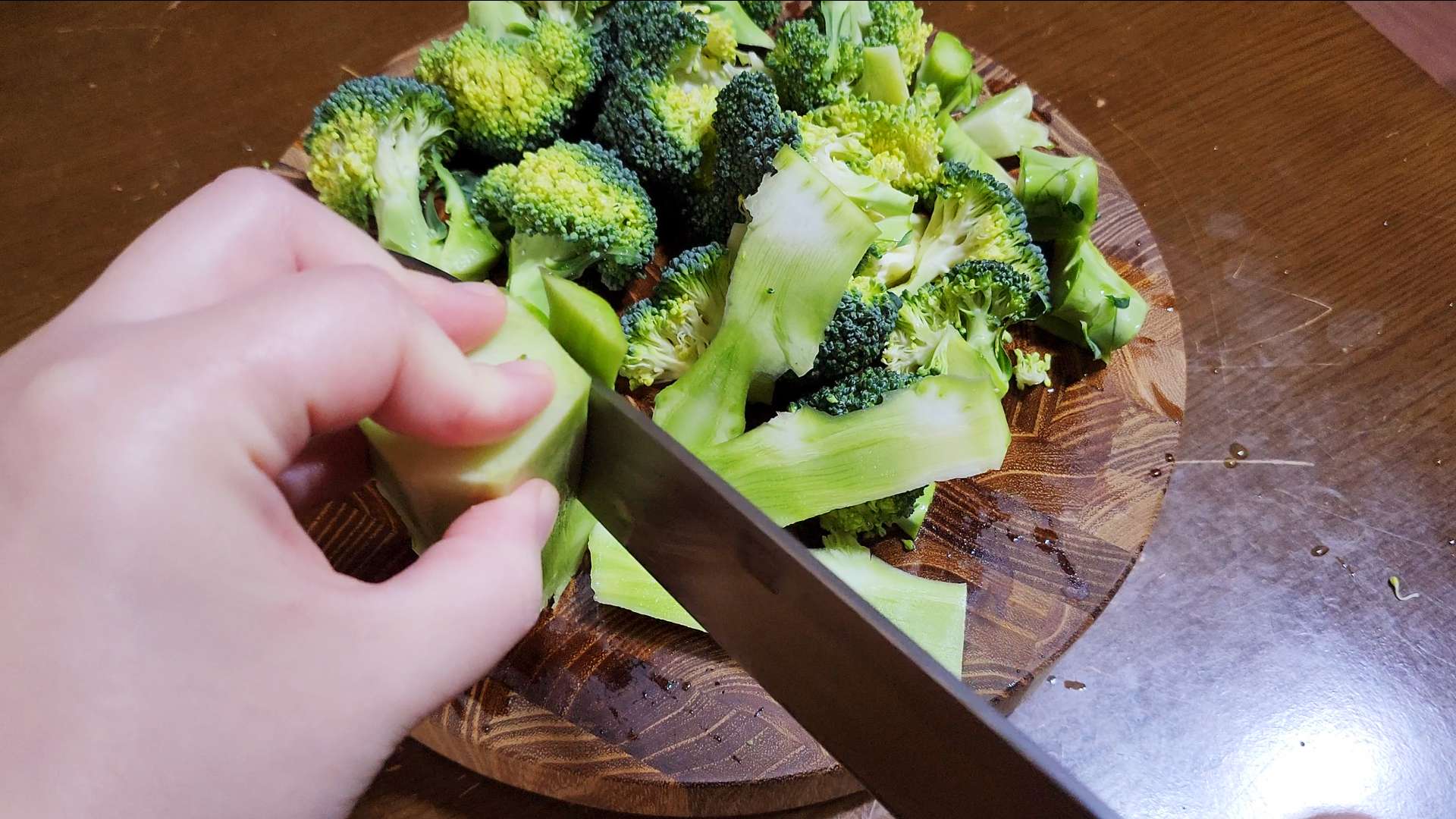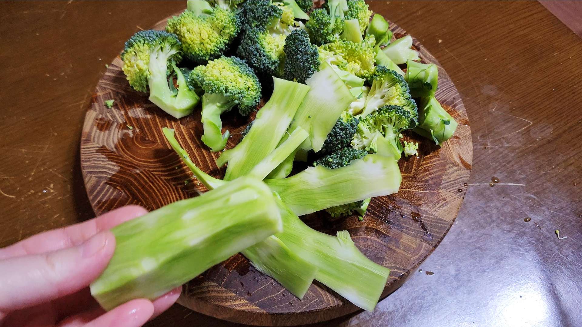 줄기는 겉부분의 질긴 껍질을 잘라내고 먹기 좋은 크기로 잘라줍니다.