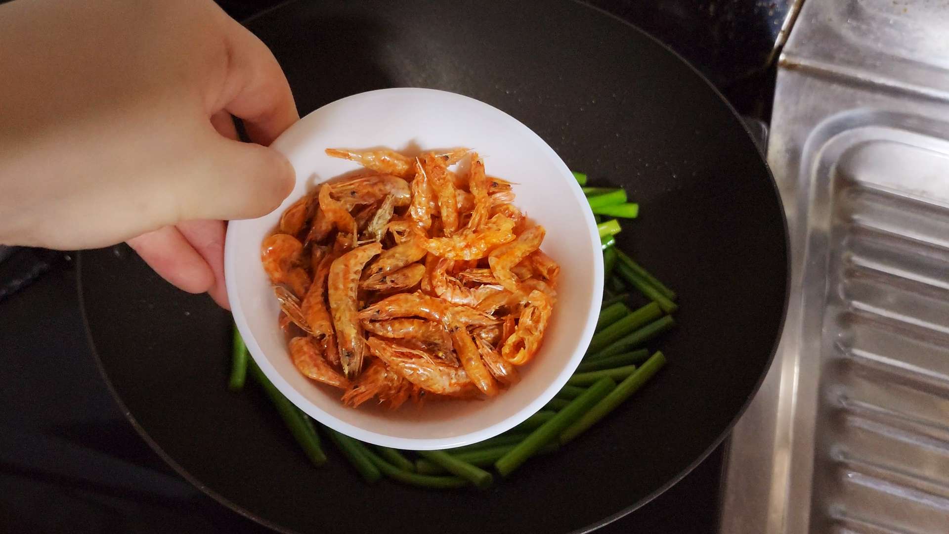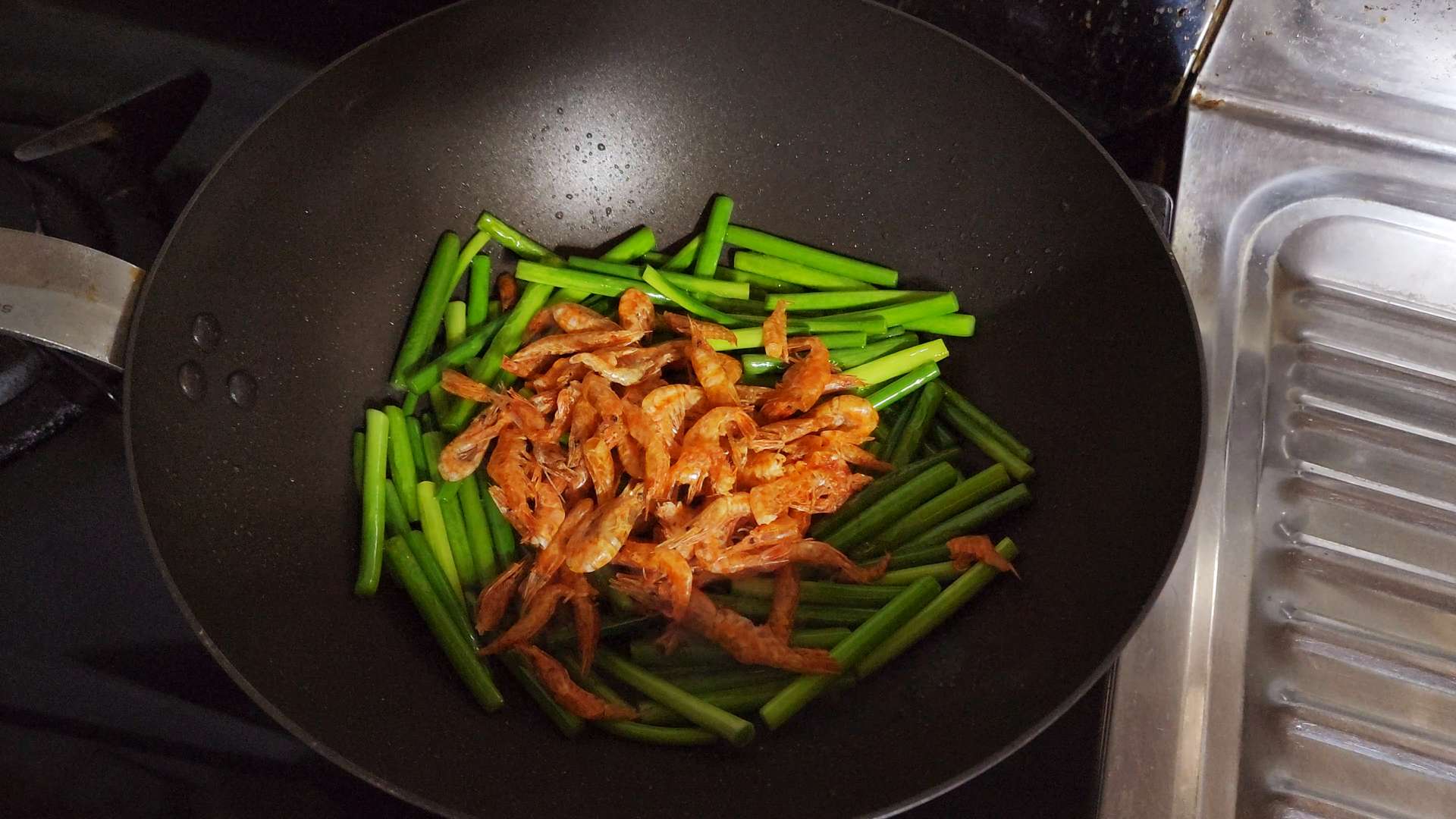 재료: 마늘종 2컵, 건새우 1/2컵,