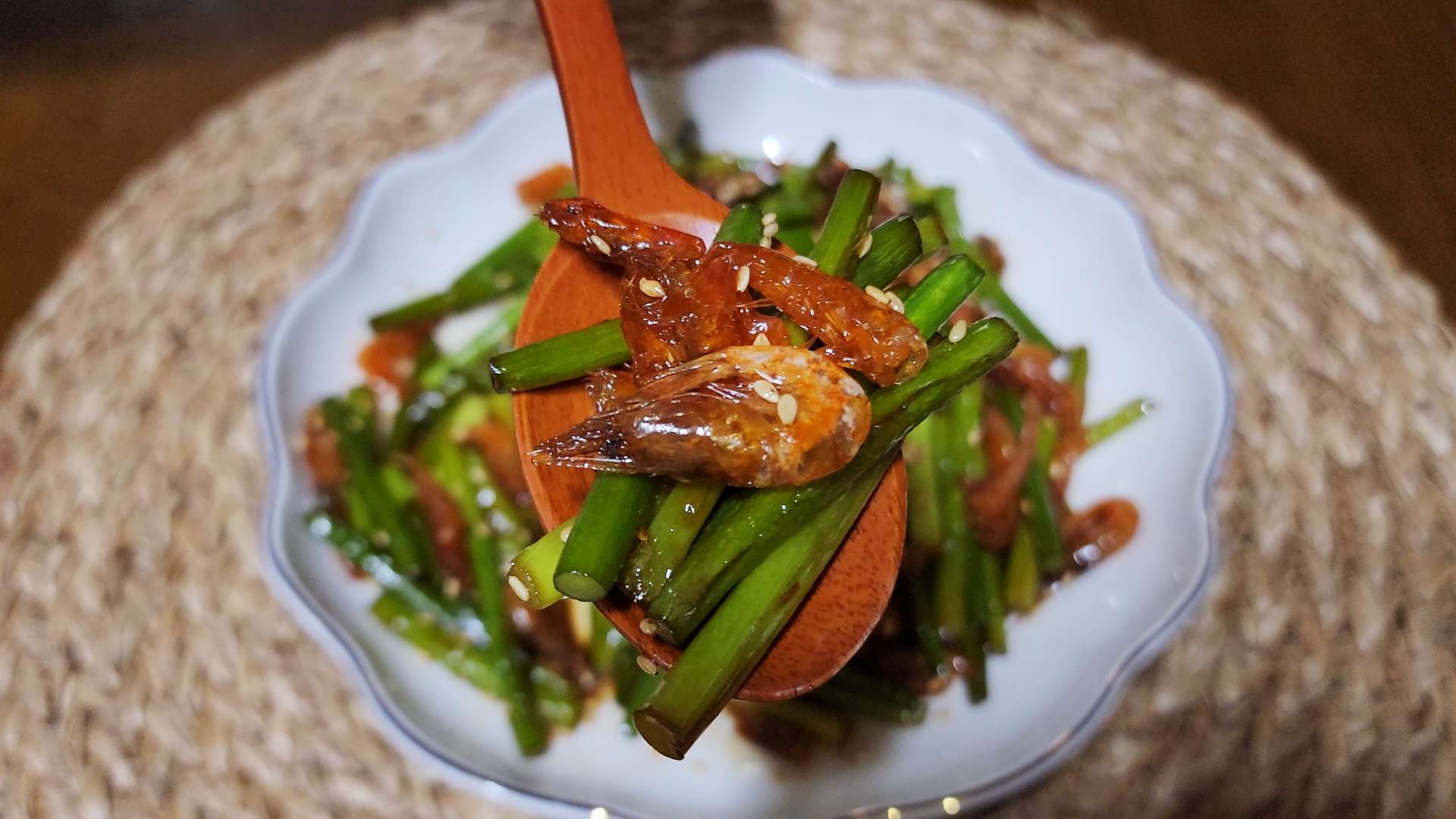 알싸한 마늘쫑과 건새우를 짭조름한 만능간장을