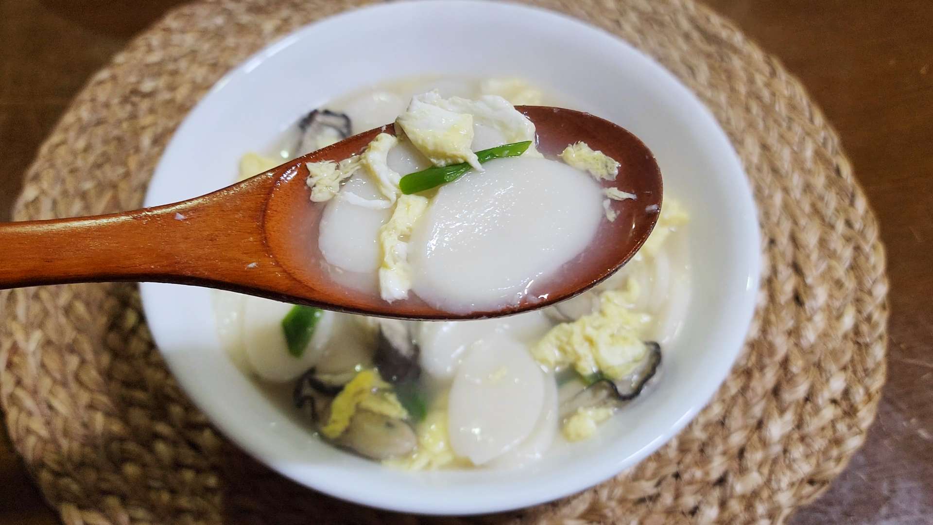 담백하고 시원한 굴떡국 국물에 밥을 말아 먹어도 맛있답니다.