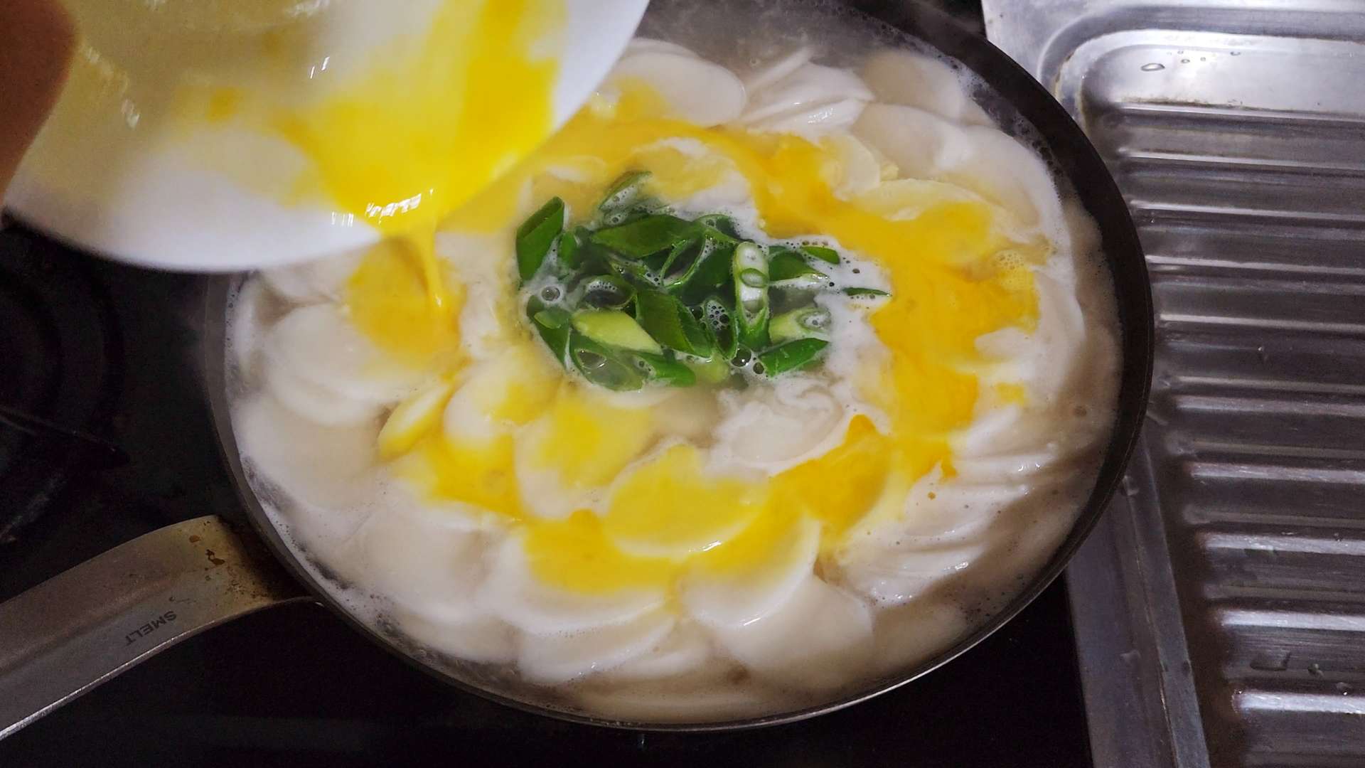 대파, 달걀물을 넣고 5분 정도 끓여줍니다.