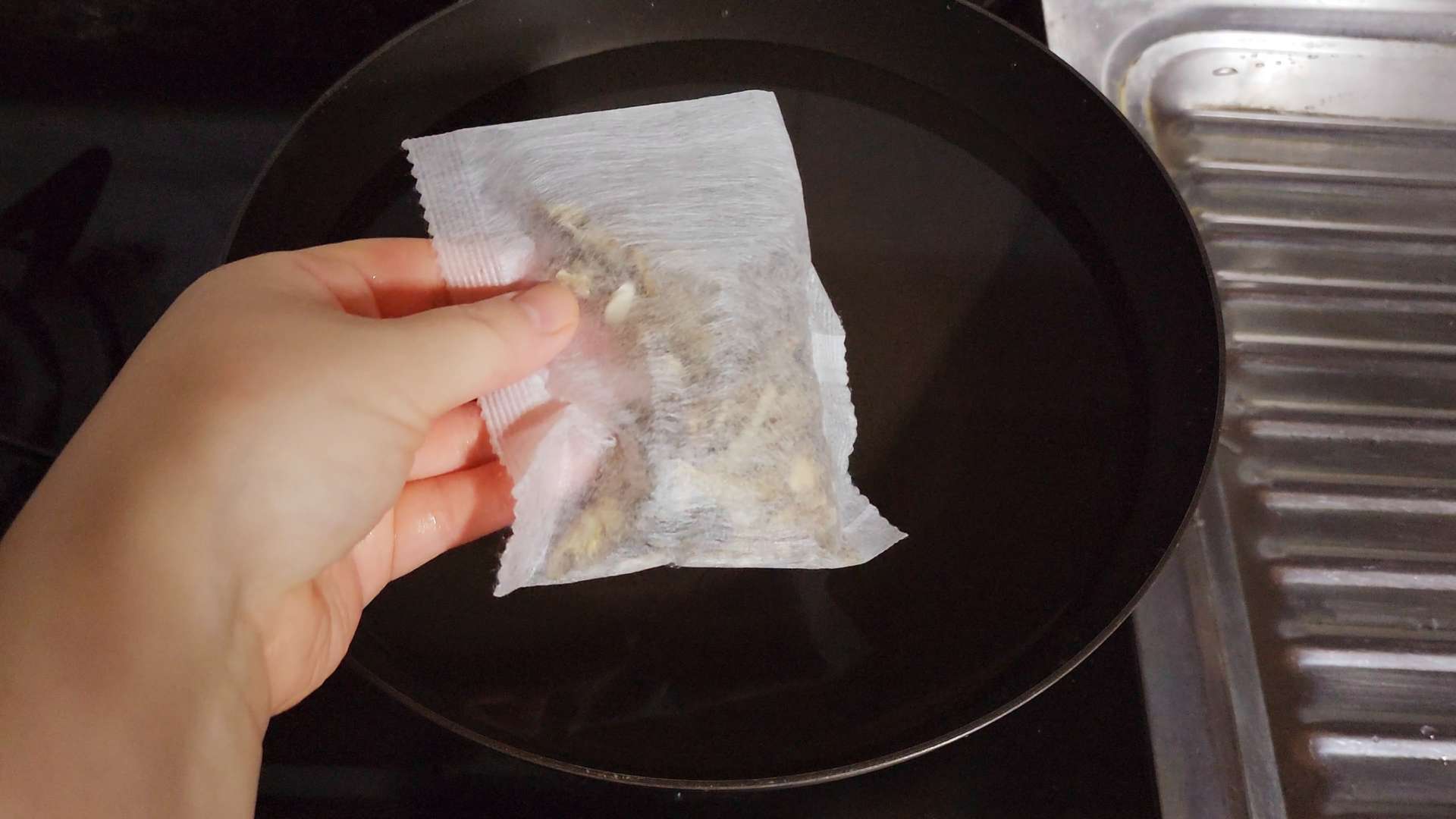 물 1L, 멸치다시마팩 1개 넣고 강불에서 5분 정도 끓이고