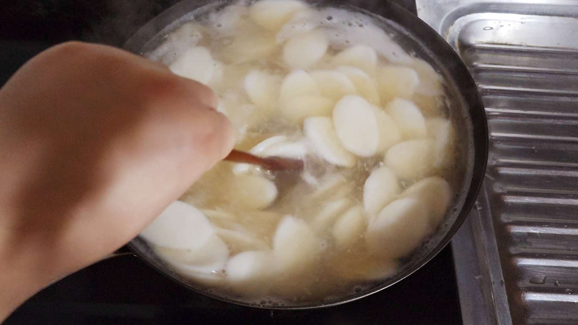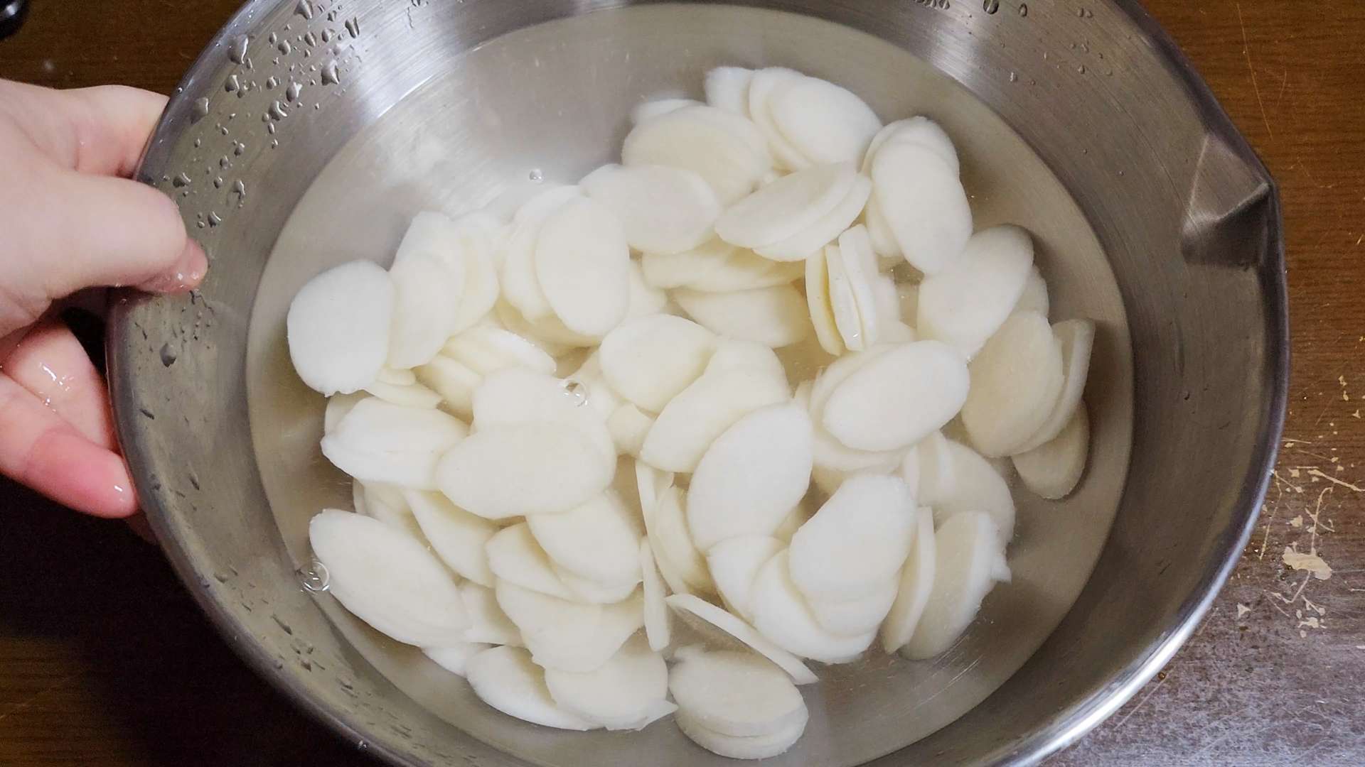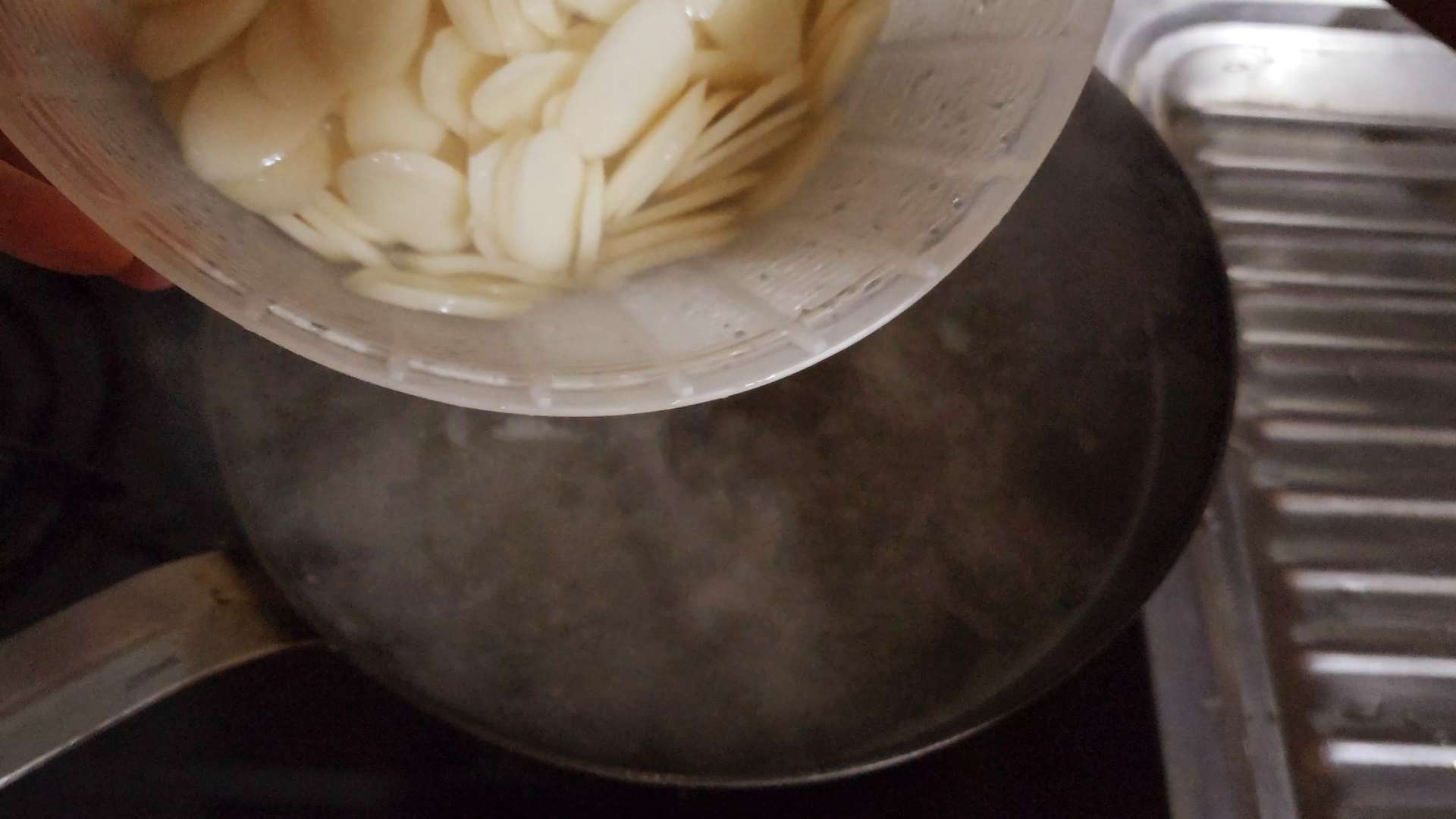 떡국떡은 10분 정도 물에 담가 불려줍니다.