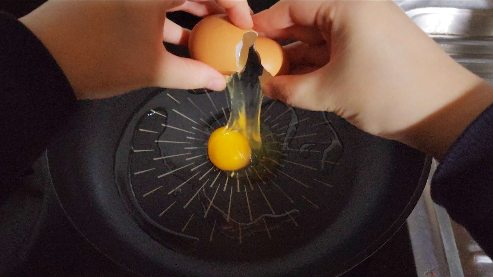중불로 달군팬에 식용유, 달걀 1개 넣고 달걀후라이를 만들어줍니다.