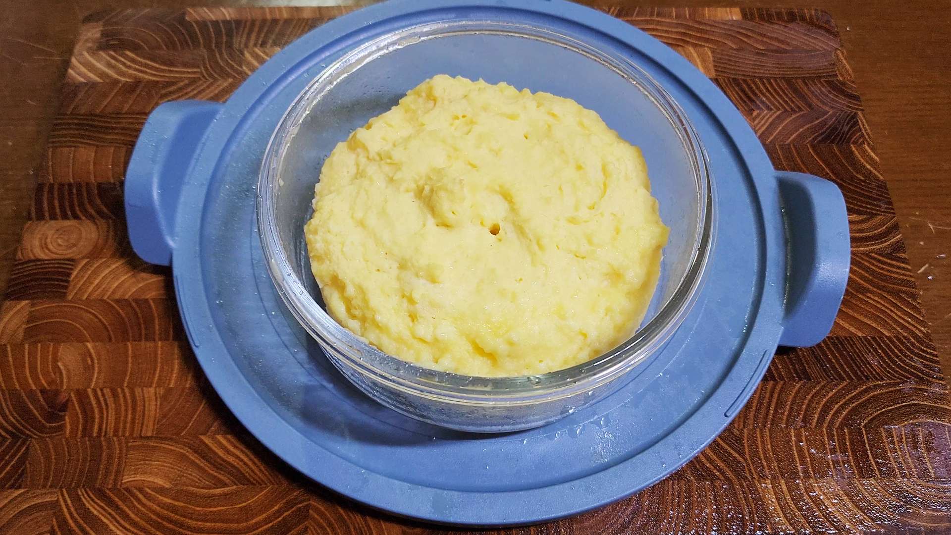 반죽을 부어 전자레인지에 7분 돌려줍니다.
