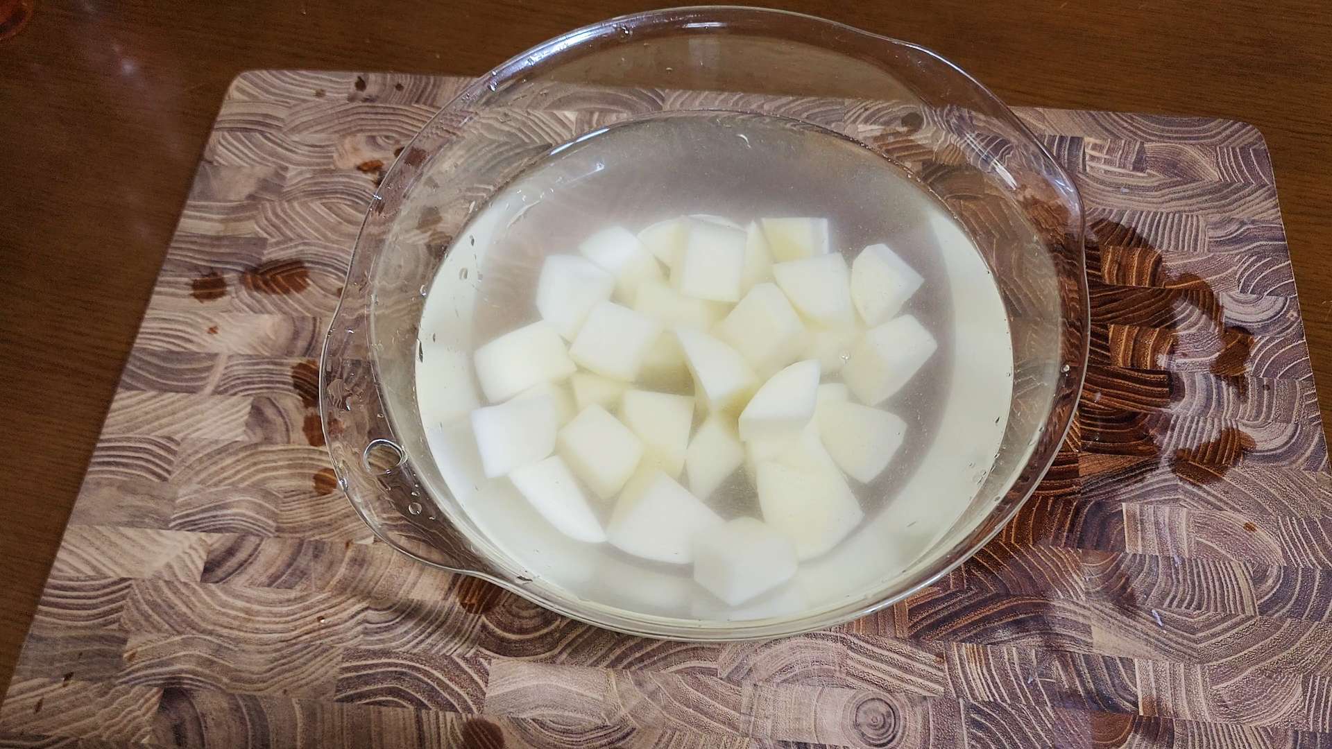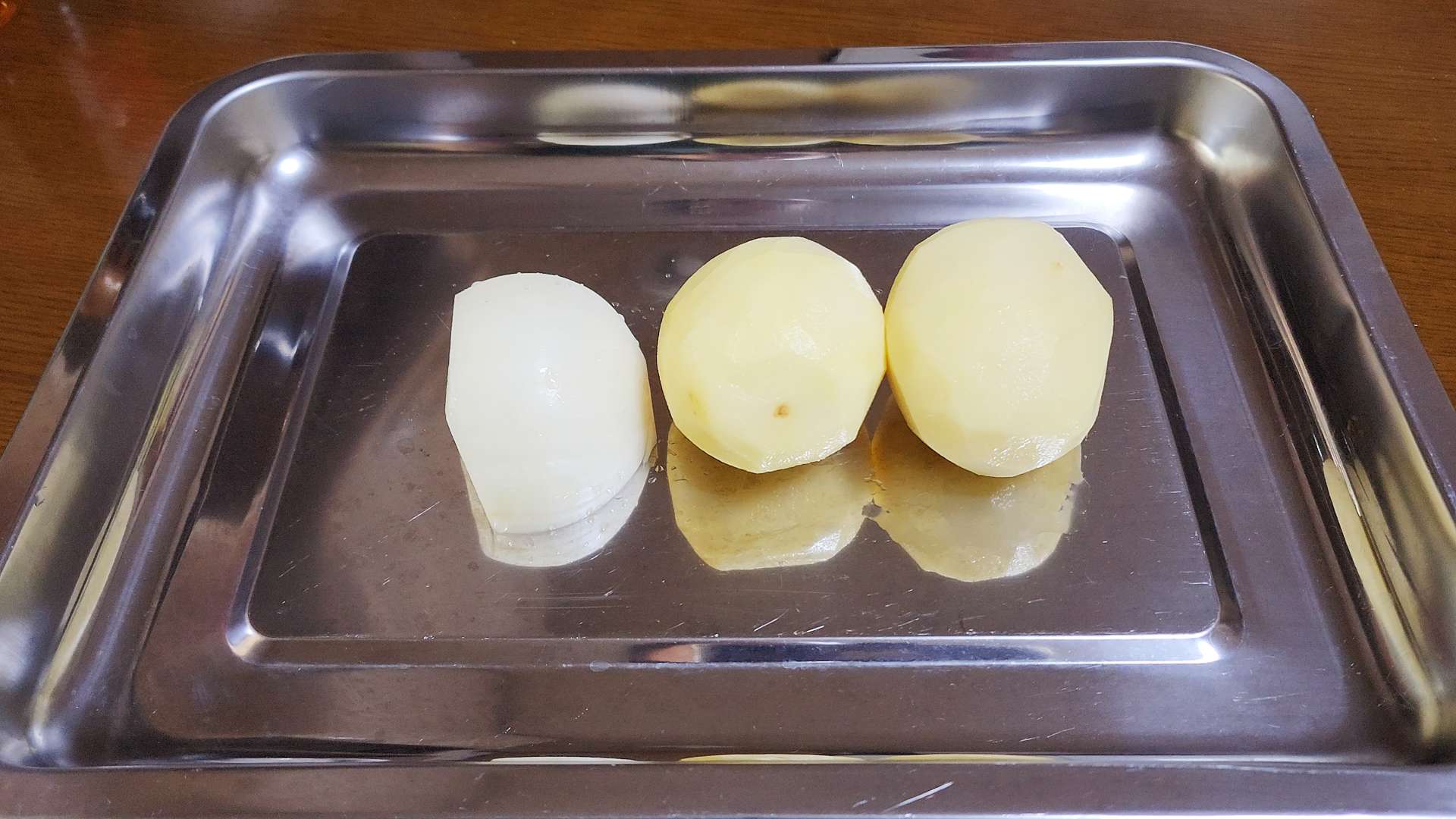 감자는 껍질을 벗기고 깨끗이 씻어줍니다.