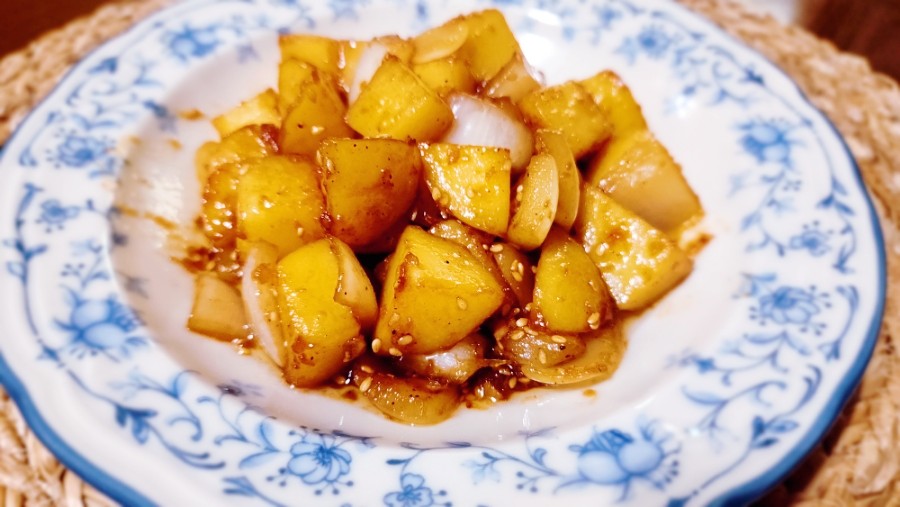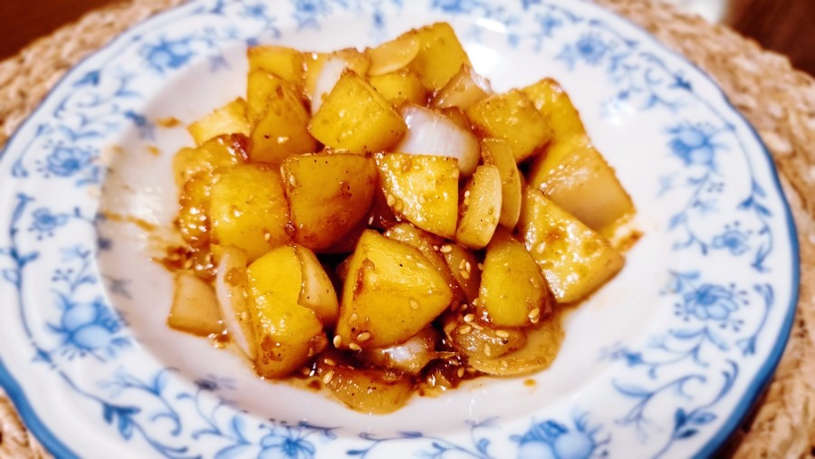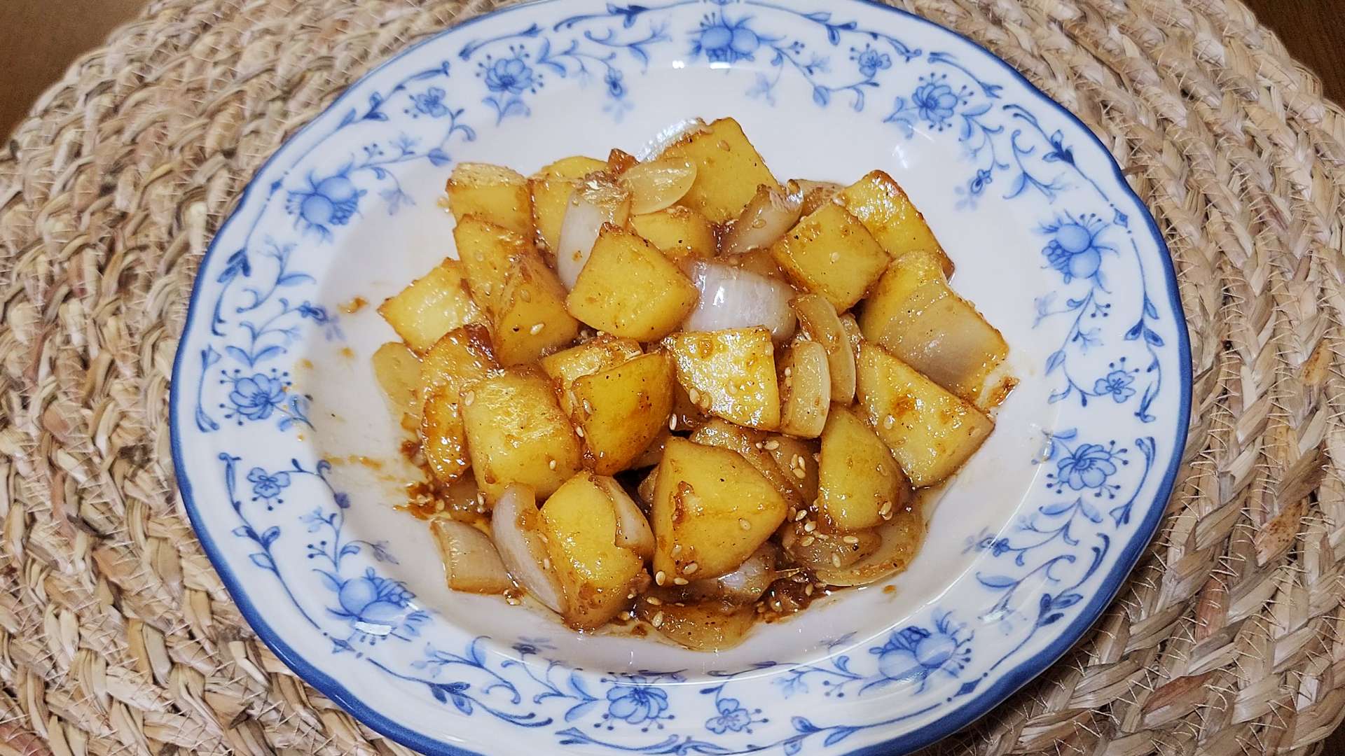 포슬포슬한 감자와 아삭한 양파가 달콤짭조름한 양념을 더해 맛있답니다.