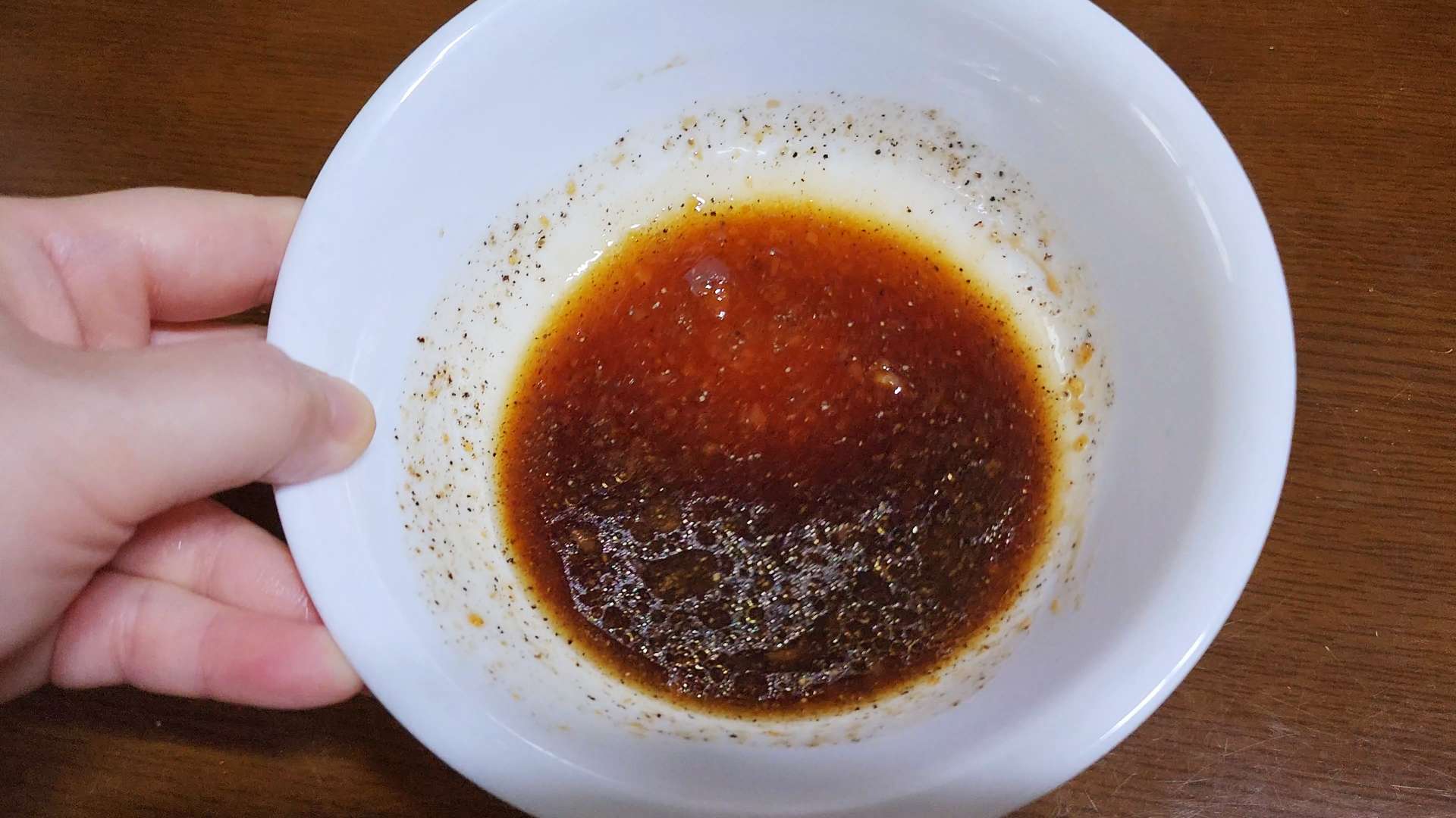 볼에 설탕 1T, 진간장 3T, 다진마늘 0.5T, 참기름 0.5T, 후춧가루를 넣고 섞어줍니다.