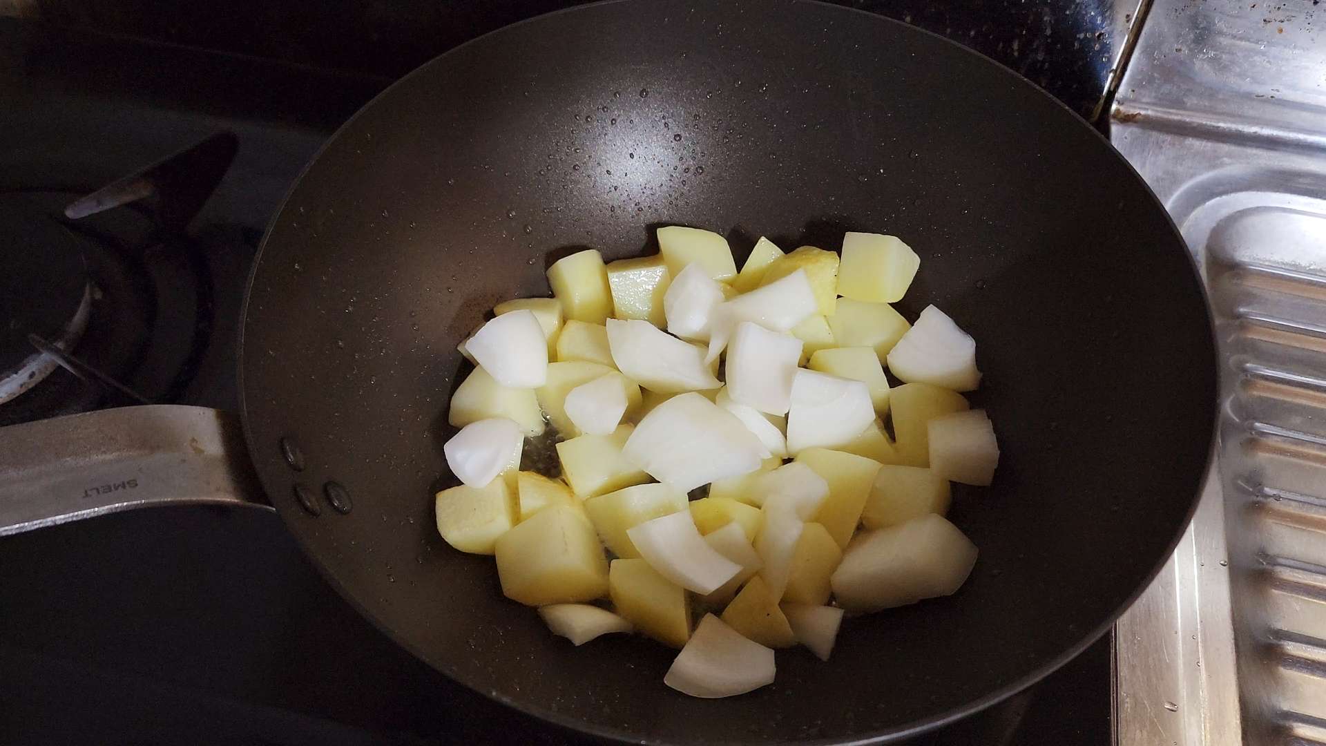 달군팬에 식용유를 넣고 감자가 반투명해질 때까지