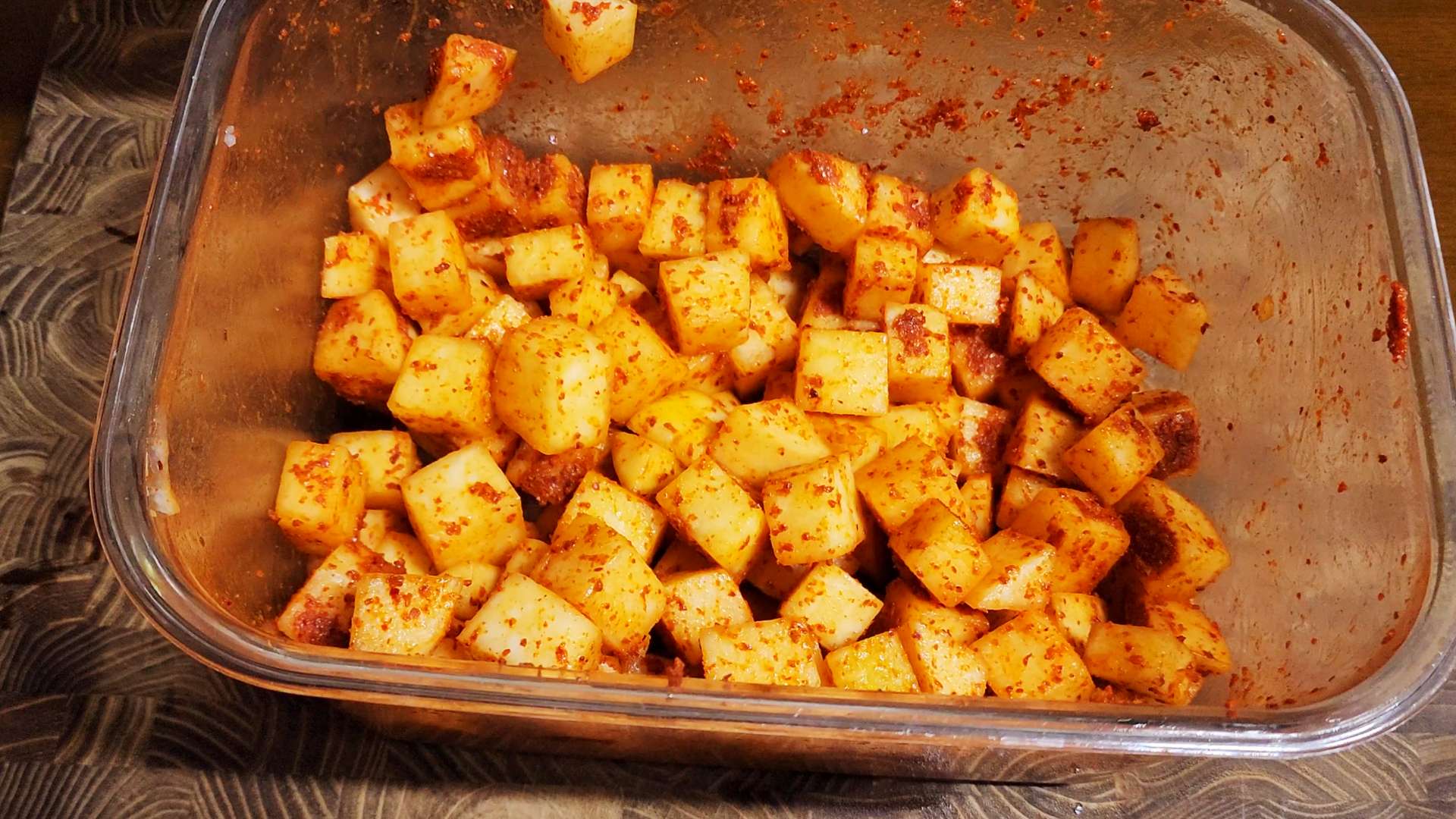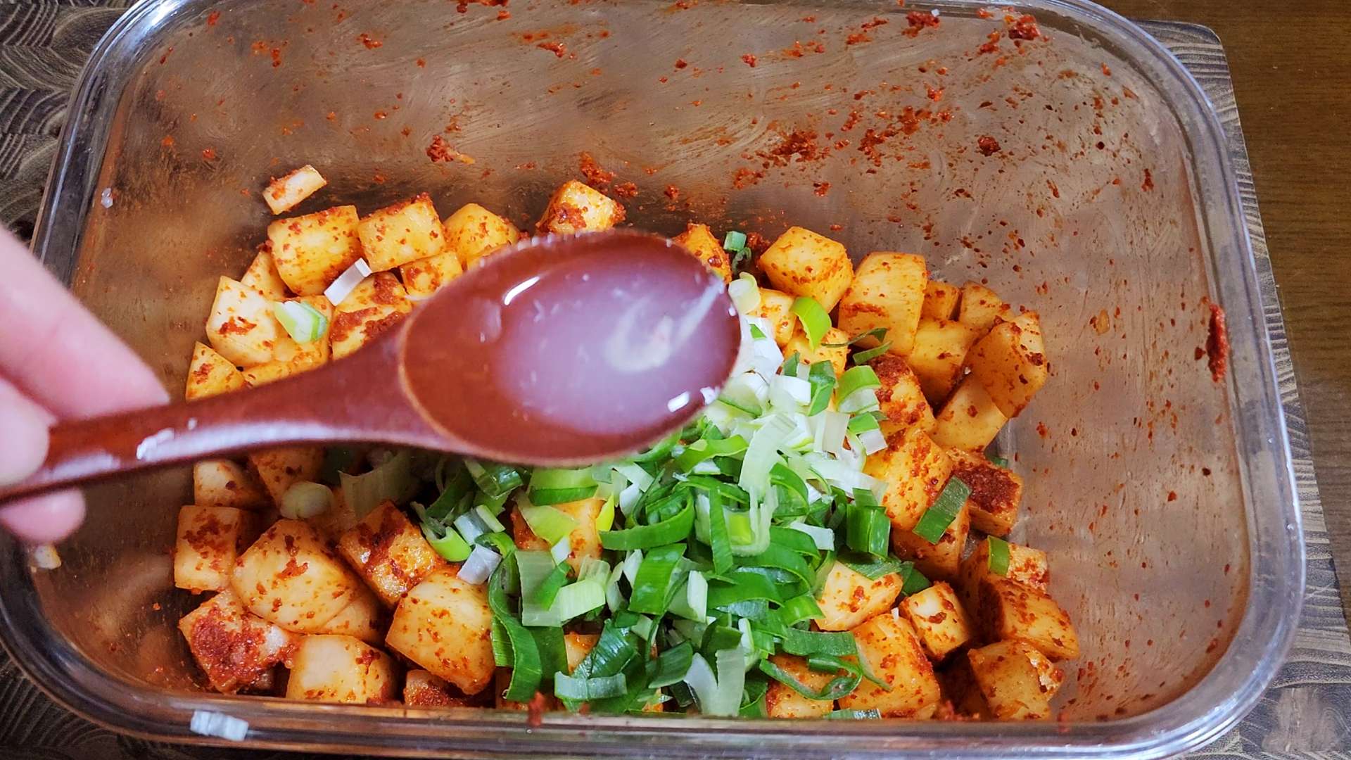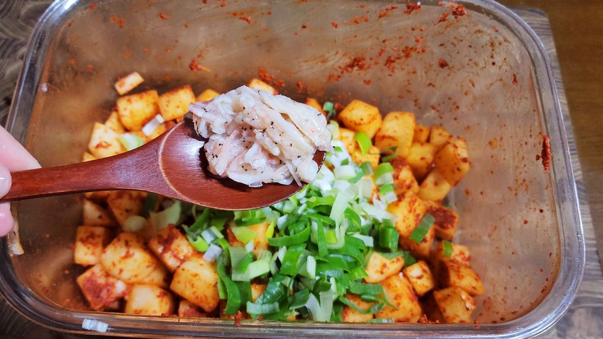 양념: 고춧가루 3T, 새우젓 1.5T, 새우젓 국물 0.5T, 다진마늘 2T, 다진생강 1/3T