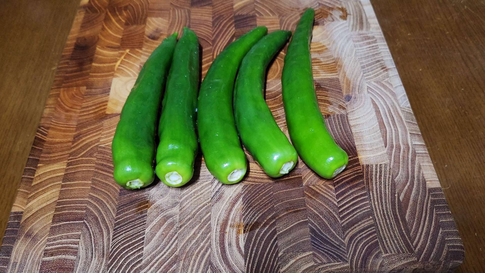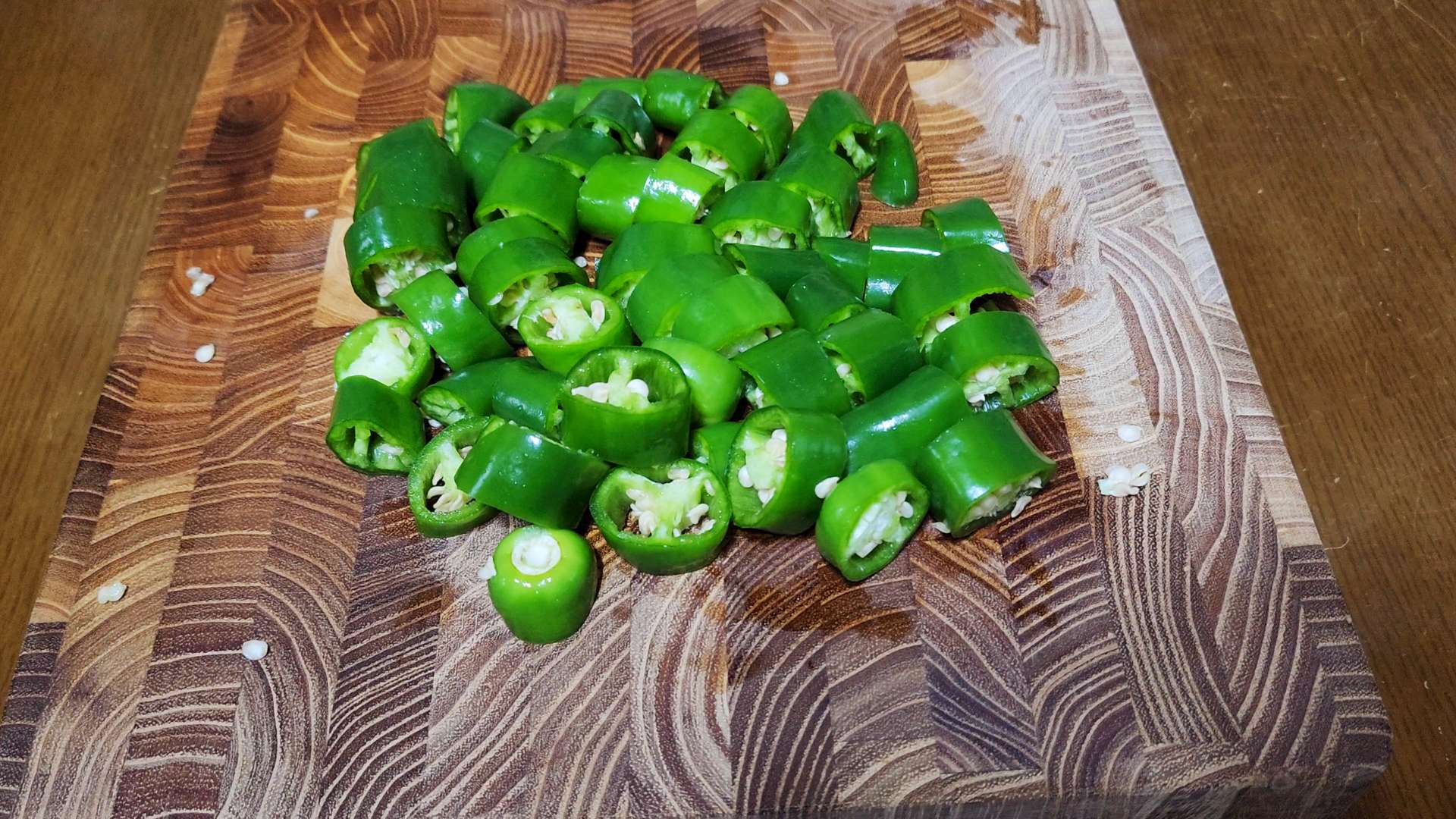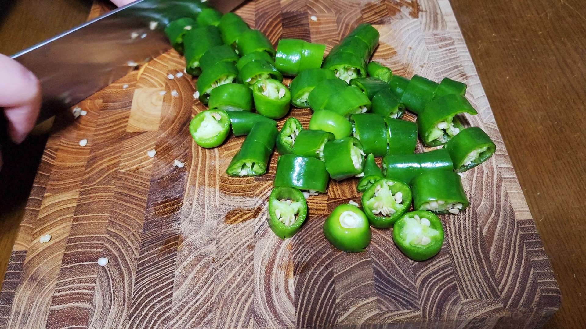 오이고추는 깨끗하게 씻은 후 꼭지를 떼어내고 도톰하게 송송 썰어줍니다.