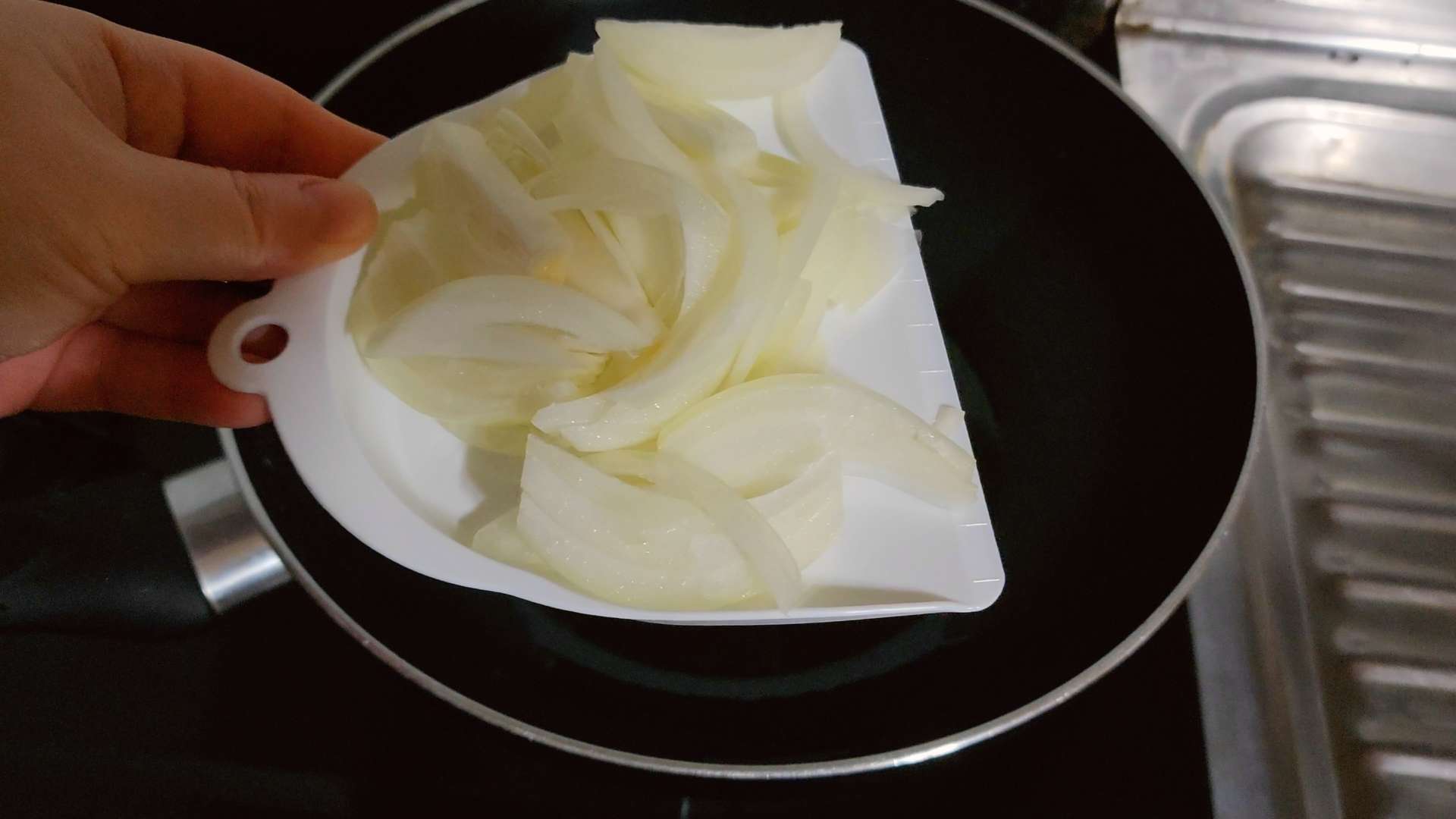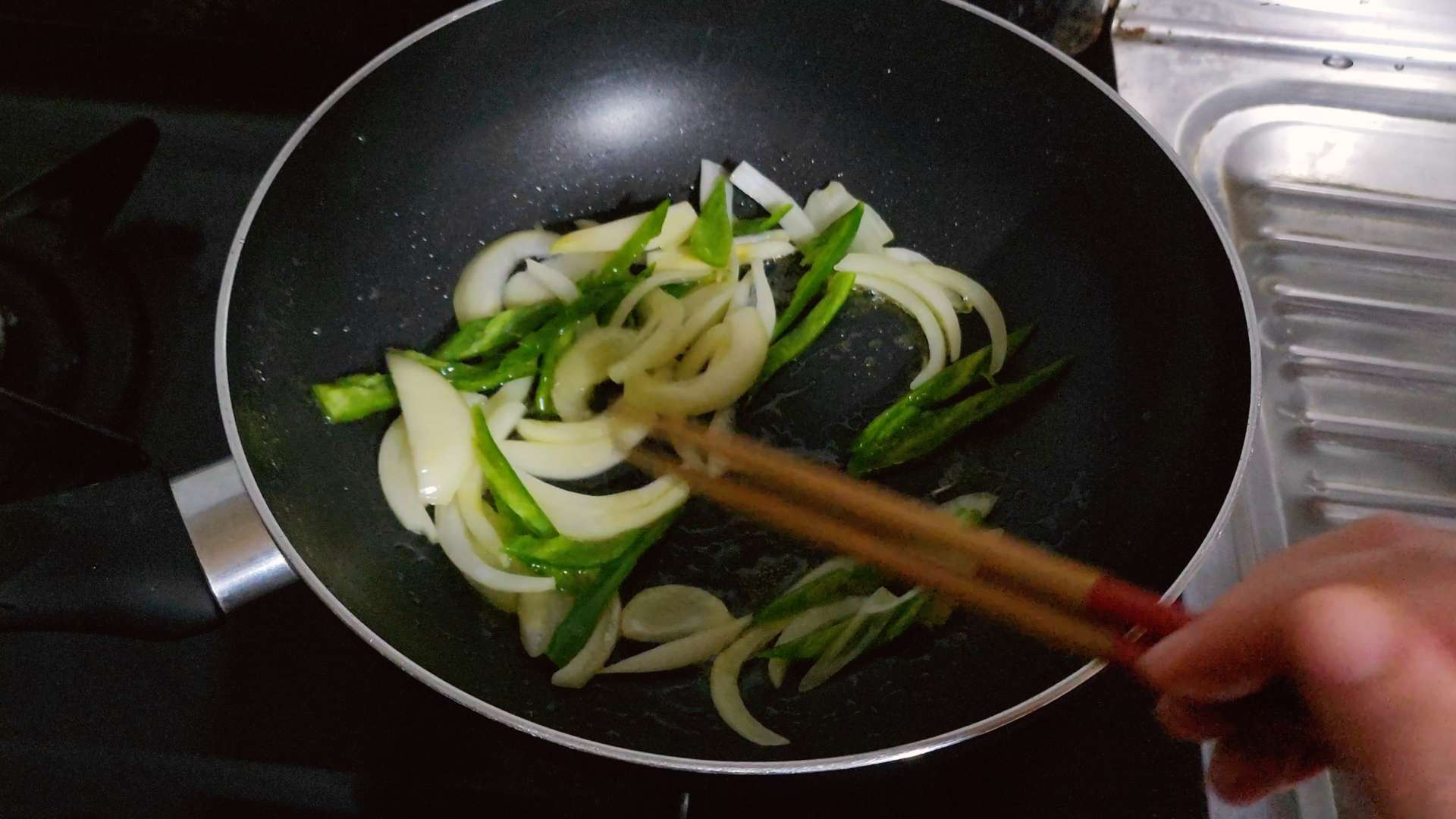 양파 1/2개, 풋고추 1개 (피망 1/4개),