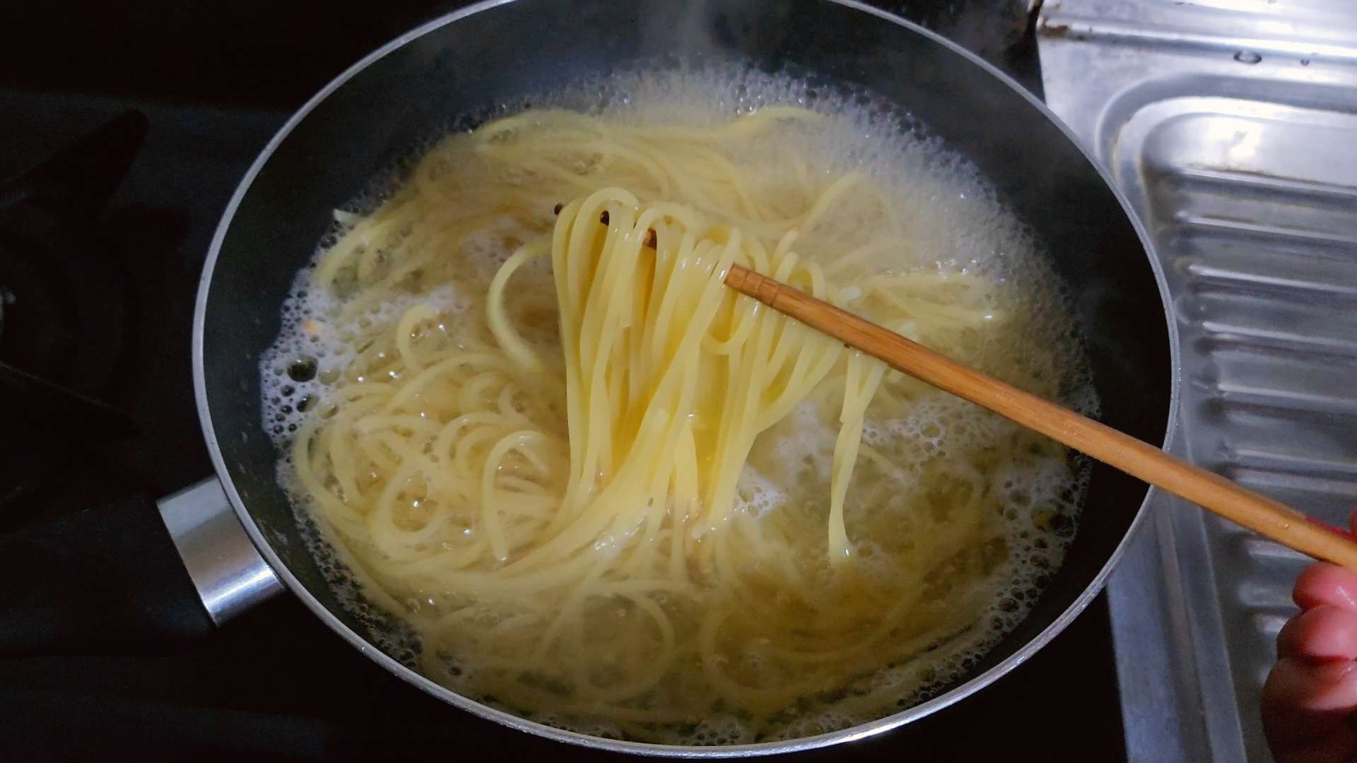 재료: 스파게티면 1인분 (100g), 물 1L,