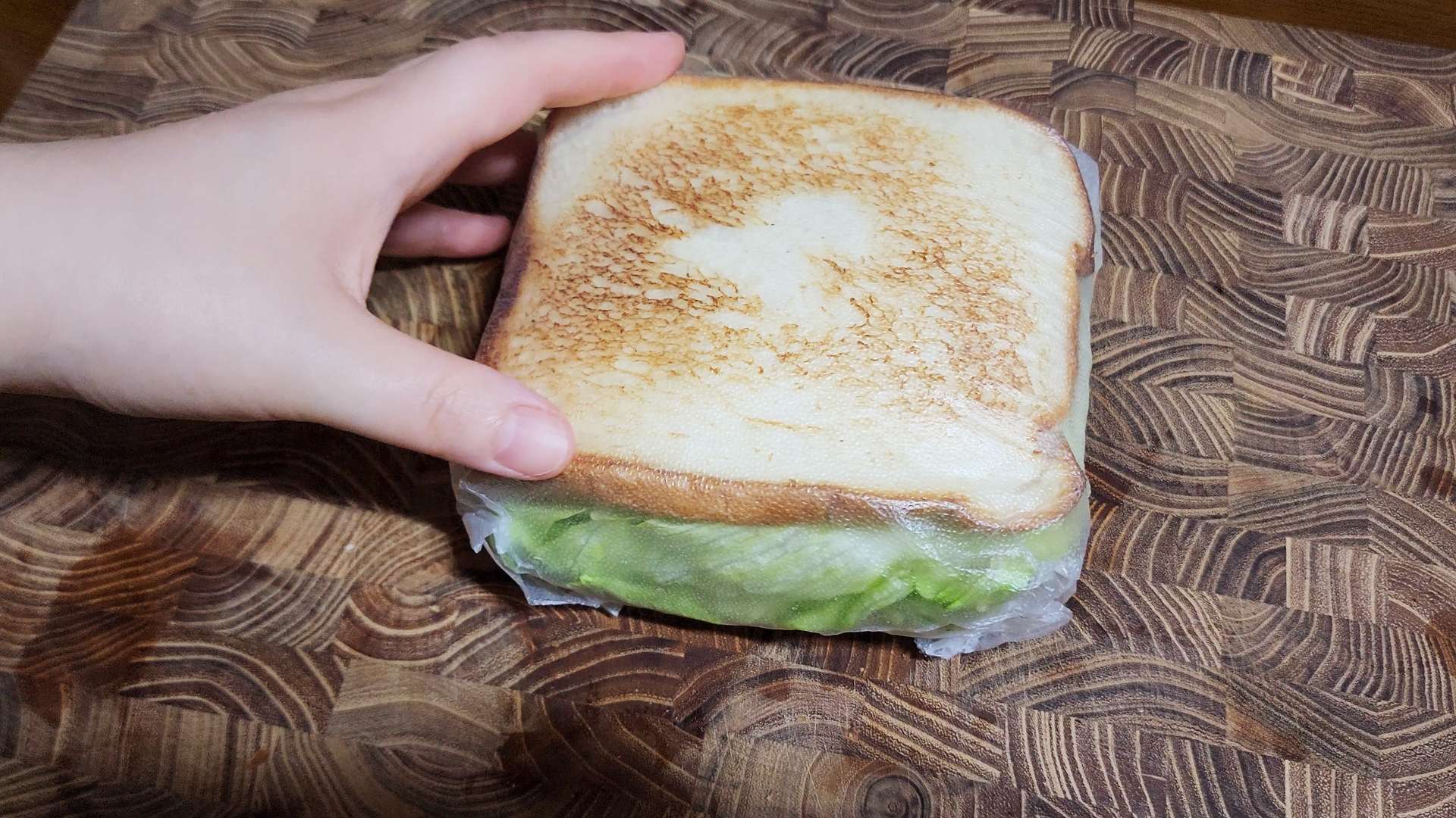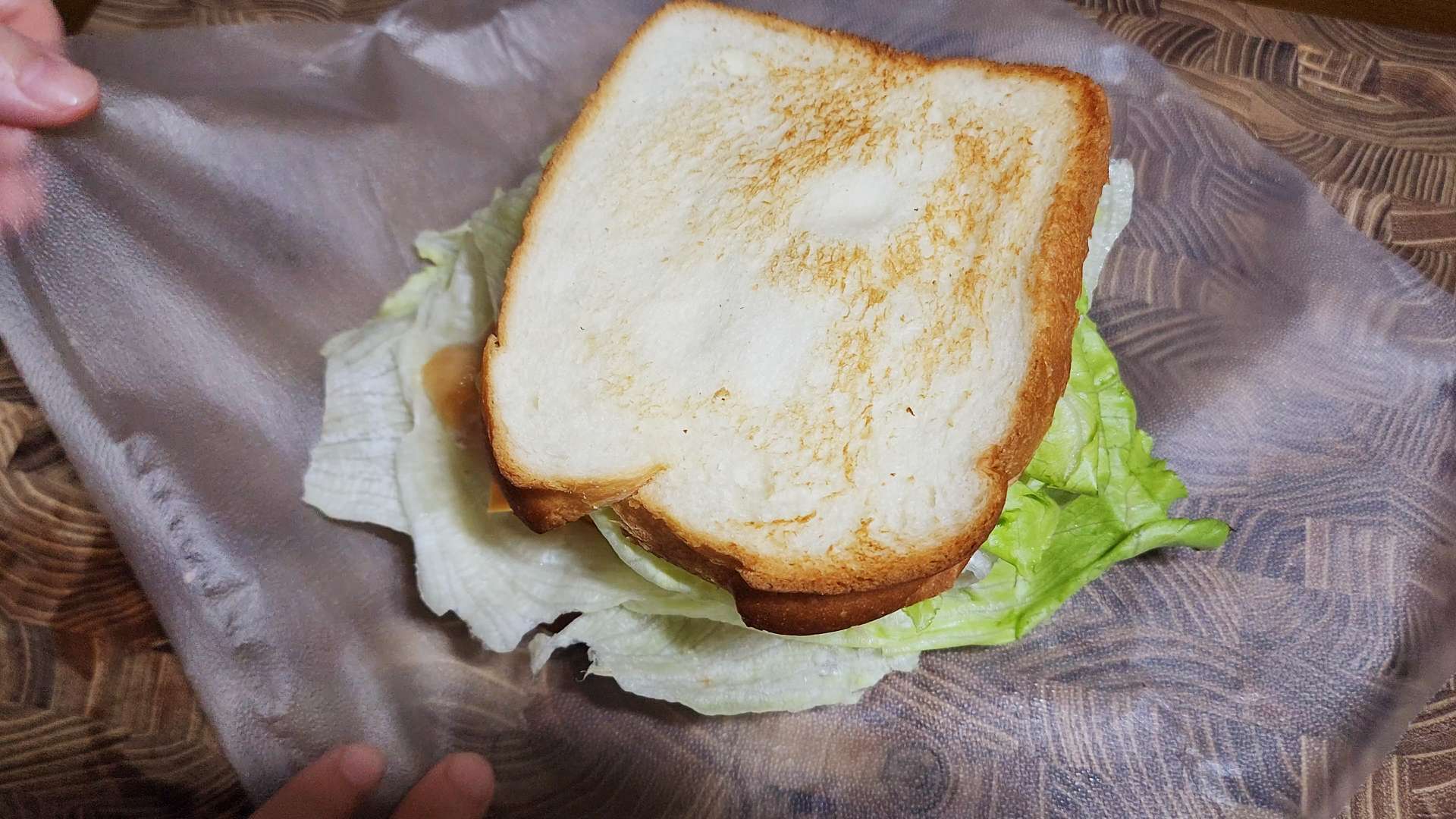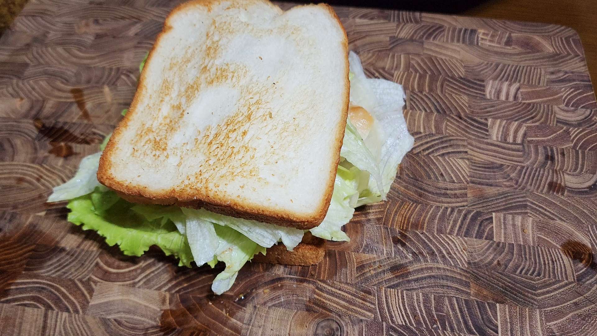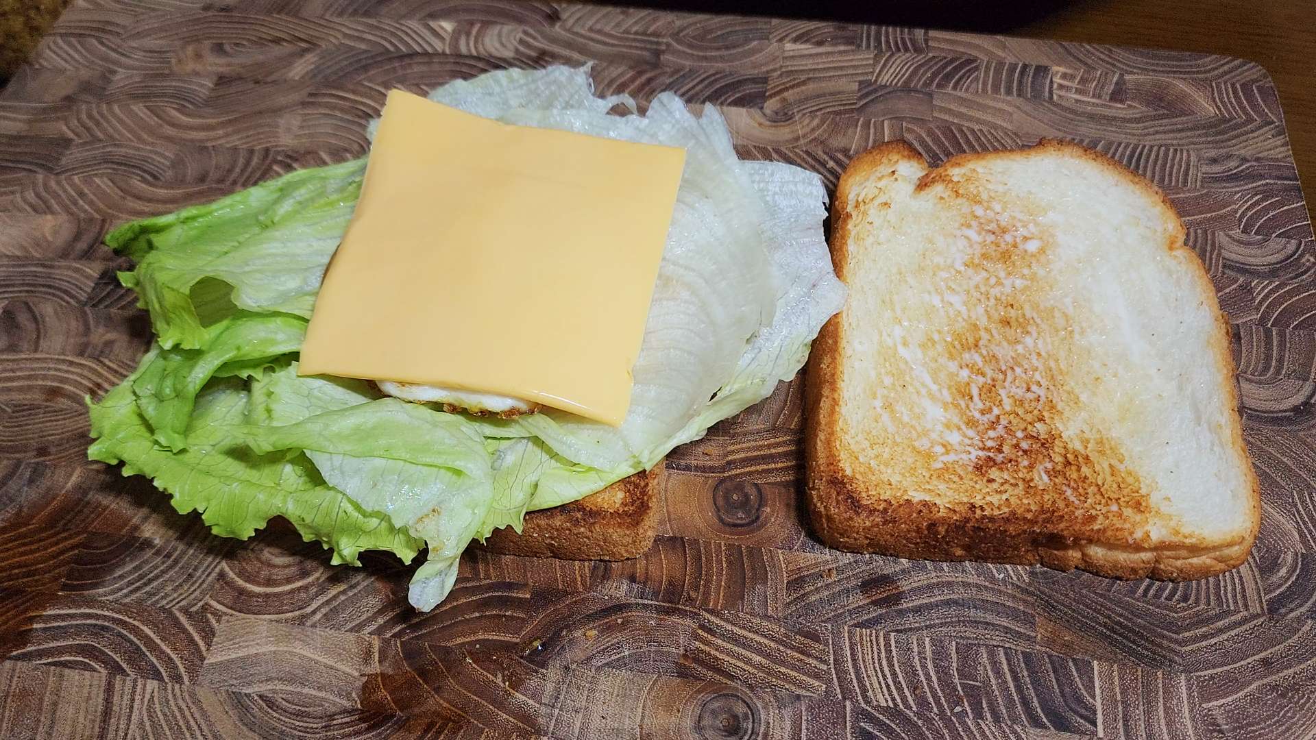 씨겨자 바른 식빵 -> 양상추 2장 -> 달걀 -> 치즈