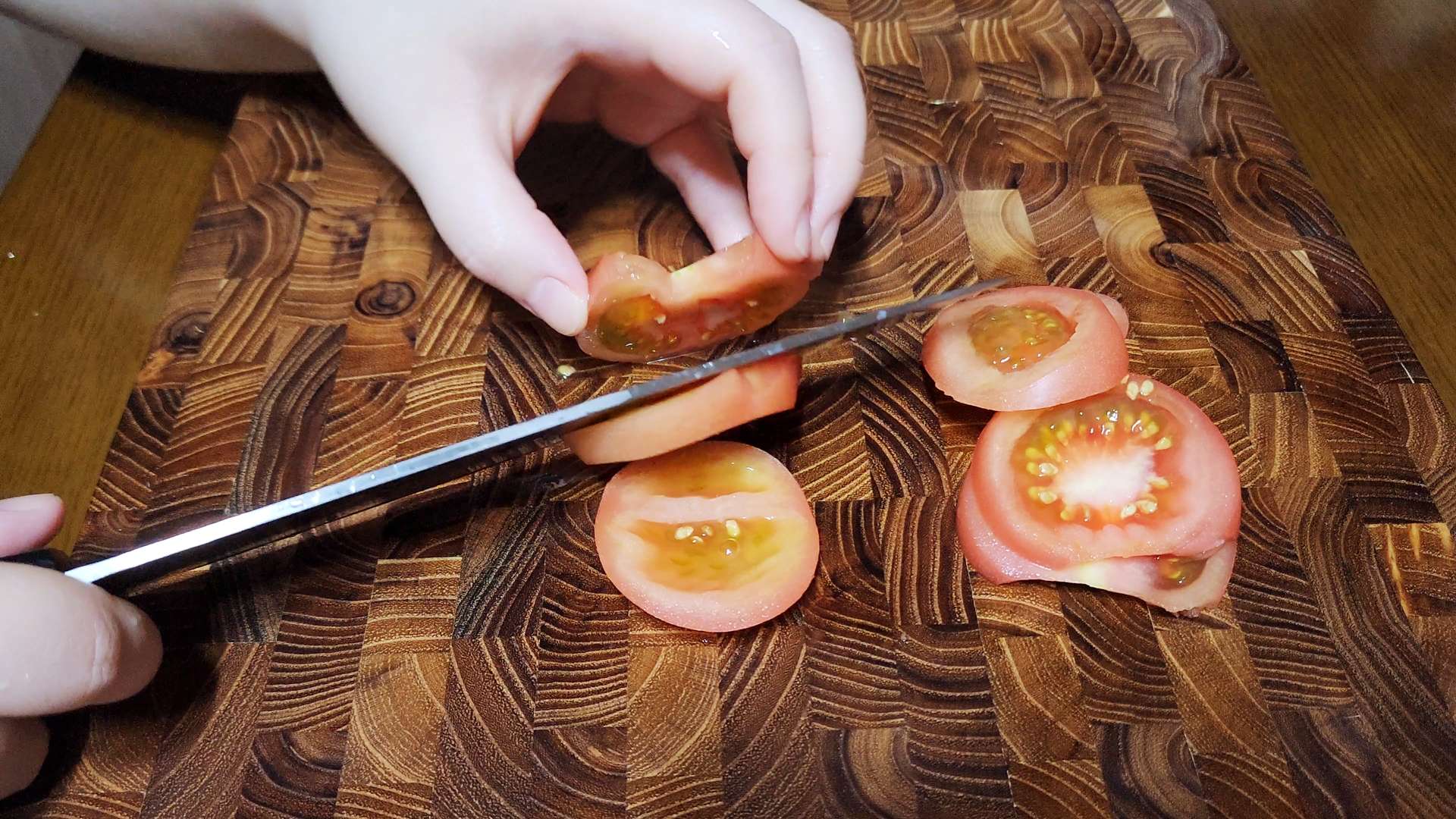 토마토는 얇게 슬라이스 해줍니다.
