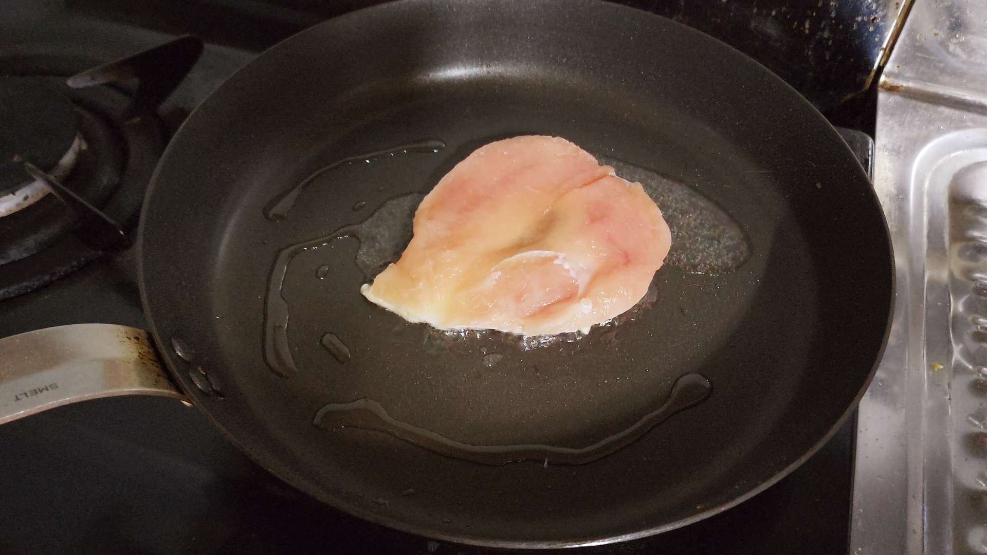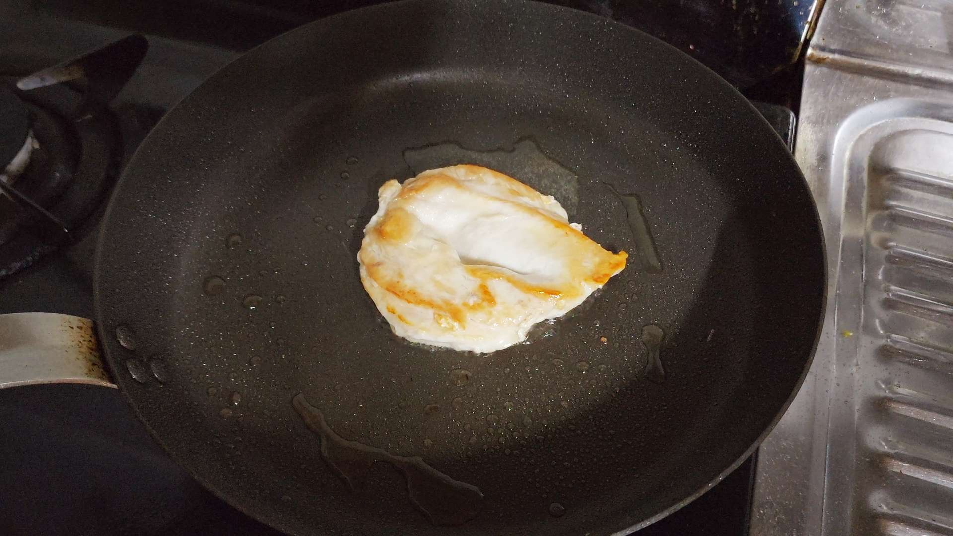 중불로 달군 팬에 식용유를 넣고 닭가슴살을 앞뒤로