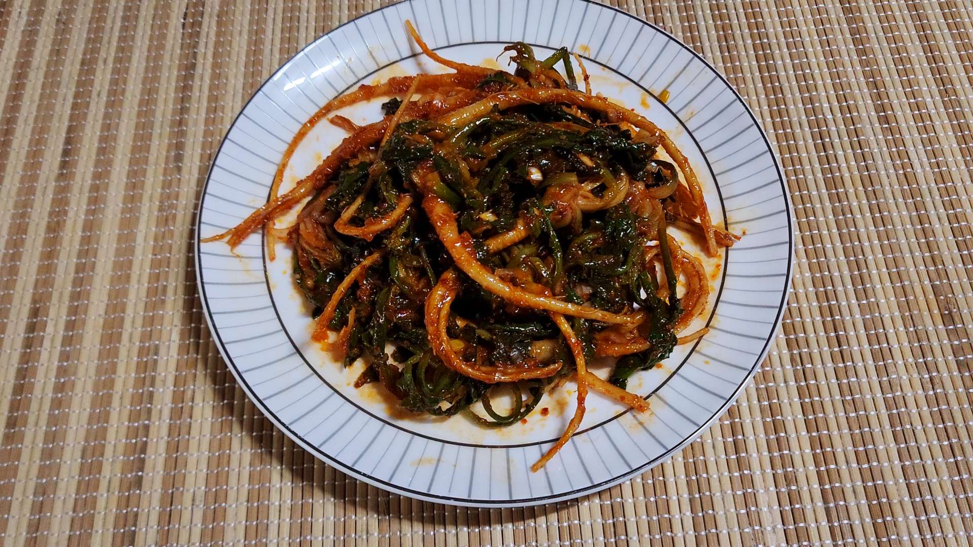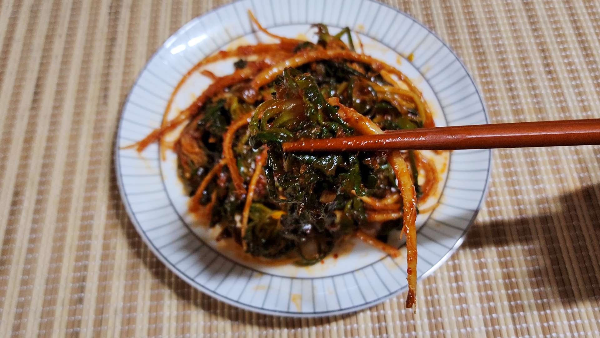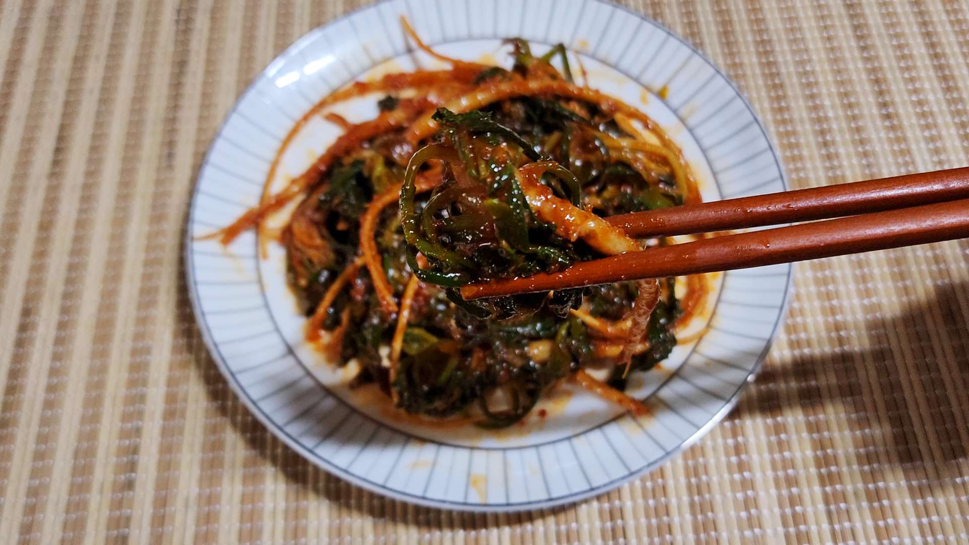 양념: 고춧가루 0.5T, 매실액 2T, 고추장 1T,