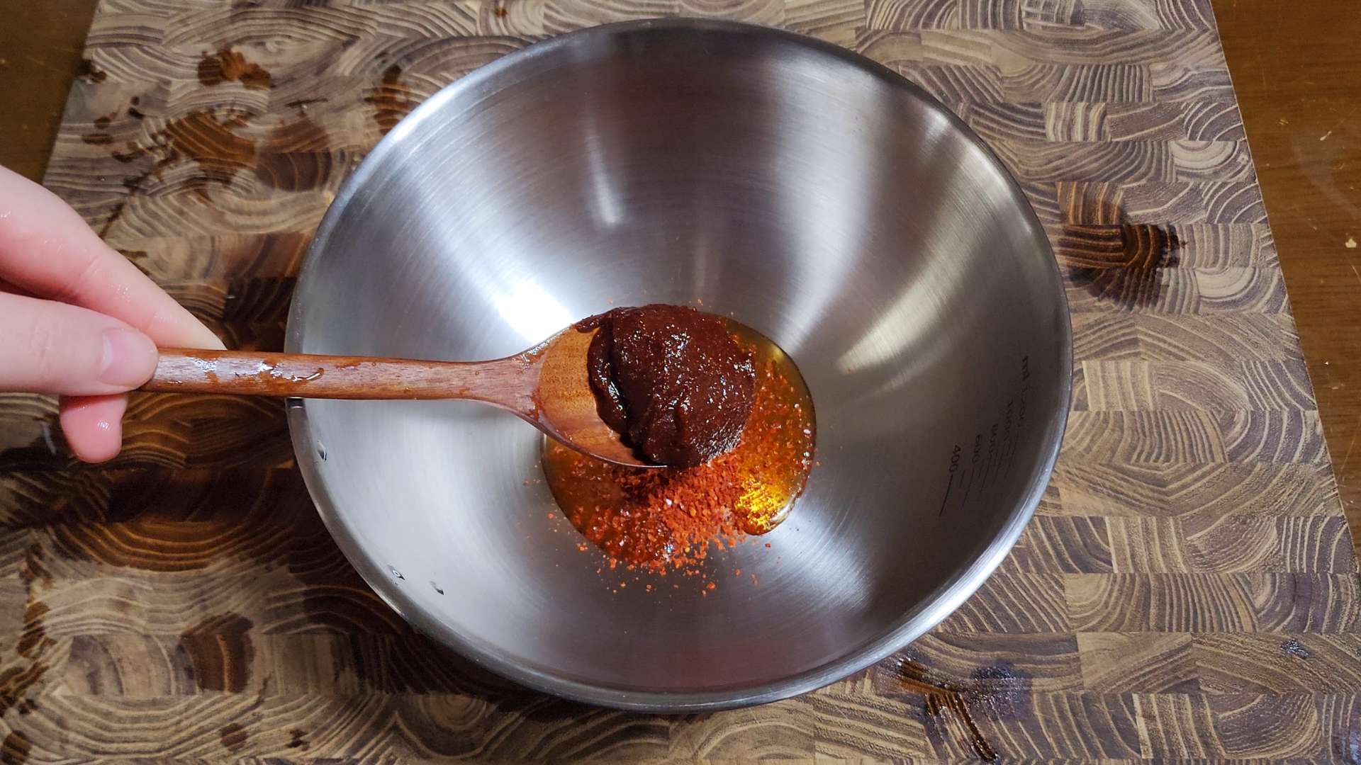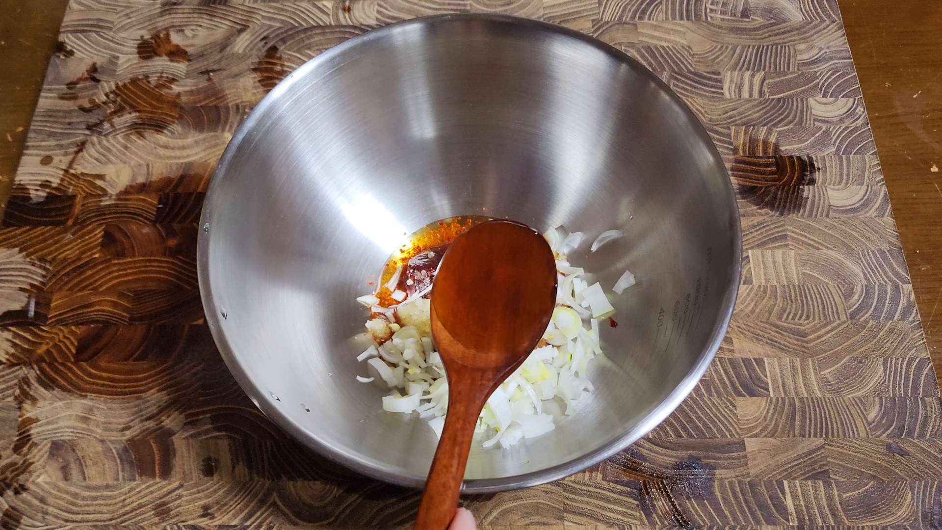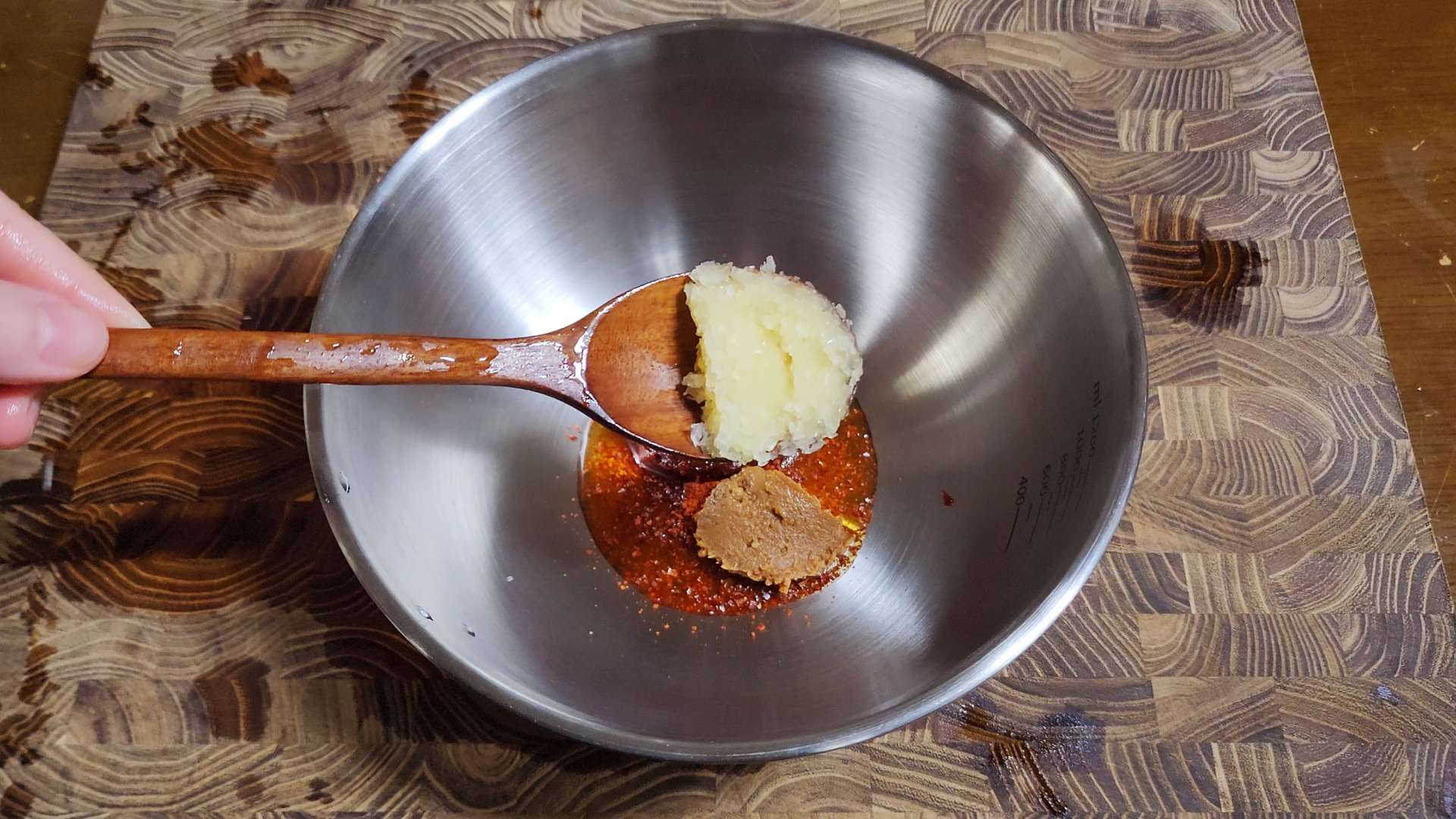 된장 0.5T, 다진마늘 0.5T, 다진파 1T