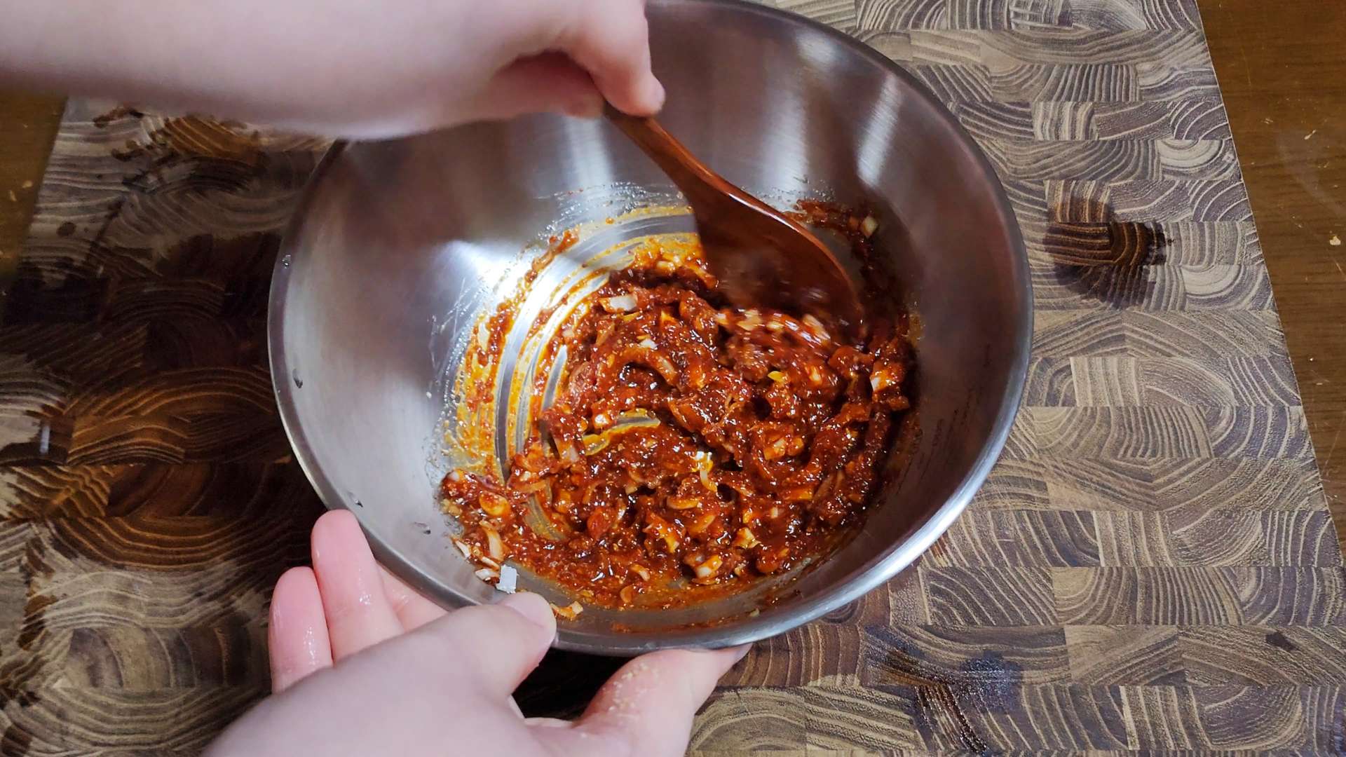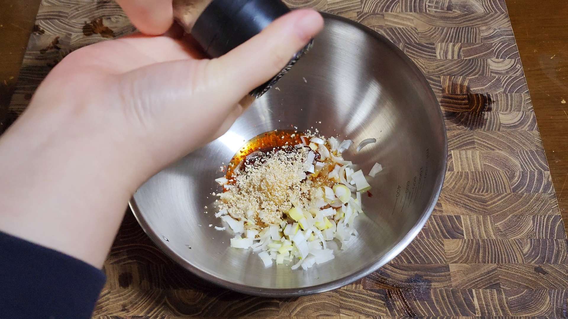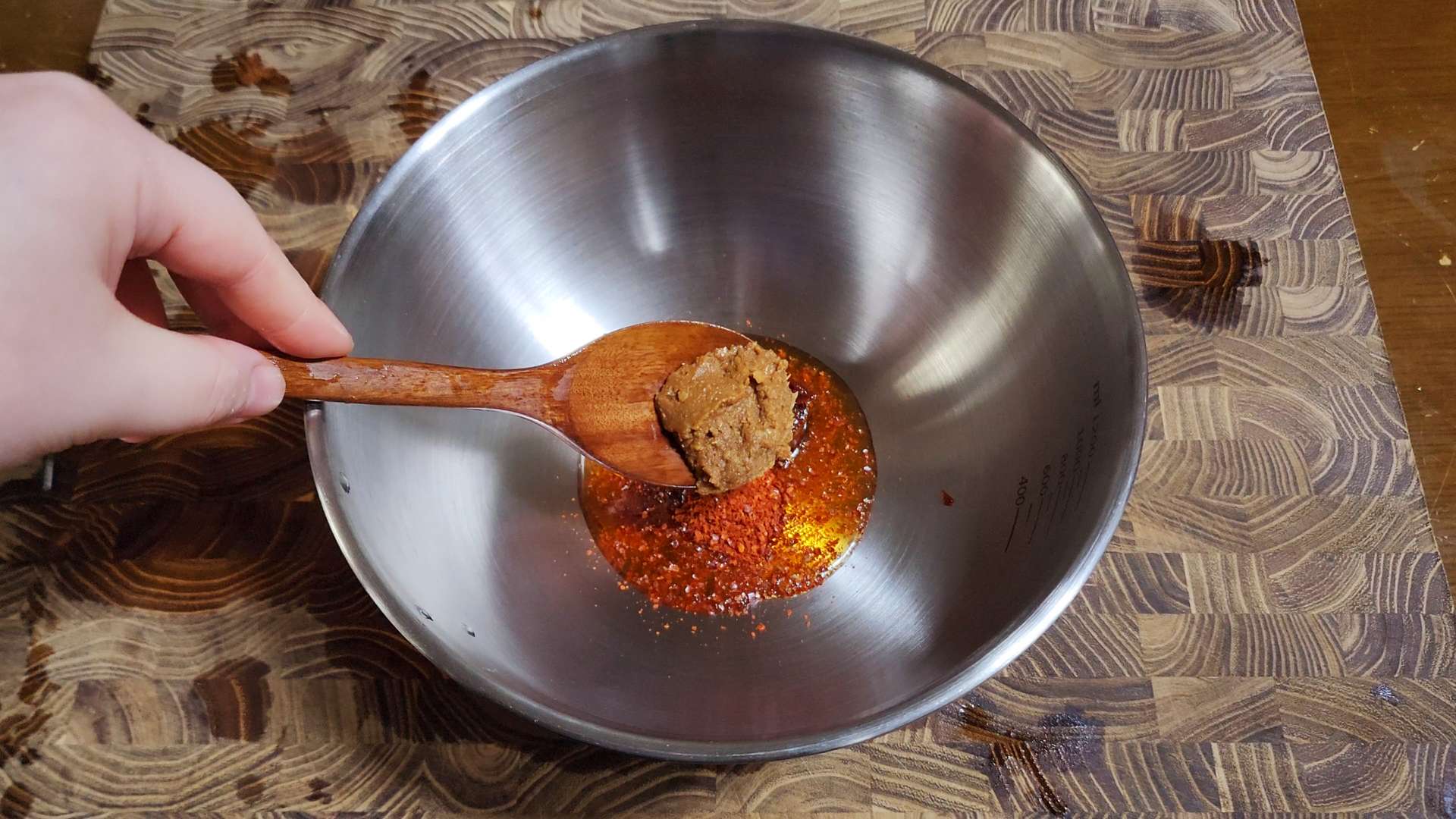 된장 0.5T, 다진마늘 0.5T, 다진파 1T