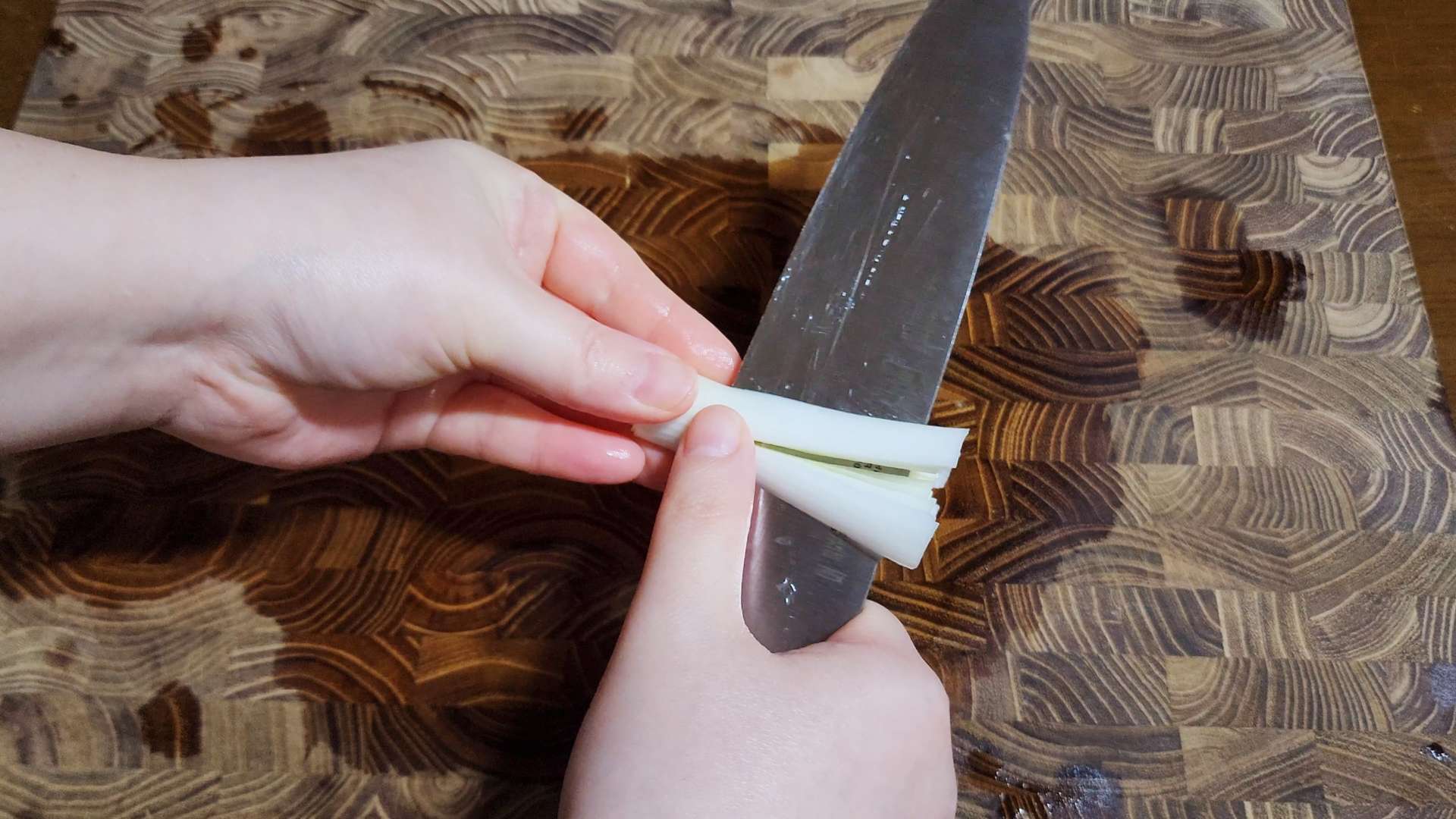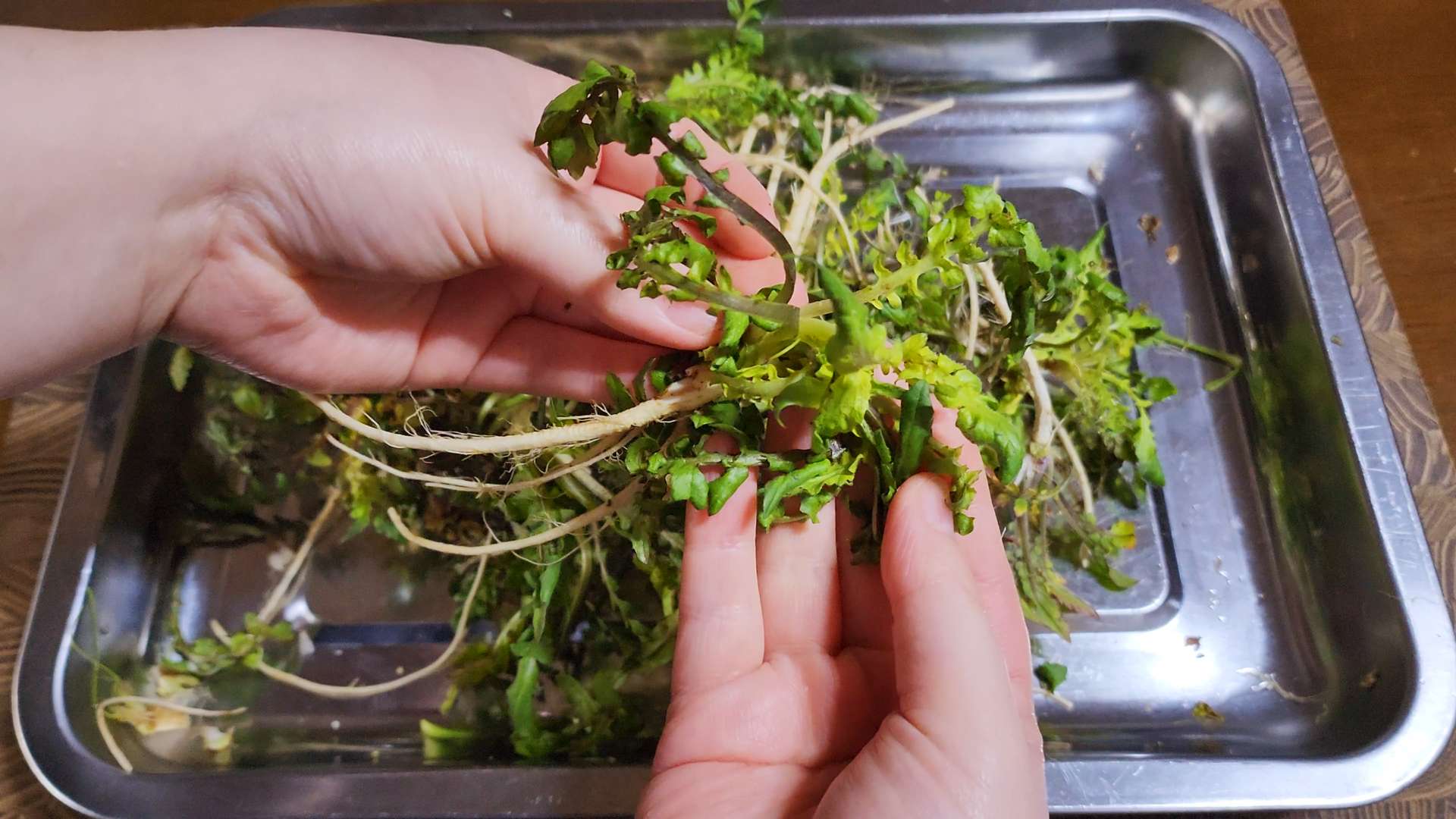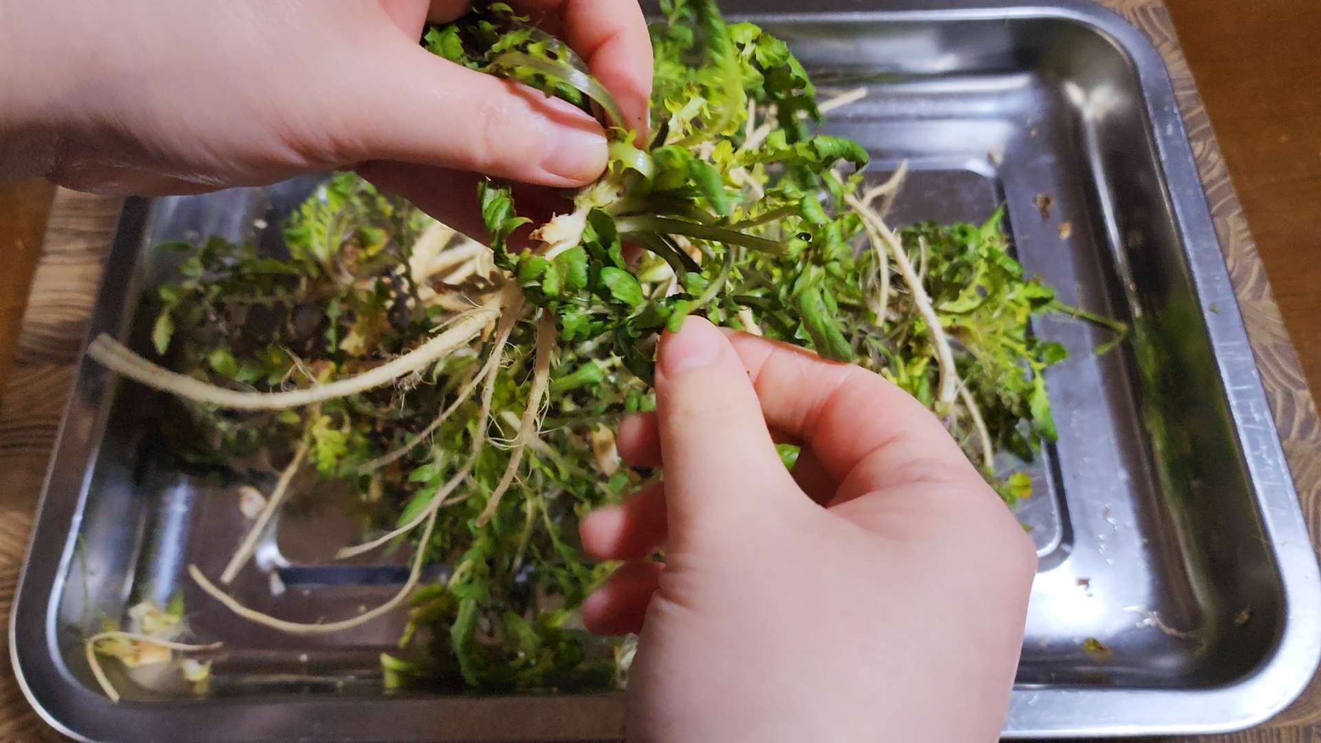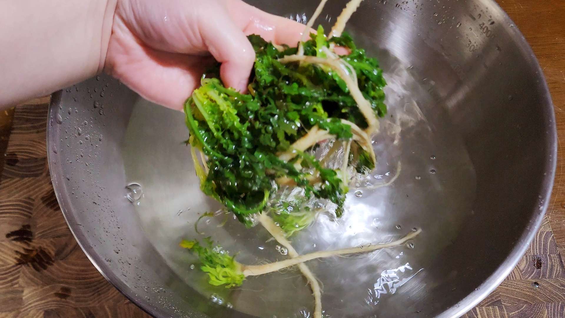 냉이는 뿌리와 잎 사이를 칼로 긁어줍니다.