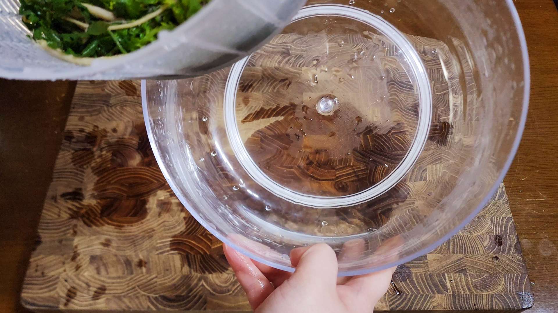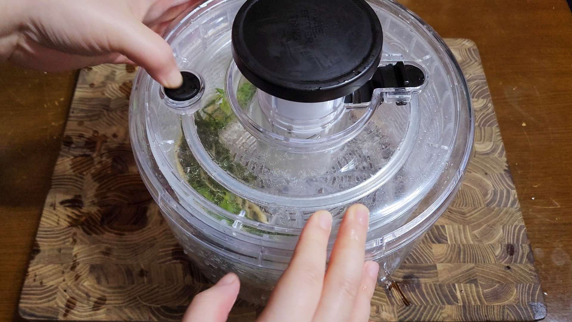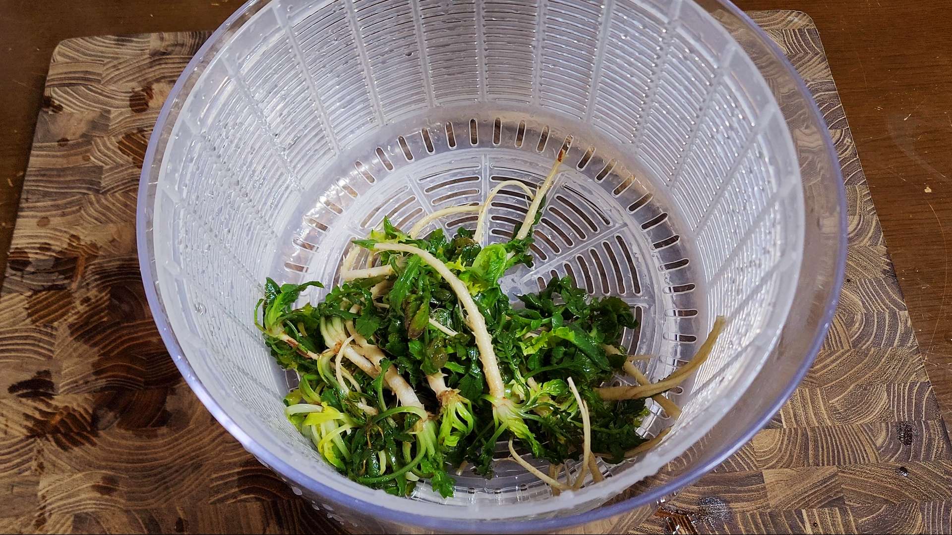 야채탈수기에 넣고 펌핑 해주면 물기를 완전히 제거할수 있답니다.