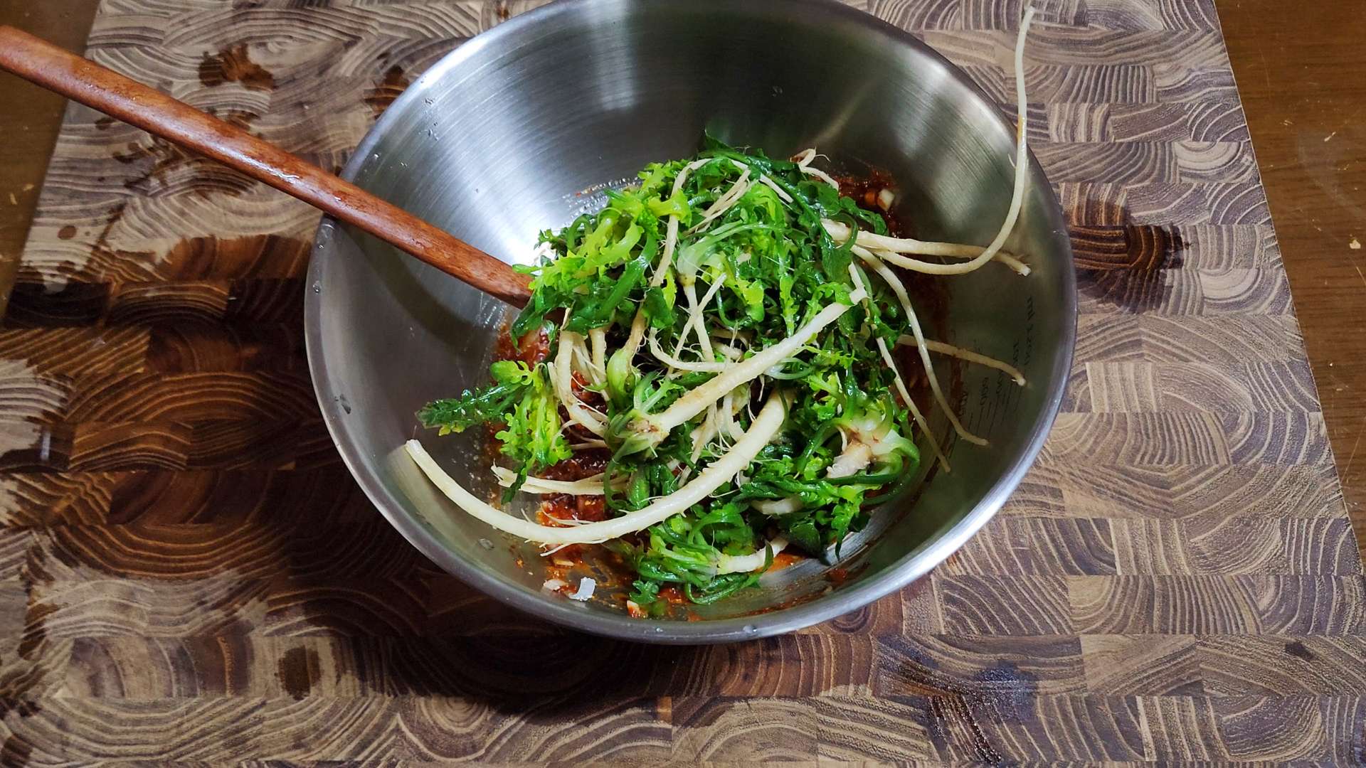 냉이를 넣고 무쳐줍니다.