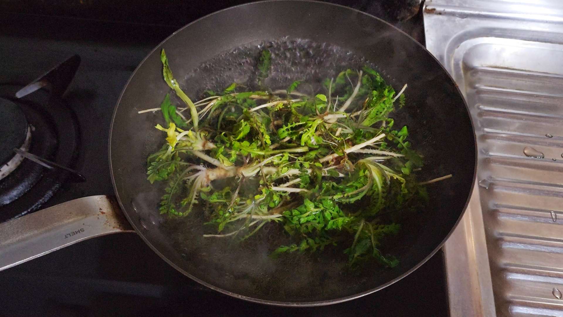 끓는 물에 굵은소금 0.5T, 냉이를 넣고 1분 정도 데쳐줍니다.