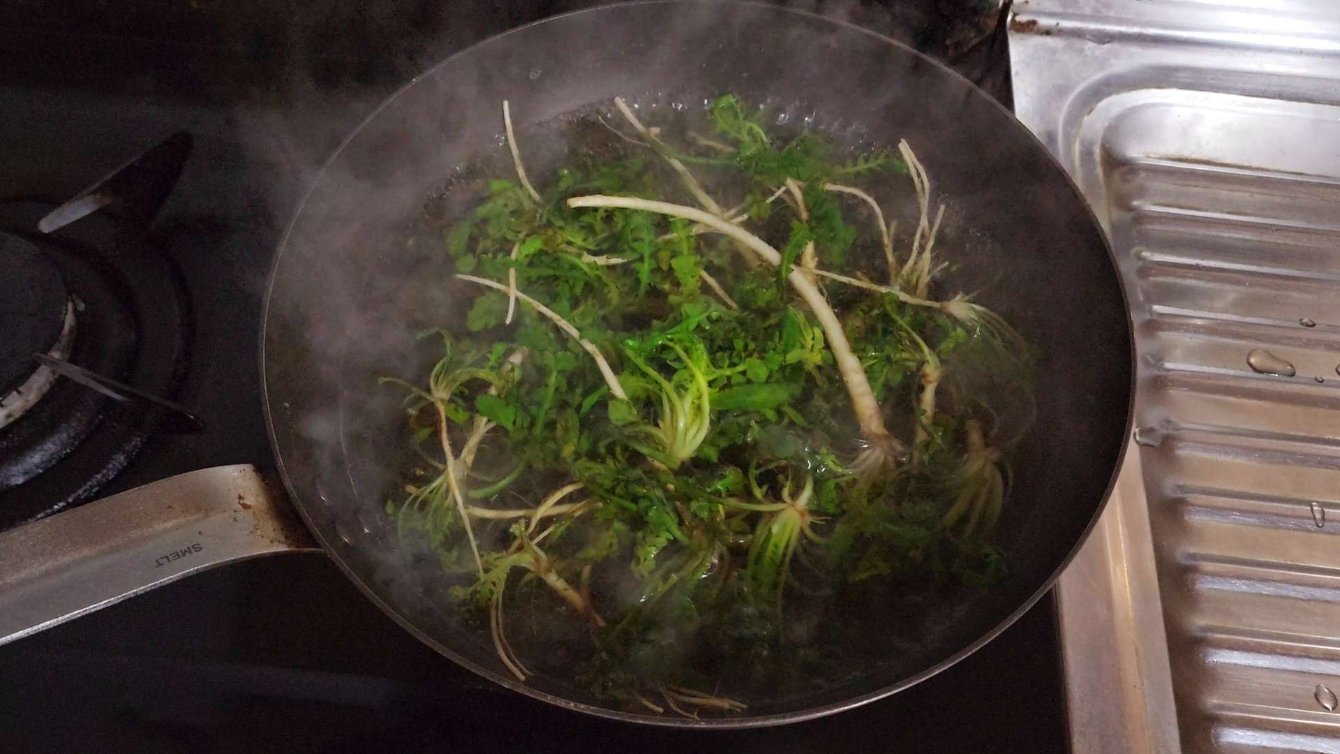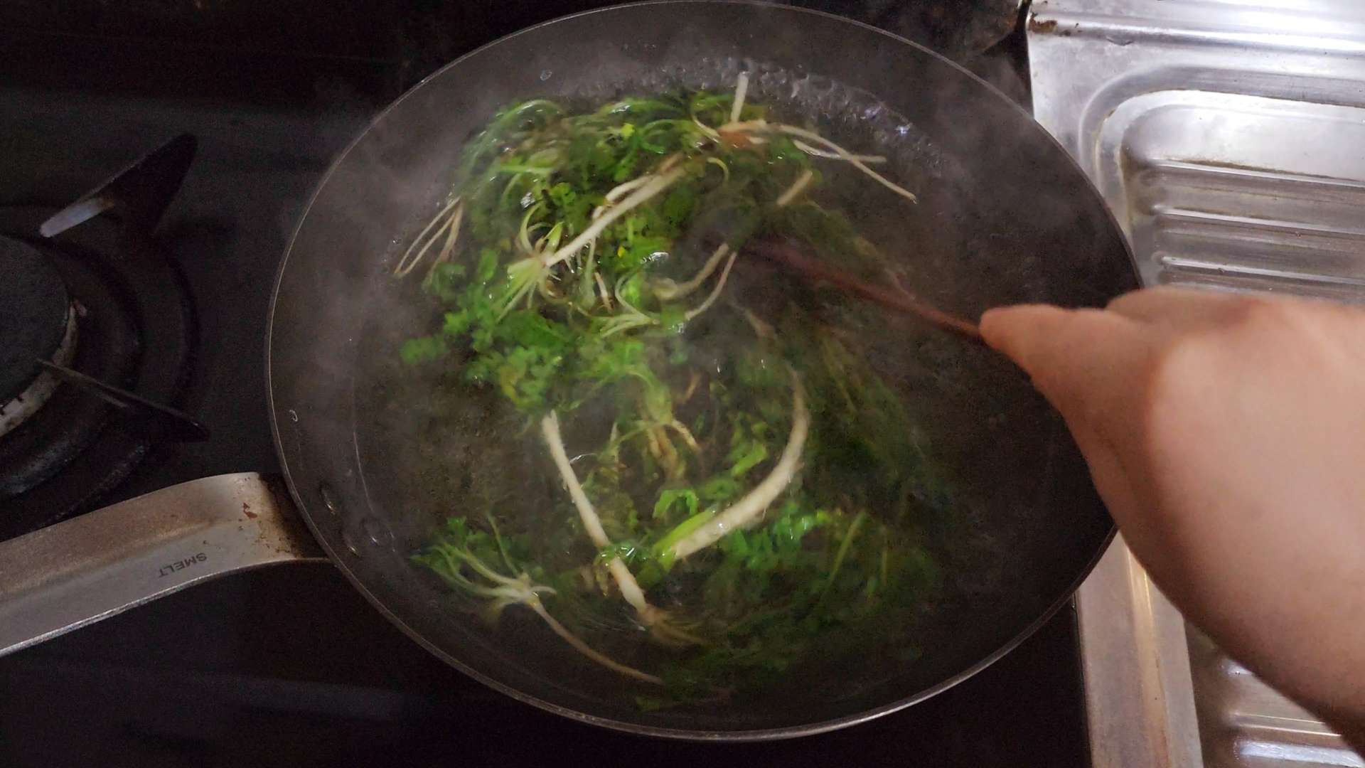 끓는 물에 굵은소금 0.5T, 냉이를 넣고 1분 정도 데쳐줍니다.