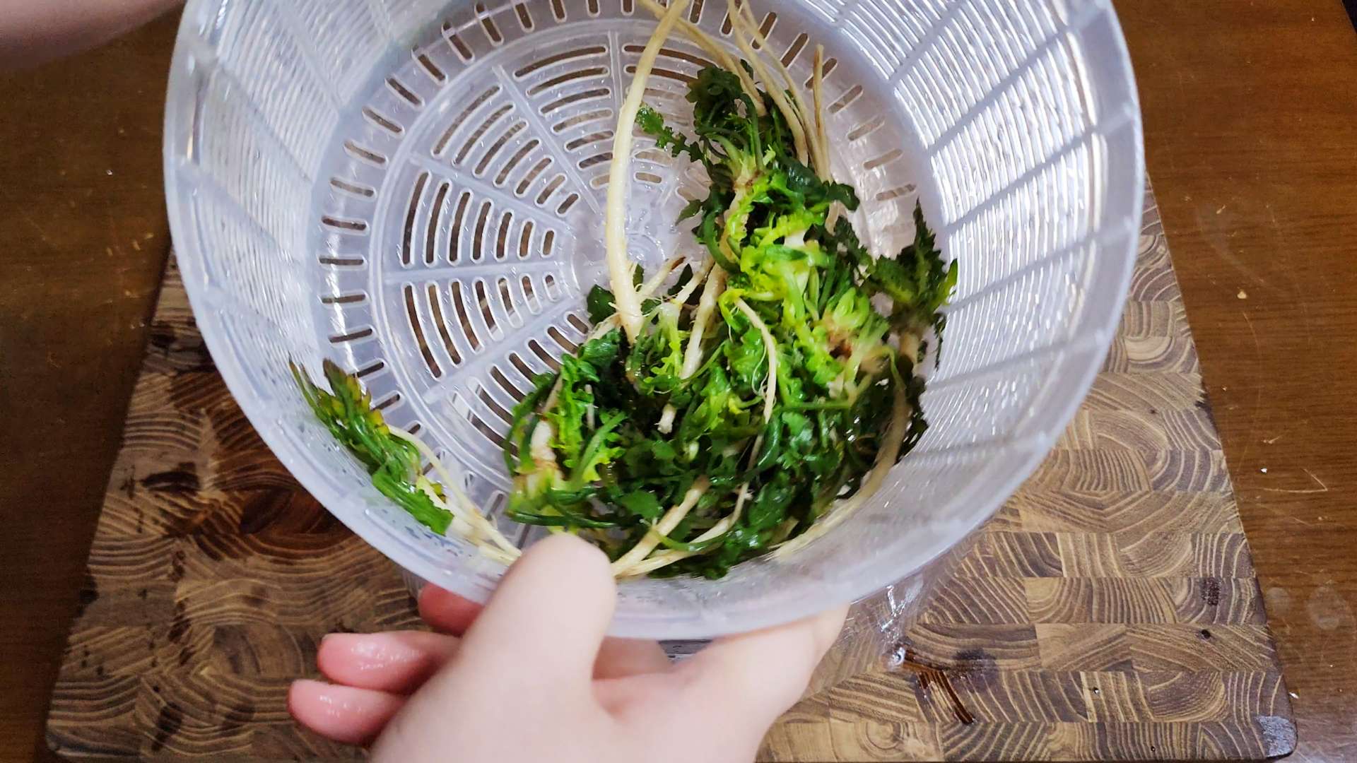 야채탈수기에 넣고 펌핑 해주면 물기를 완전히 제거할수 있답니다.