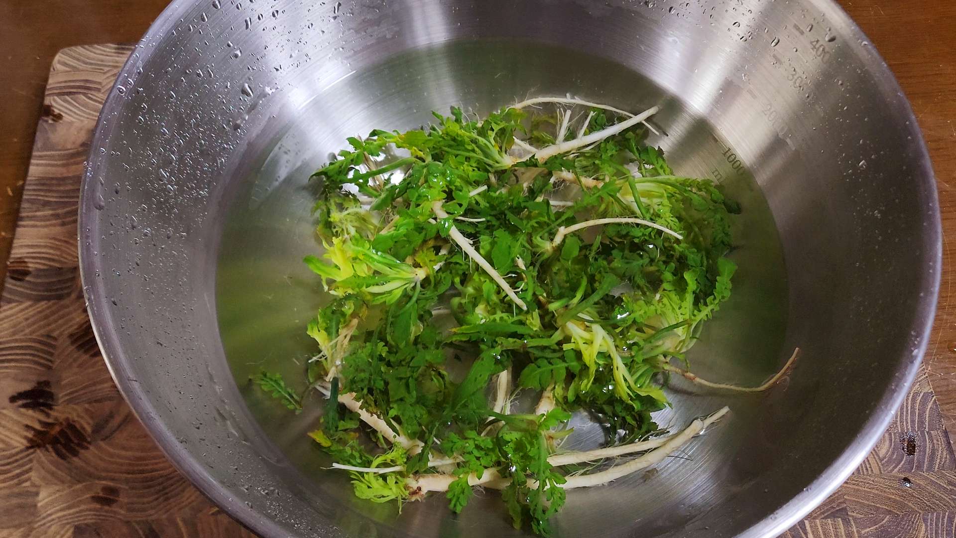 물에 식초 1T, 냉이를 넣고 5분간 담궈 씻어줍니다.