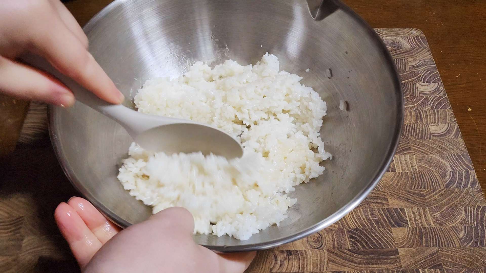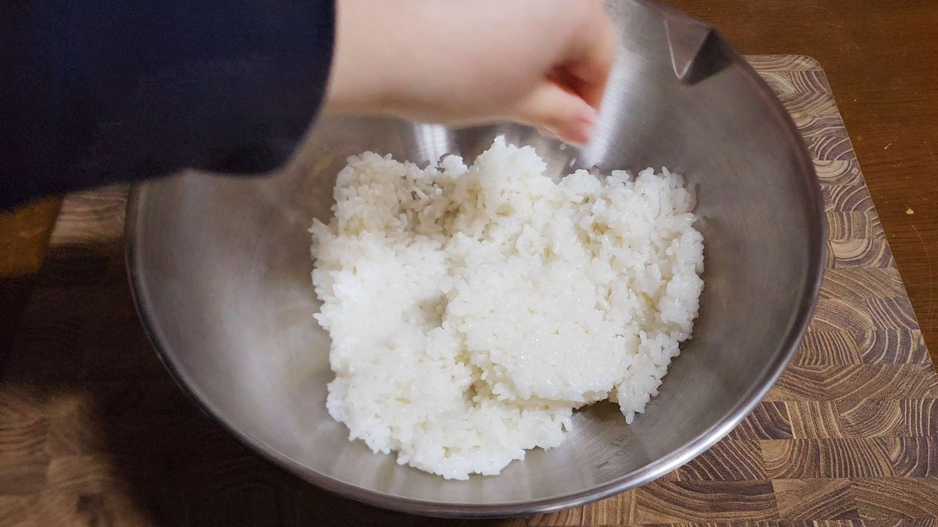 밥 양념: 쌀밥 한공기 반, 맛소금 한꼬집, 참기름 1T