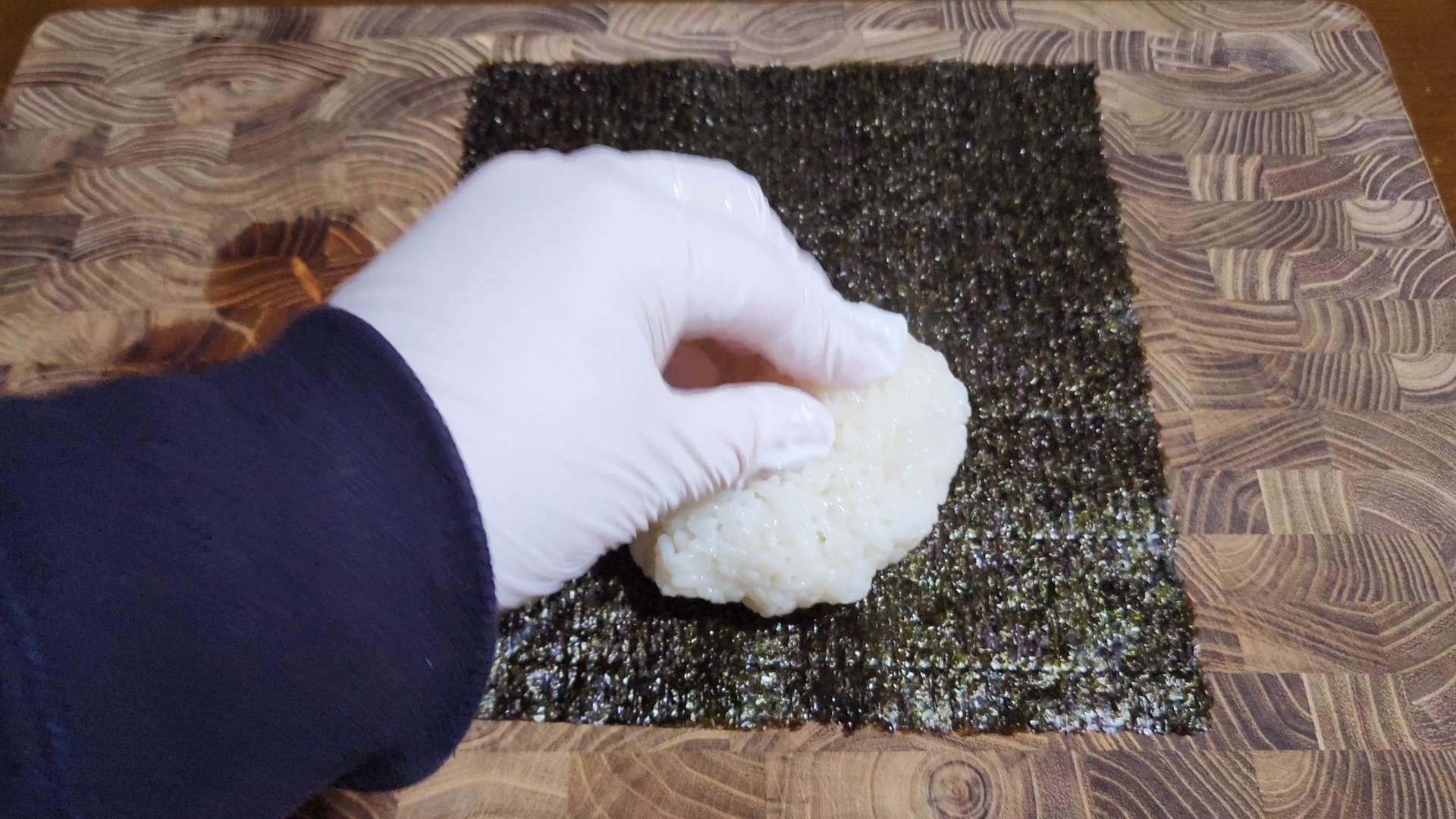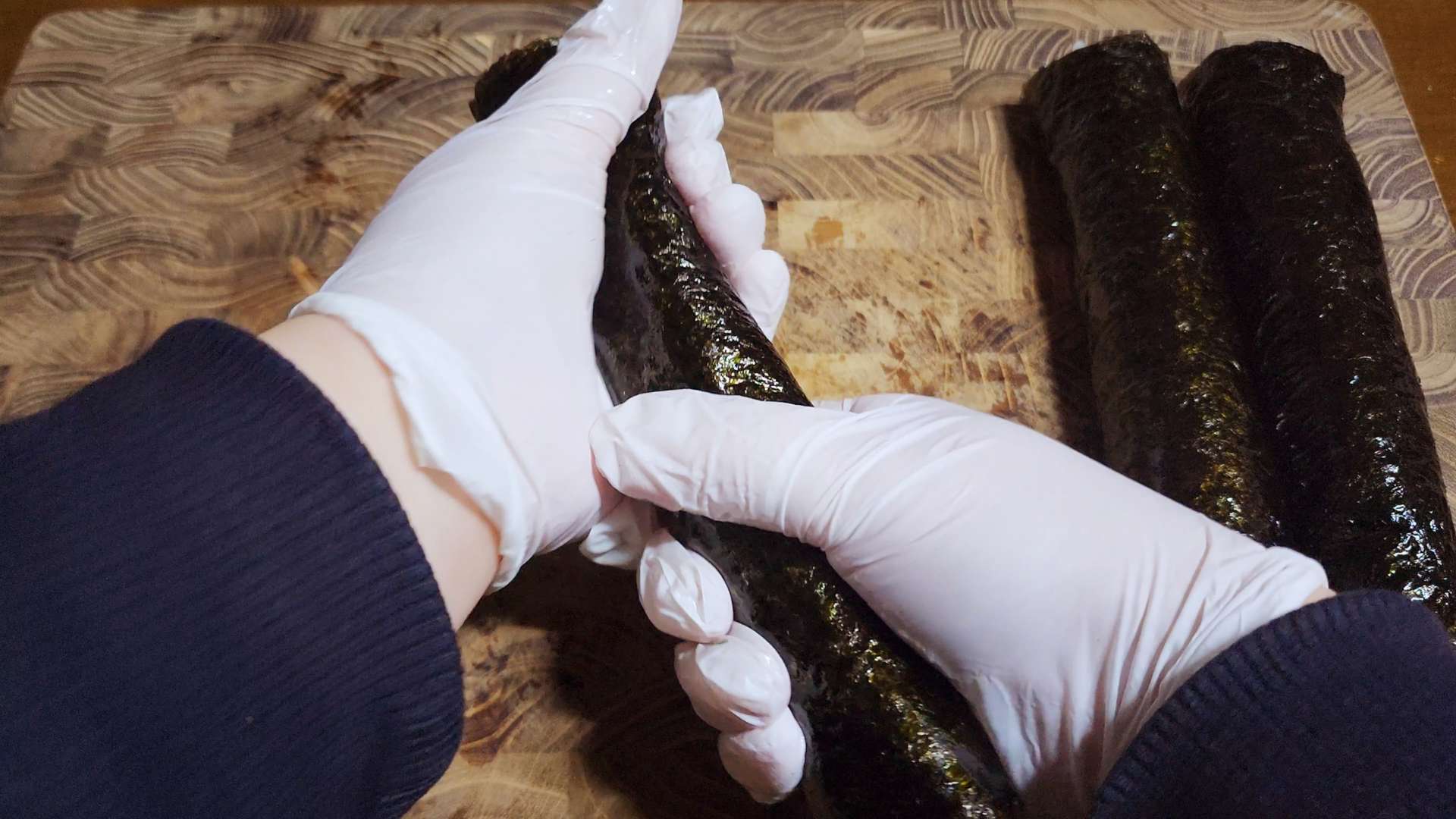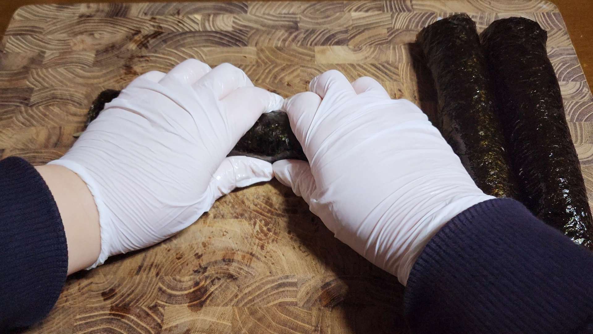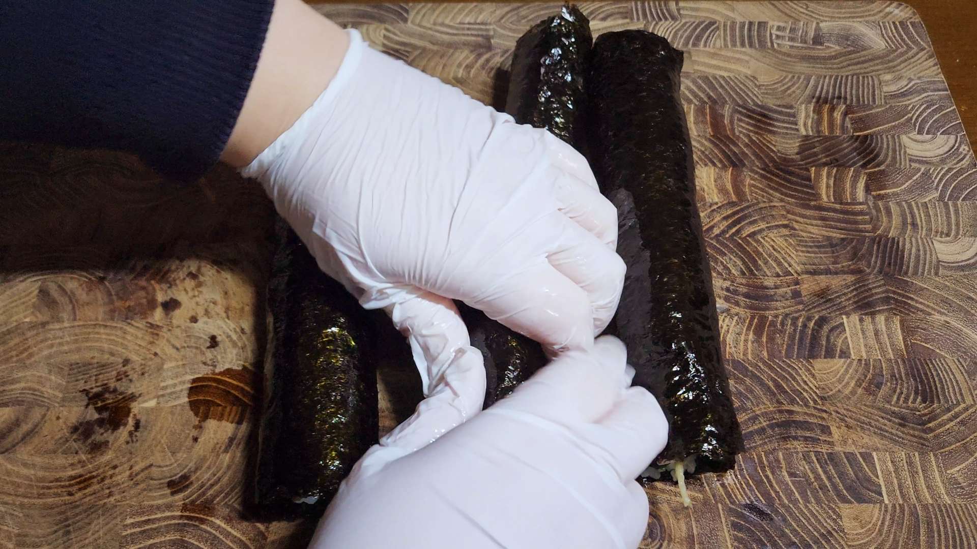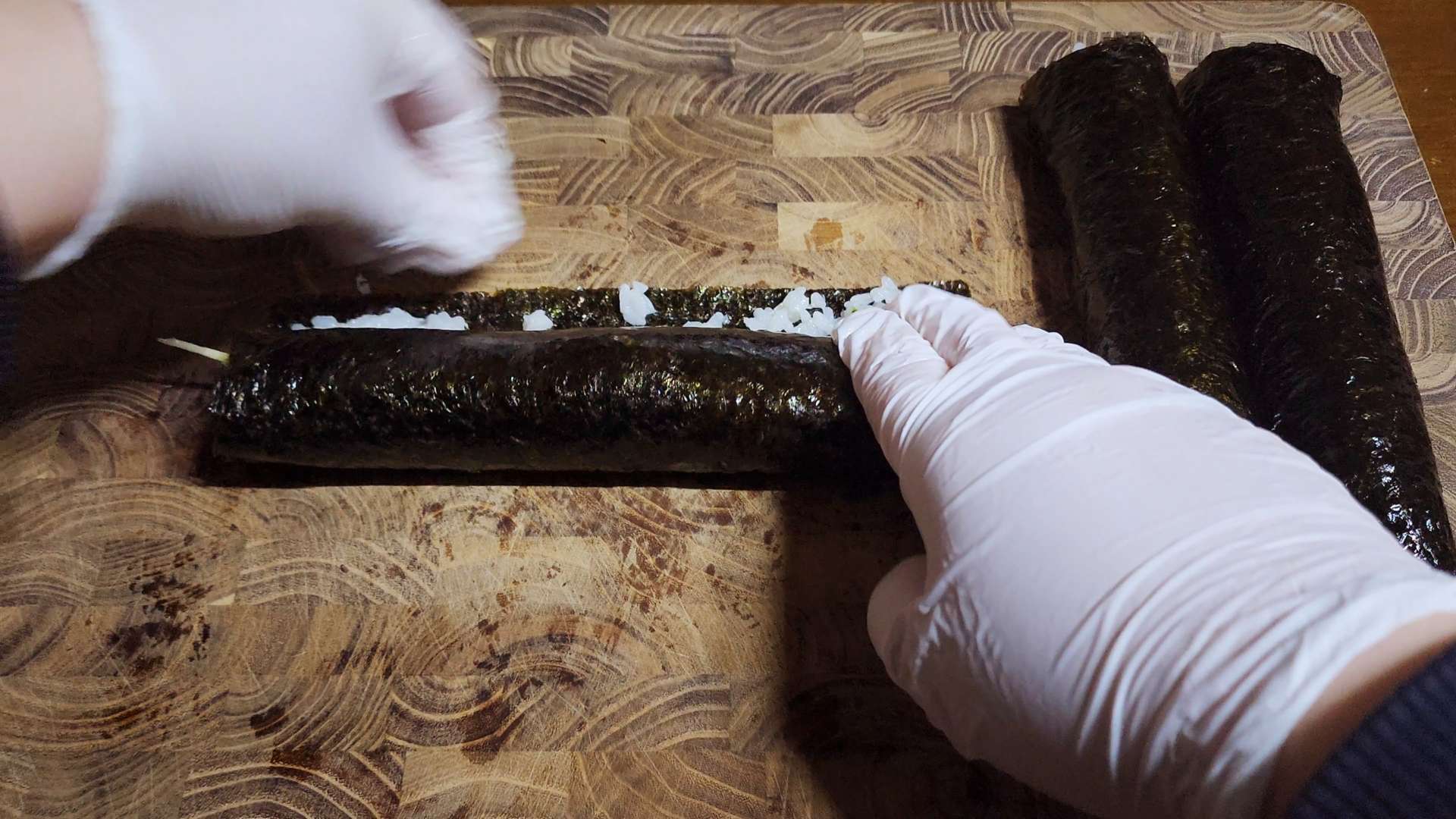 김의 끝 부분에 물이나 밥풀 발라줍니다.