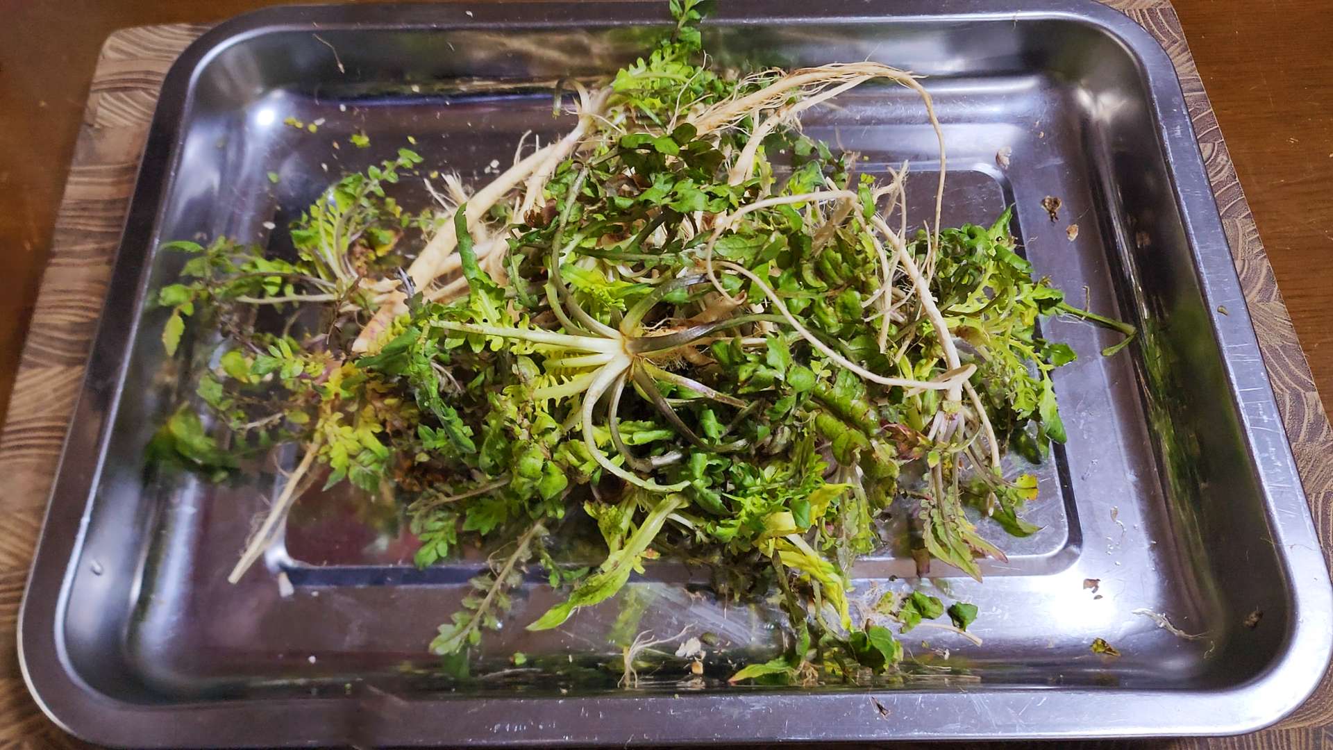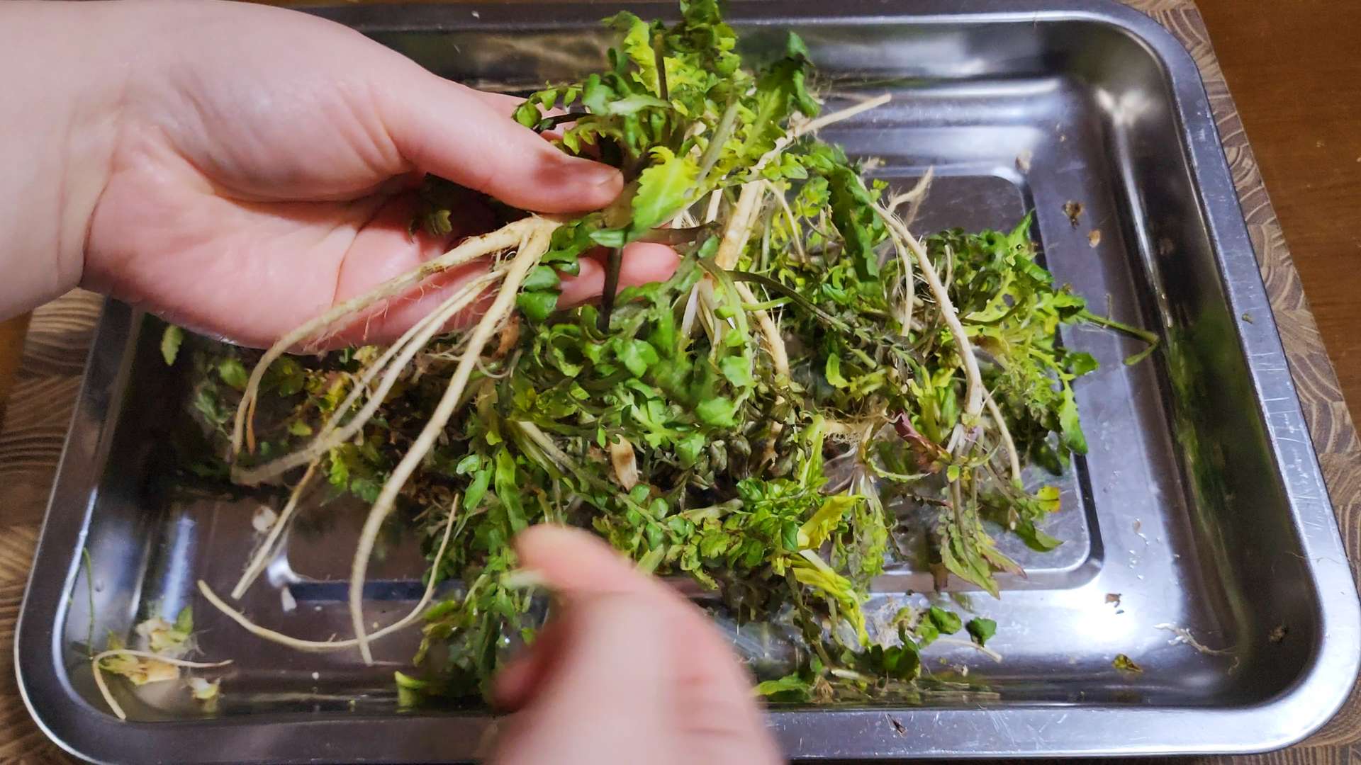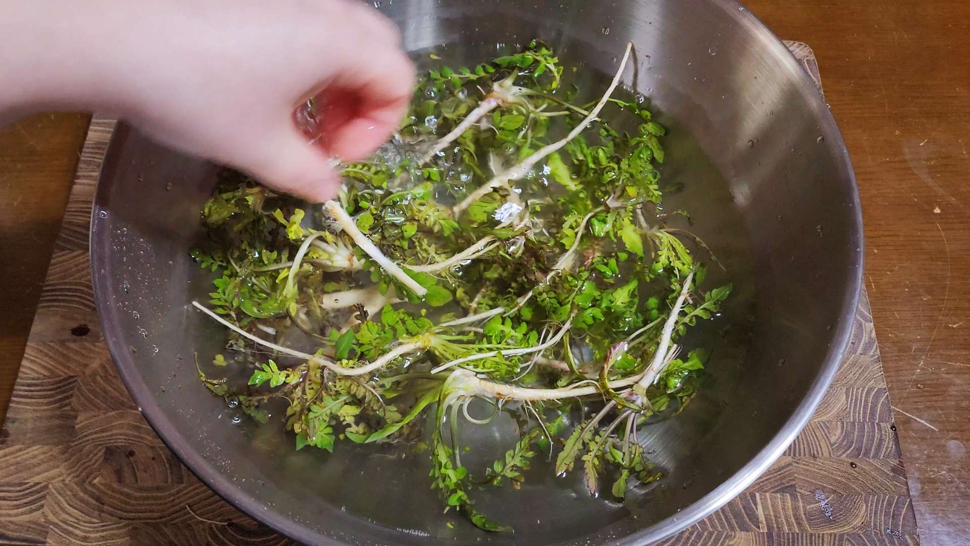 냉이는 뿌리와 잎 사이를 칼로 긁어줍니다.