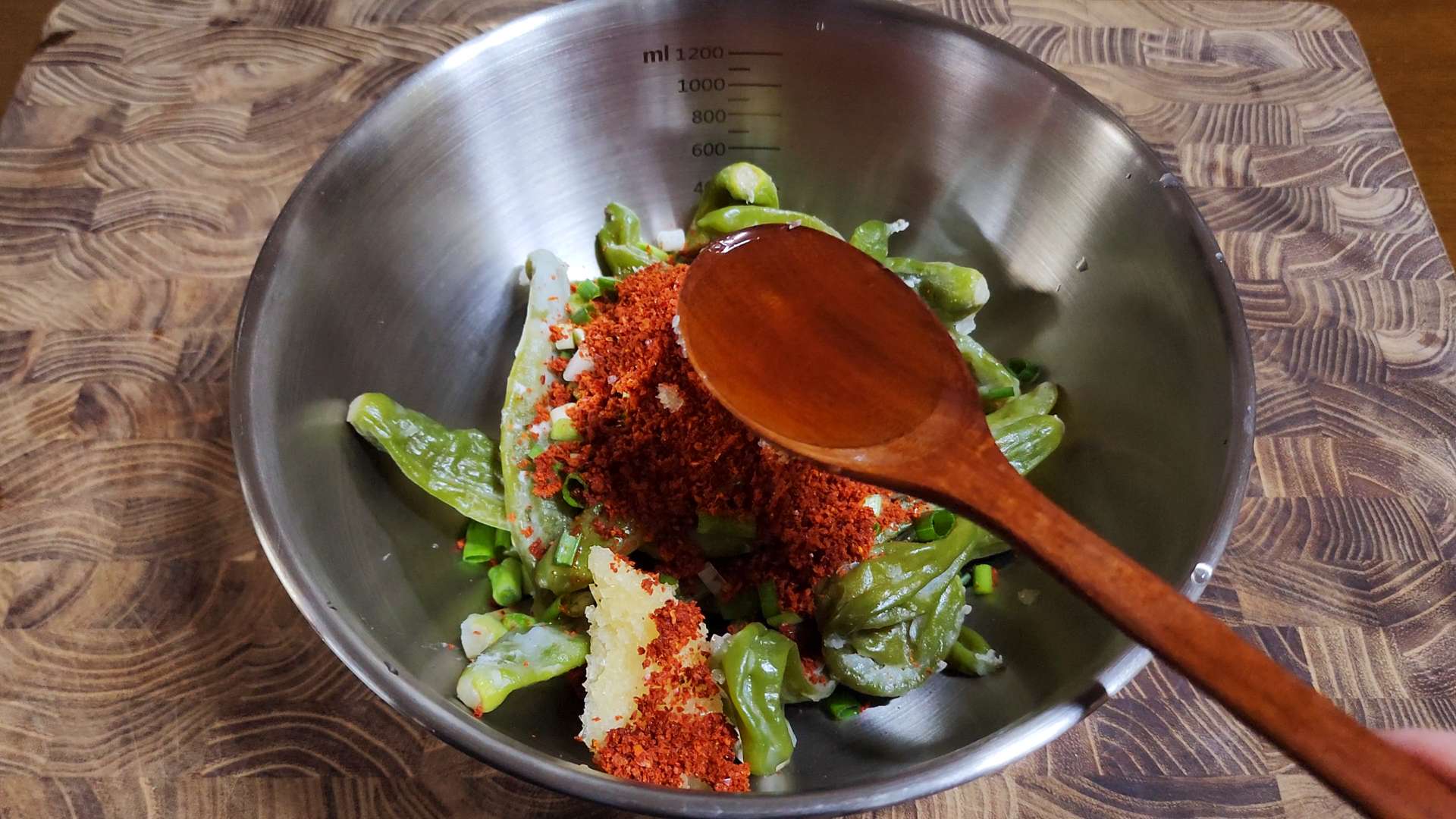 꽈리고추, 쪽파, 멸치액젓 2T, 국간장 1T,