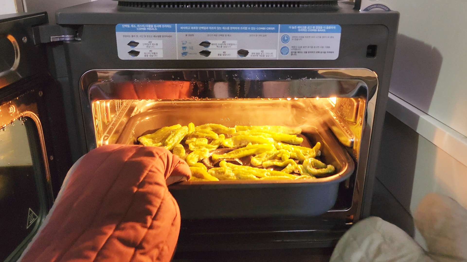 닌자콤비 STEAM 모드를 사용하니깐 꽈리고추가 부드럽게 잘 익었네요.