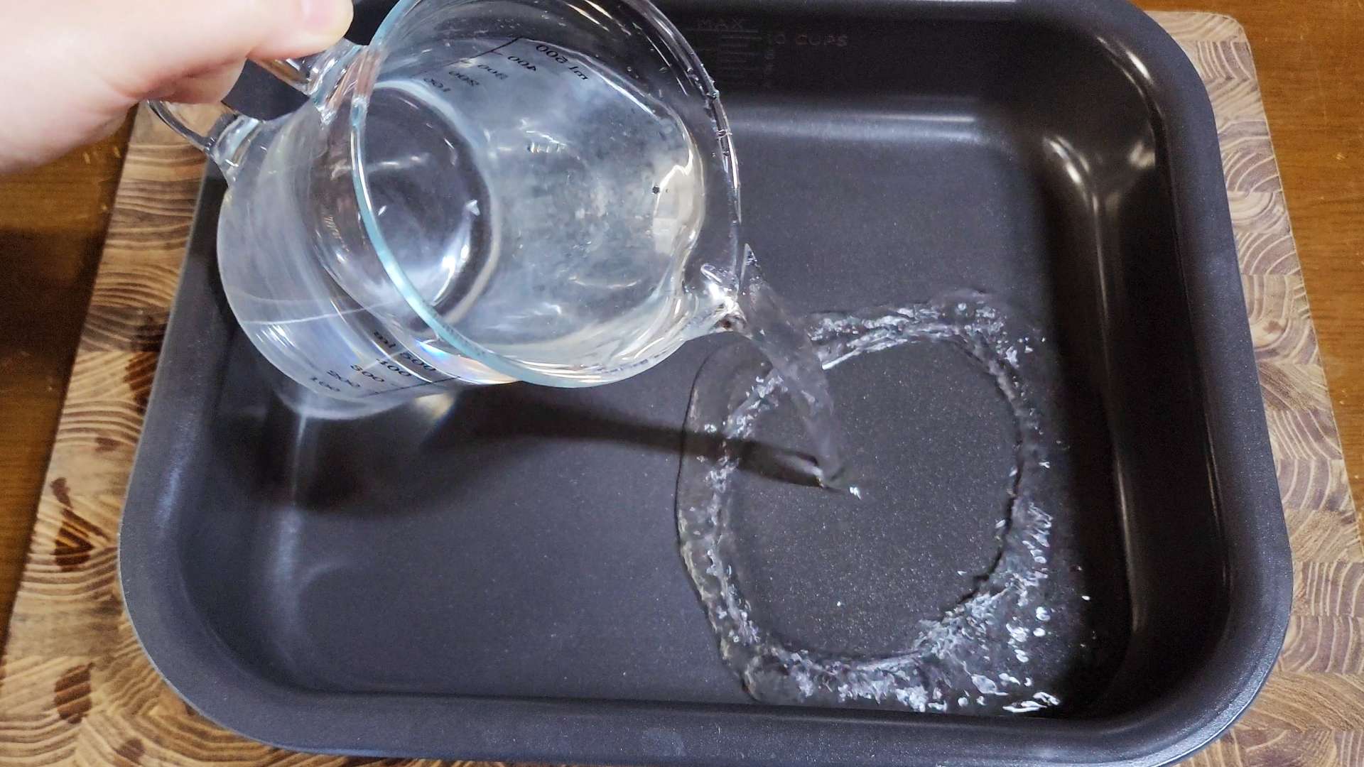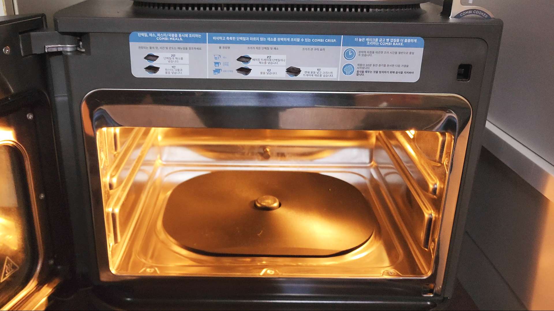 콤비팬에 물을 넣고 크리스피 플레이트를 올려줍니다.