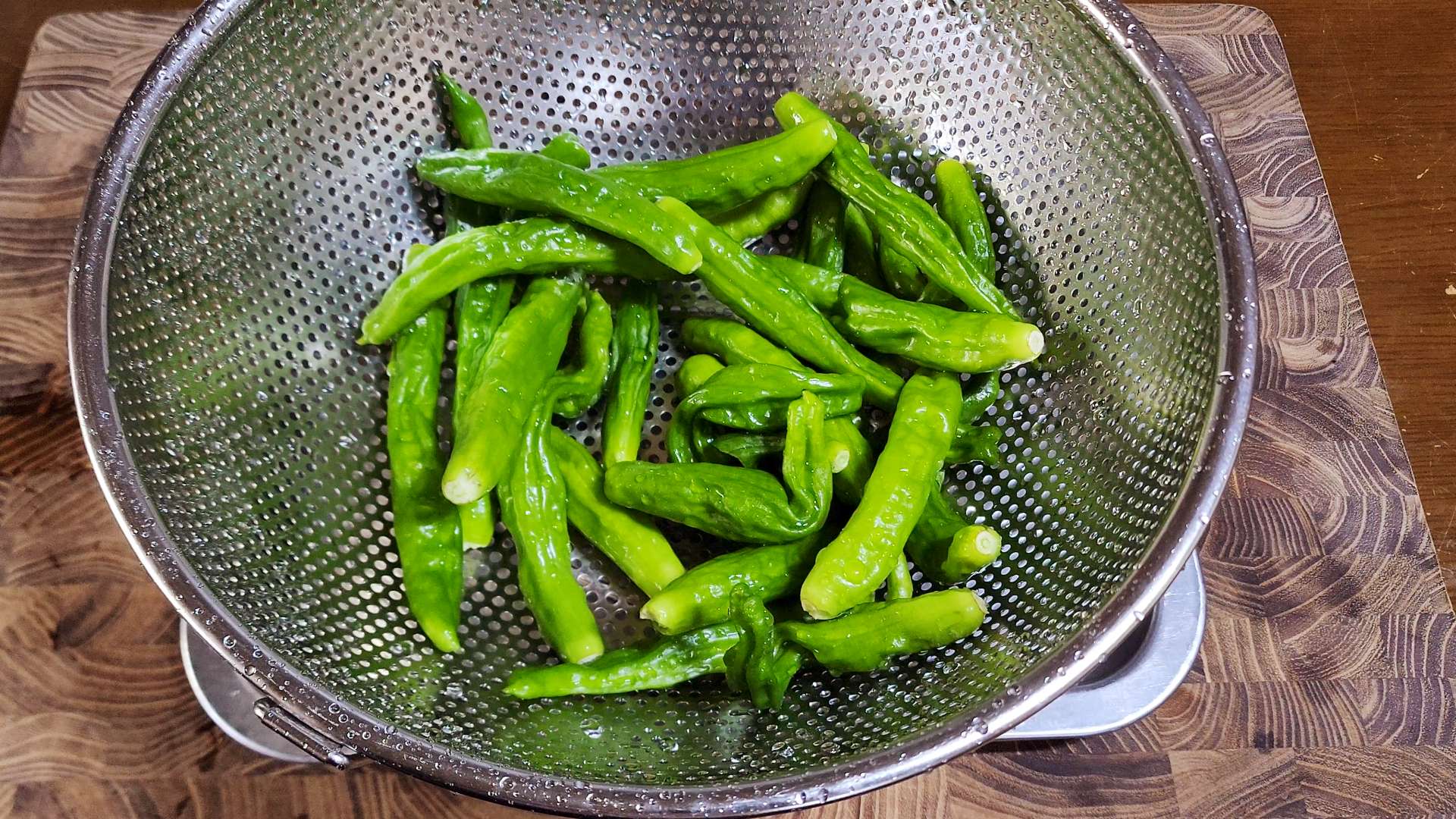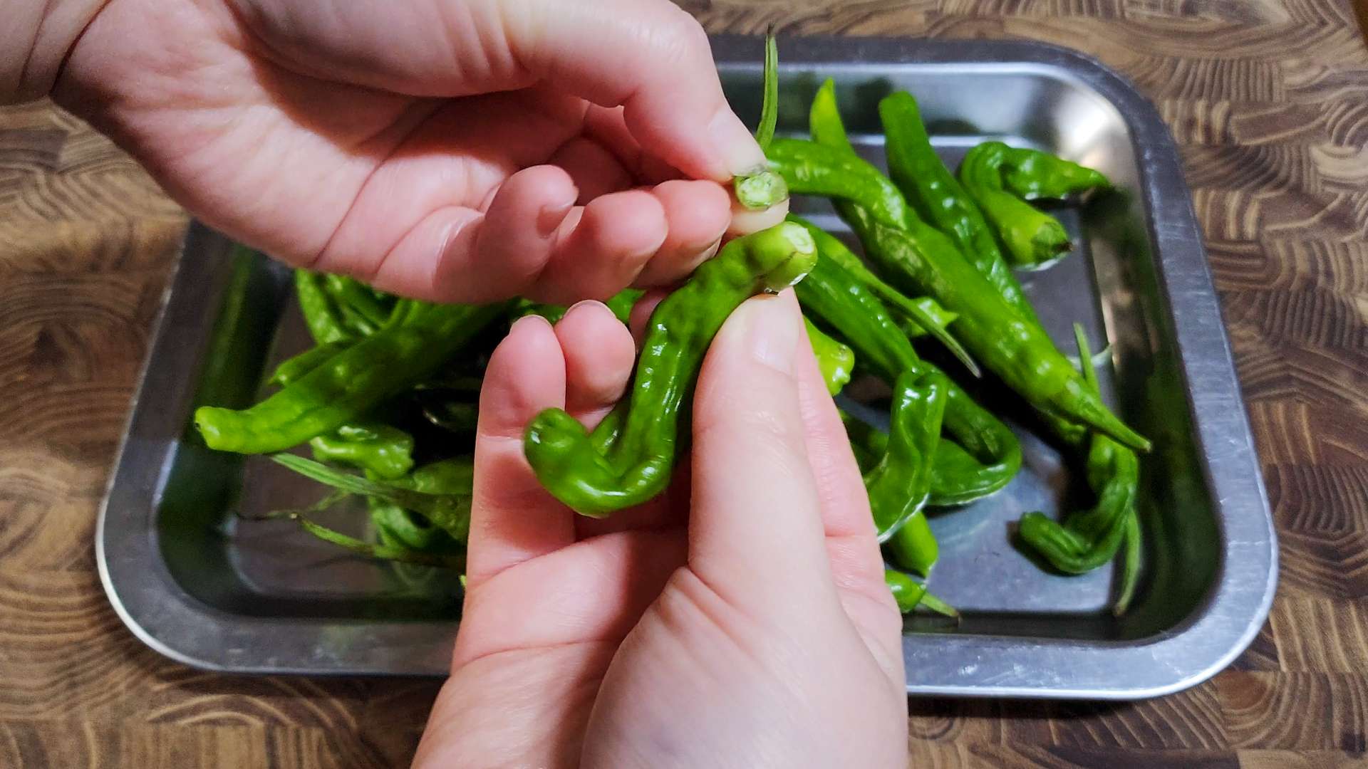 꽈리고추는 꼭지를 자르고 깨끗이 씻어줍니다.