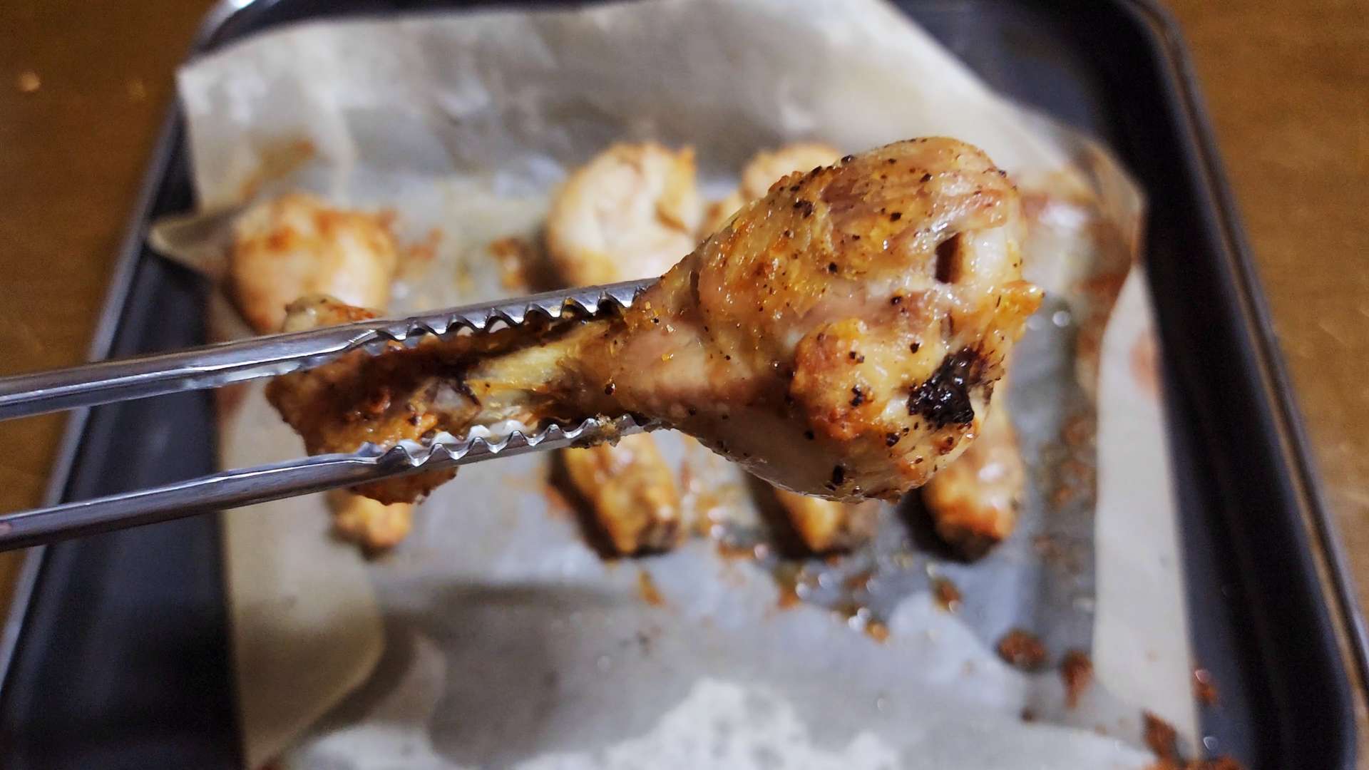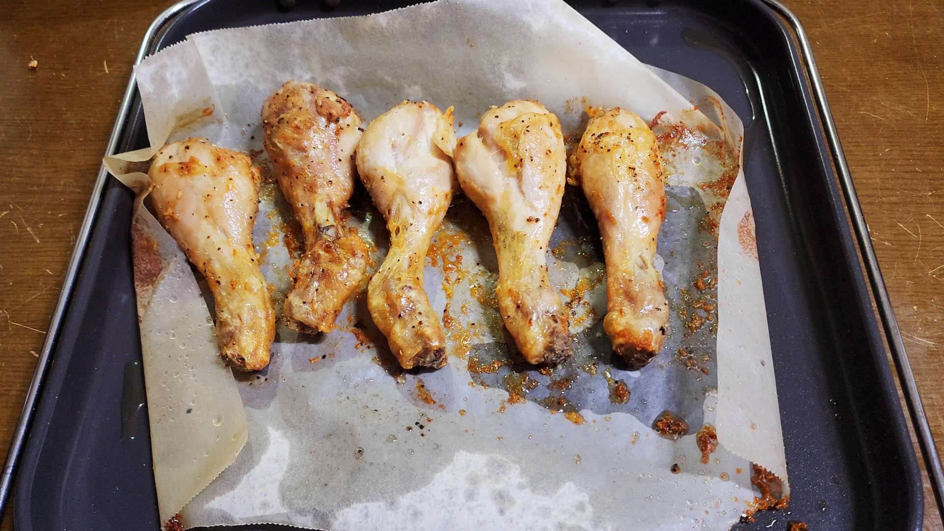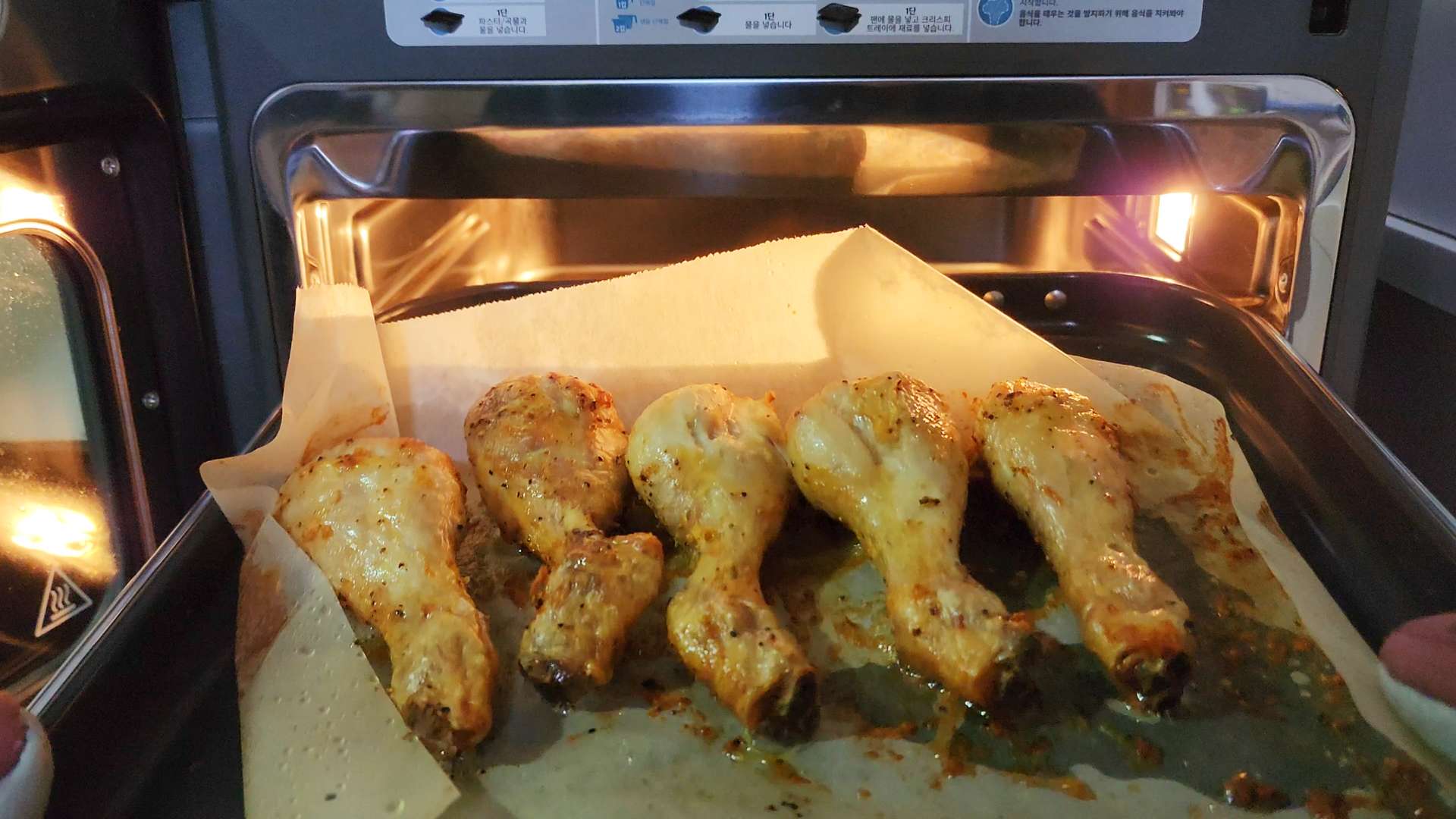 닭다리가 앞뒤로 노릇하게 잘 구워졌네요.