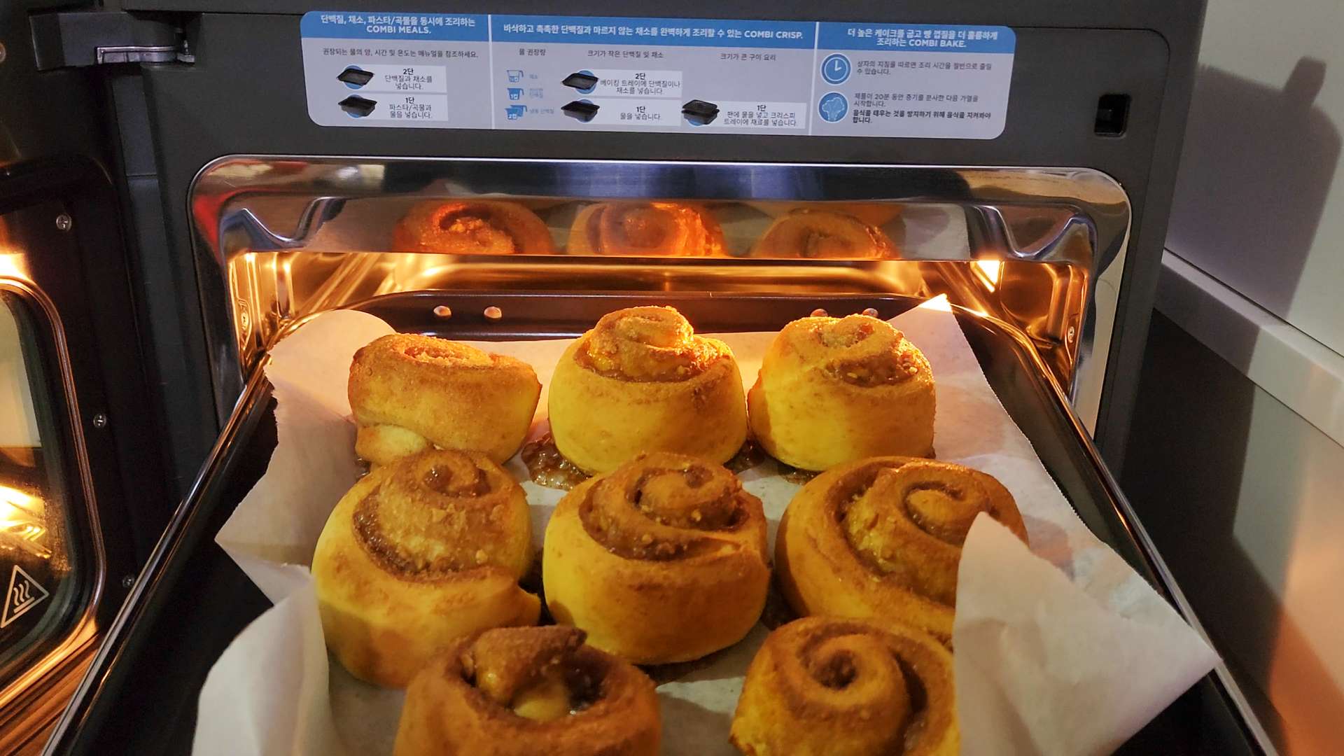 표시등 버튼을 눌러 시나몬롤의 굽기 정도를 확인 할수 있습니다.