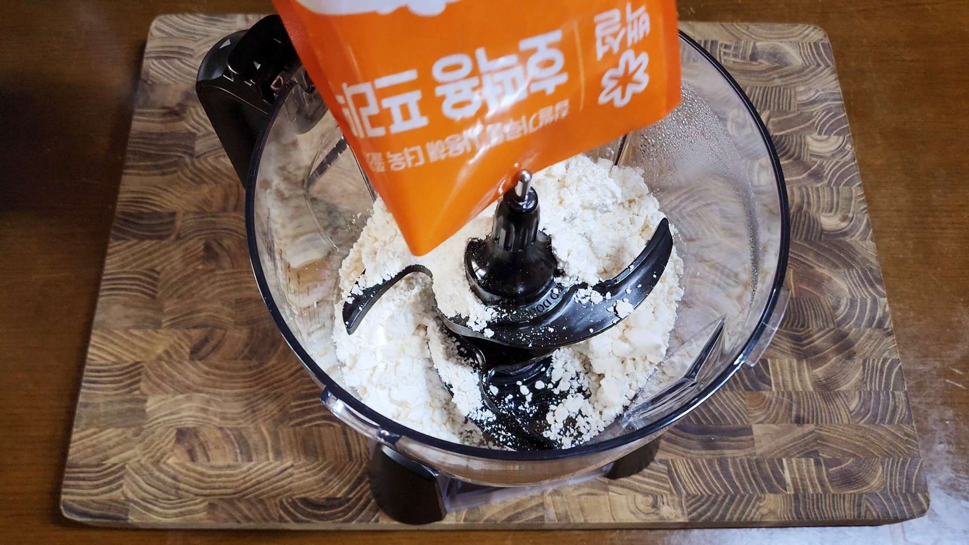닌자 블렌더에 호떡용프리믹스 1봉지, 이스트, 식용유 20ml 넣어줍니다.