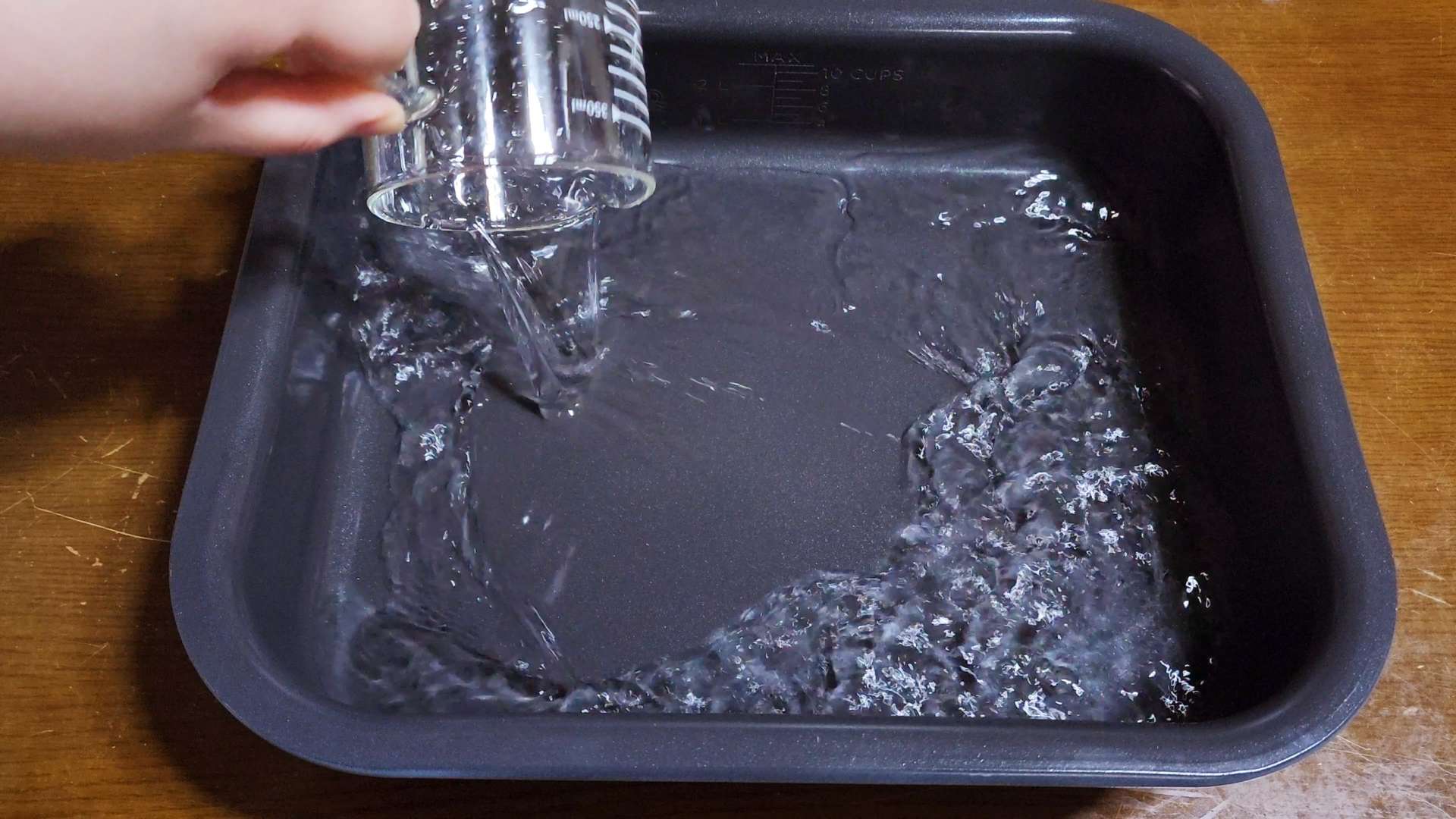 콤비팬에 물을 넣고 크리스피 플레이트를 올려줍니다.