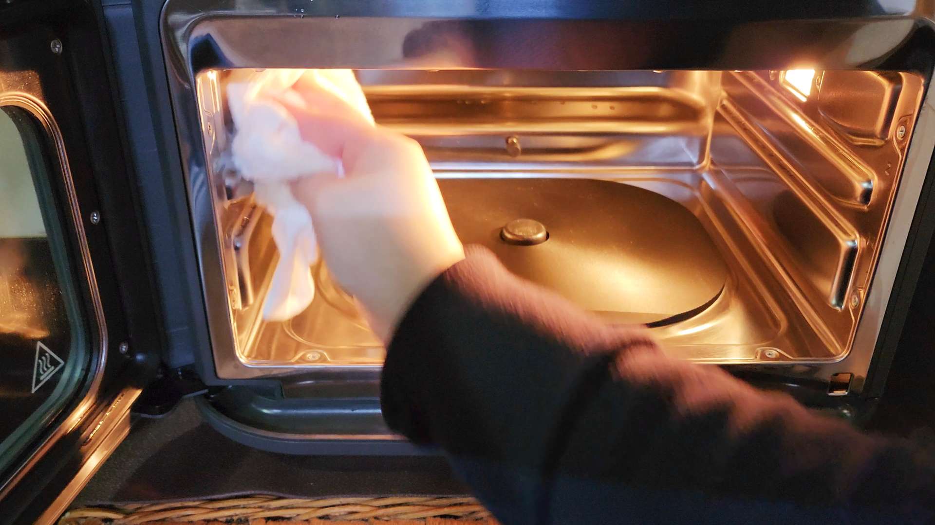 팬을 빼고 수증기가 남아 있을때 마른 행주로 닦아주면 기름때를 쉽게 제거해 줄수있어요.