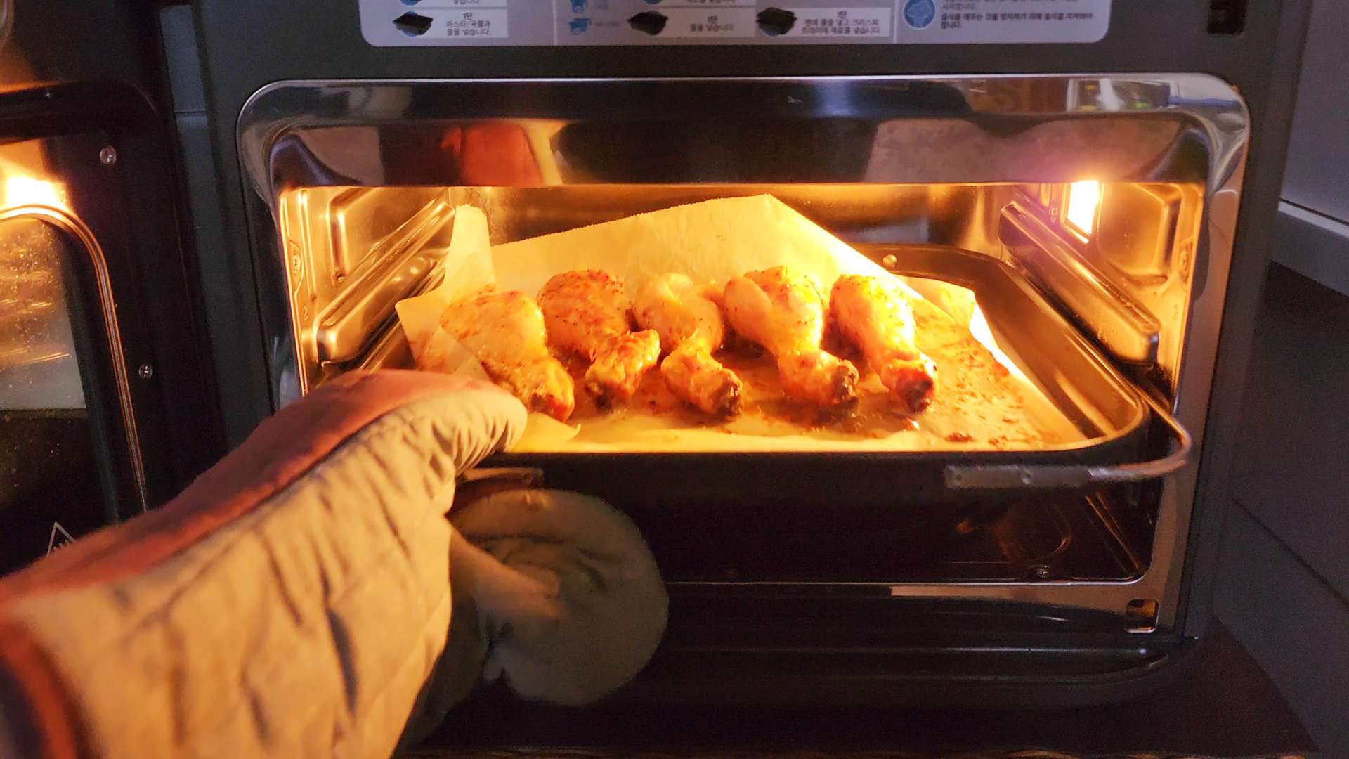 START/STOP 버튼을 눌러 닭다리를 구워줍니다.