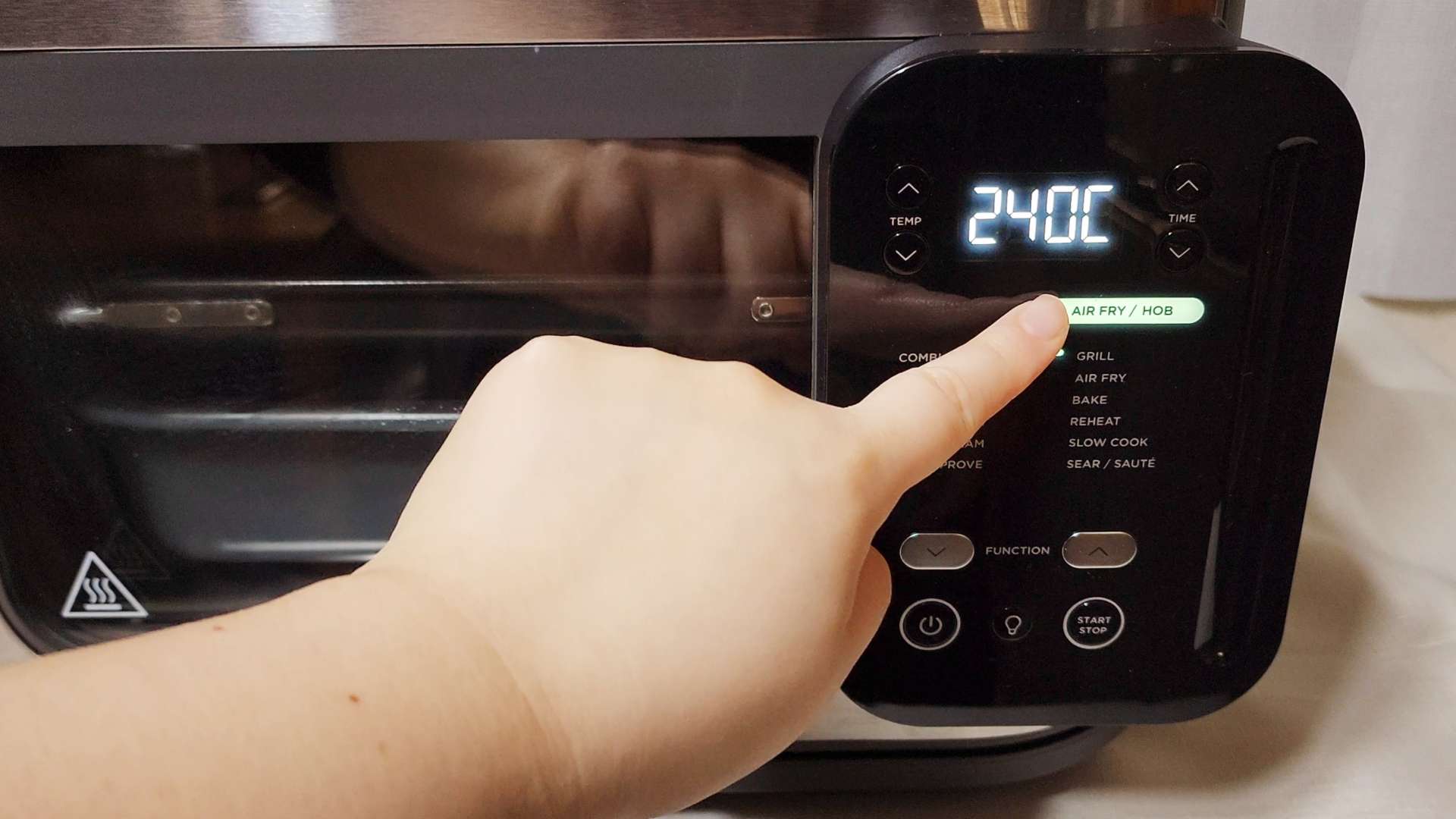 AIR FRY/HOB 모드를 선택하고 온도와 시간을 맞추고 START/STOP 버튼을 눌러주면 됩니다.