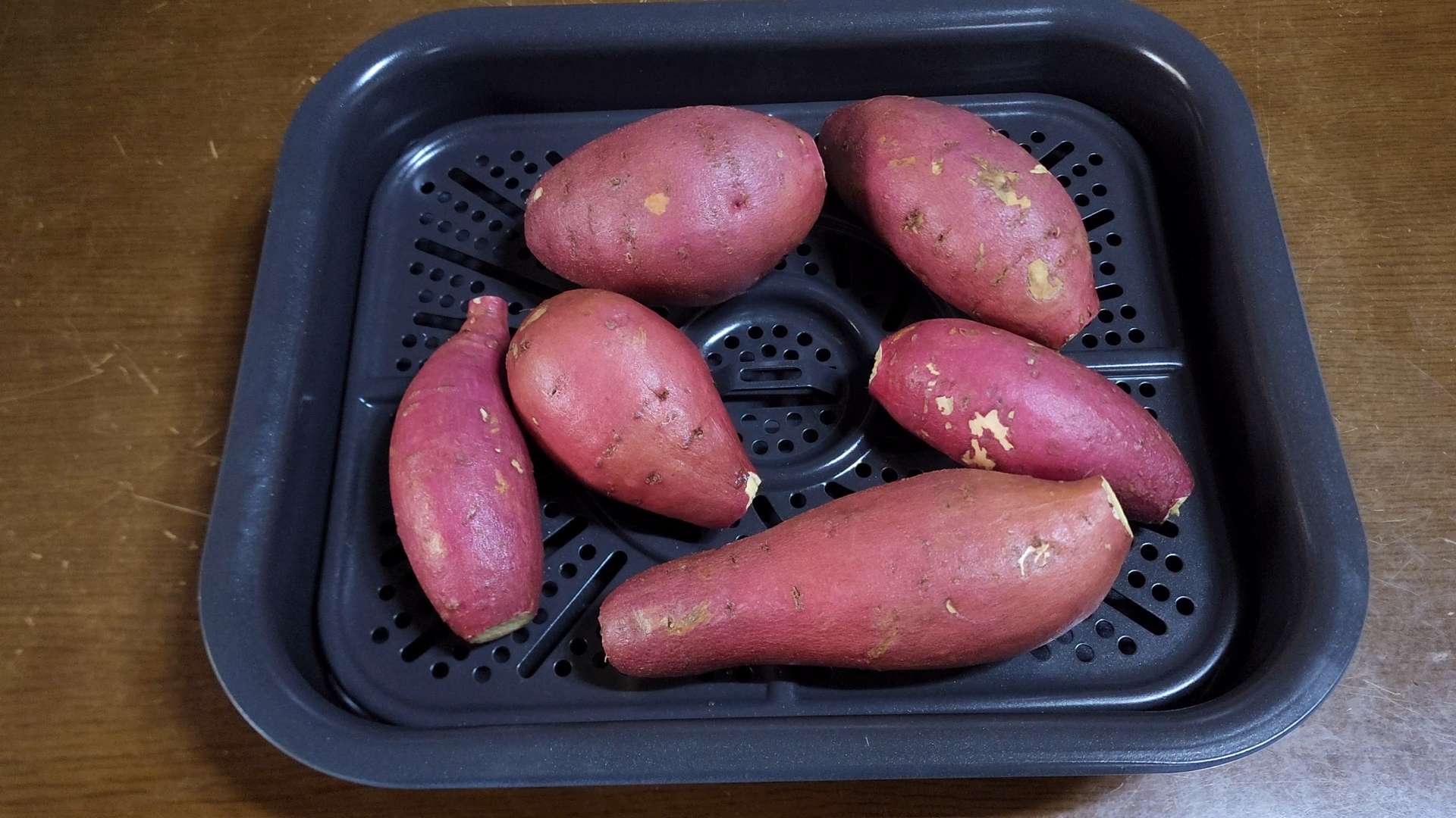 콤비팬에 크리스피 플레이트를 올리고 고구마 6개를 올려줍니다.