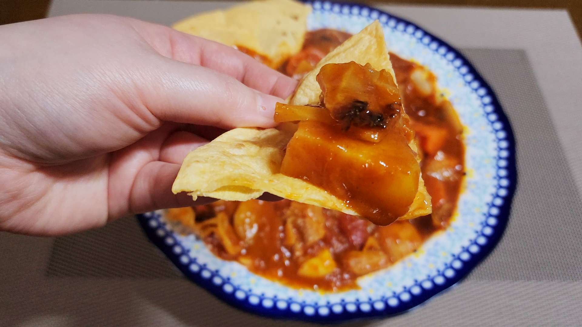 그릇에 마녀스프를 담고 난을 곁들여줍니다.