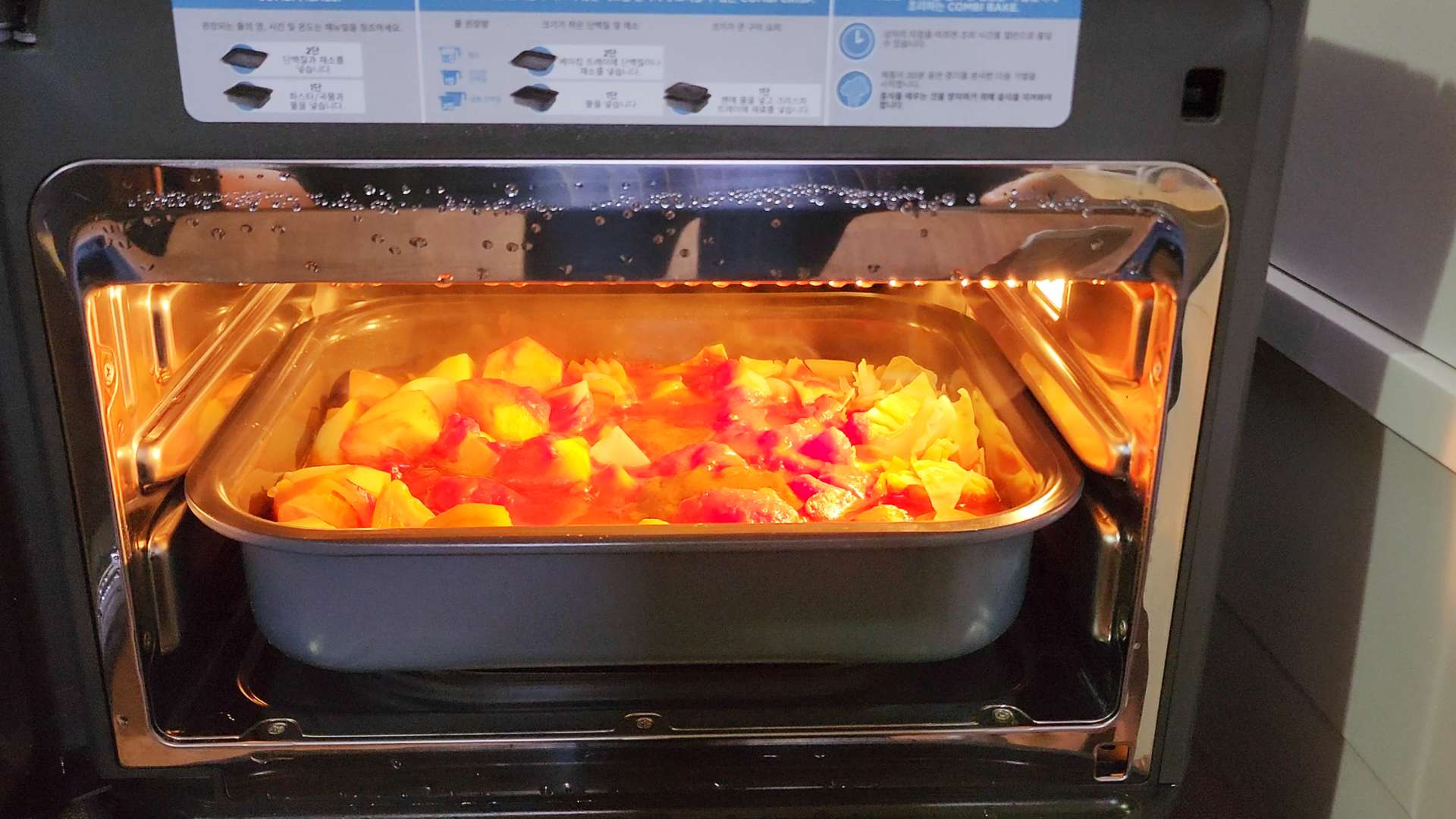 COMBI MEALS 모드를 선택하고 180도에서 25분으로 맞춰주세요.