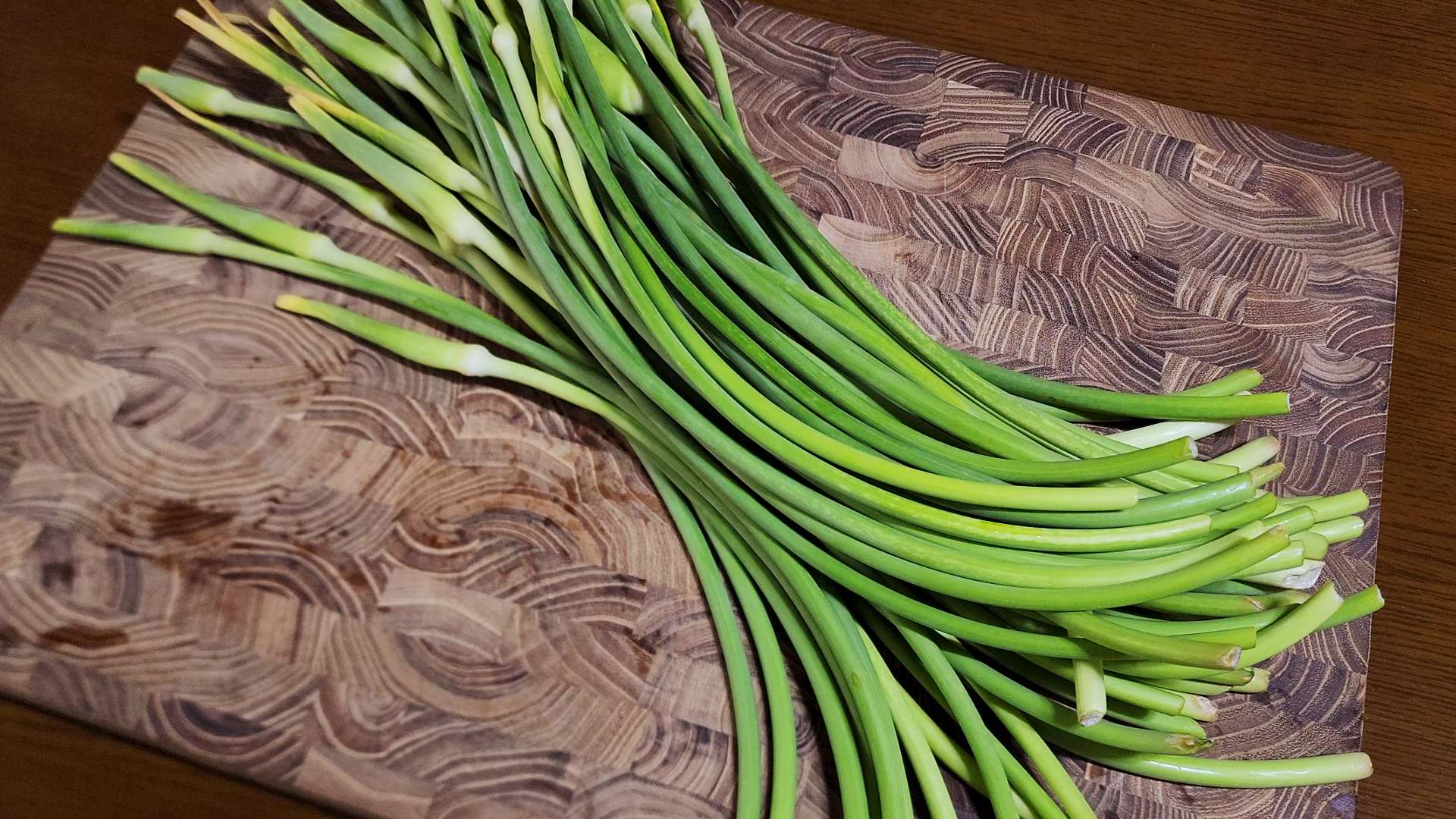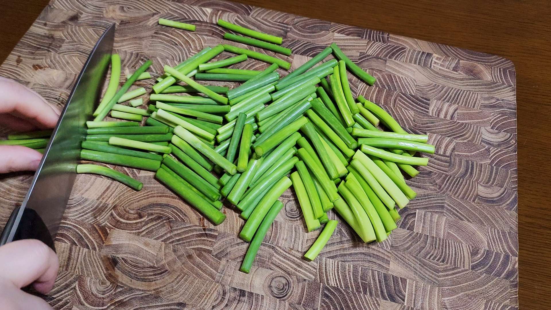 마늘쫑은 먹기 좋은 길이로 잘라줍니다.